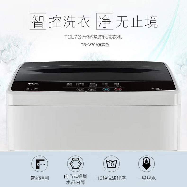 TCL7公斤全自动波轮洗衣机 TB-V70A亮灰色