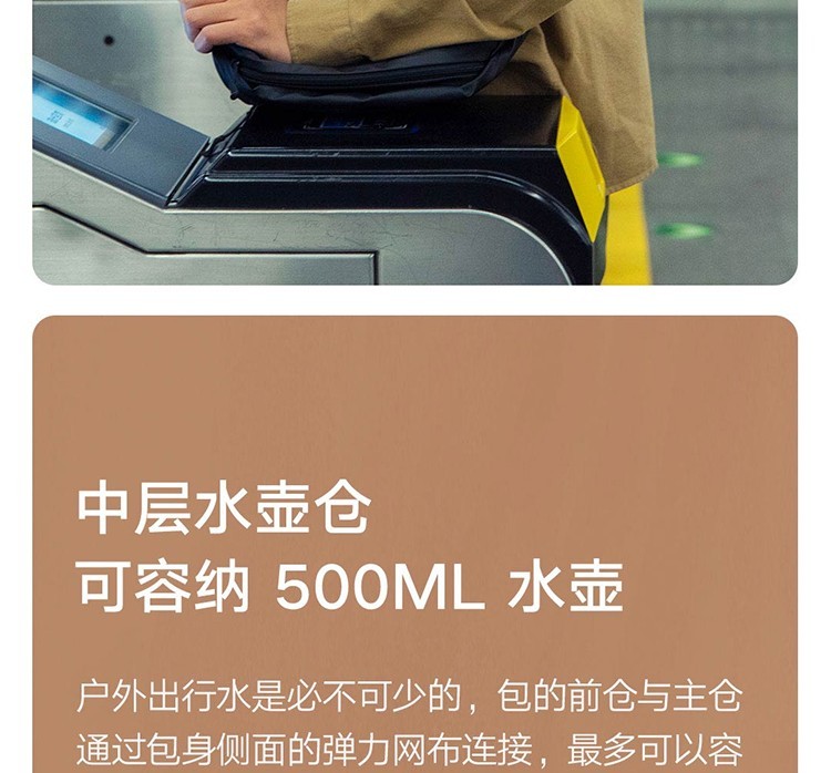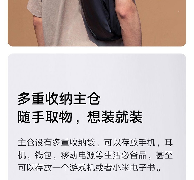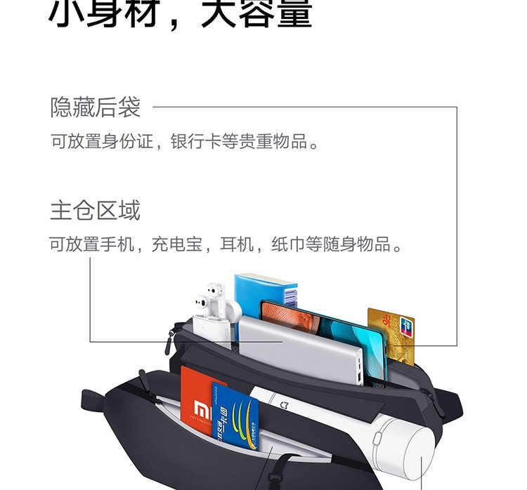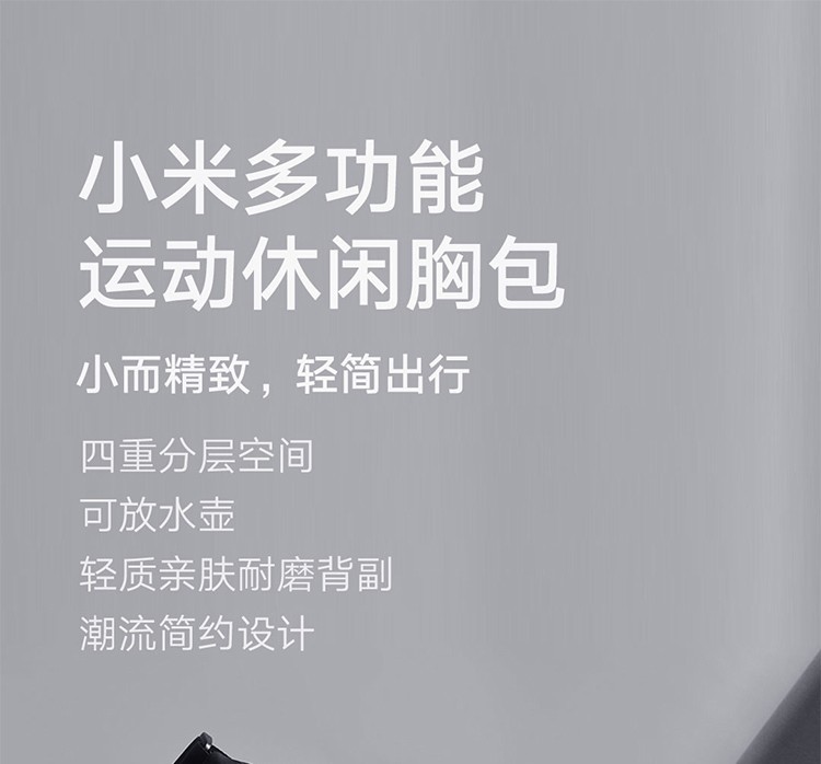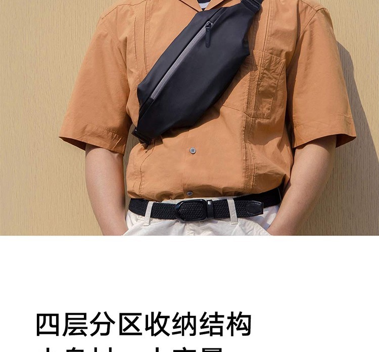 (特)小米多功能运动休闲胸包 黑色 4层分重空间轻质亲肤耐磨背副潮流简约设计