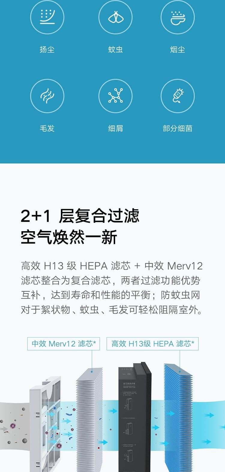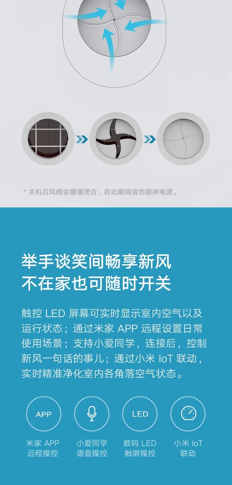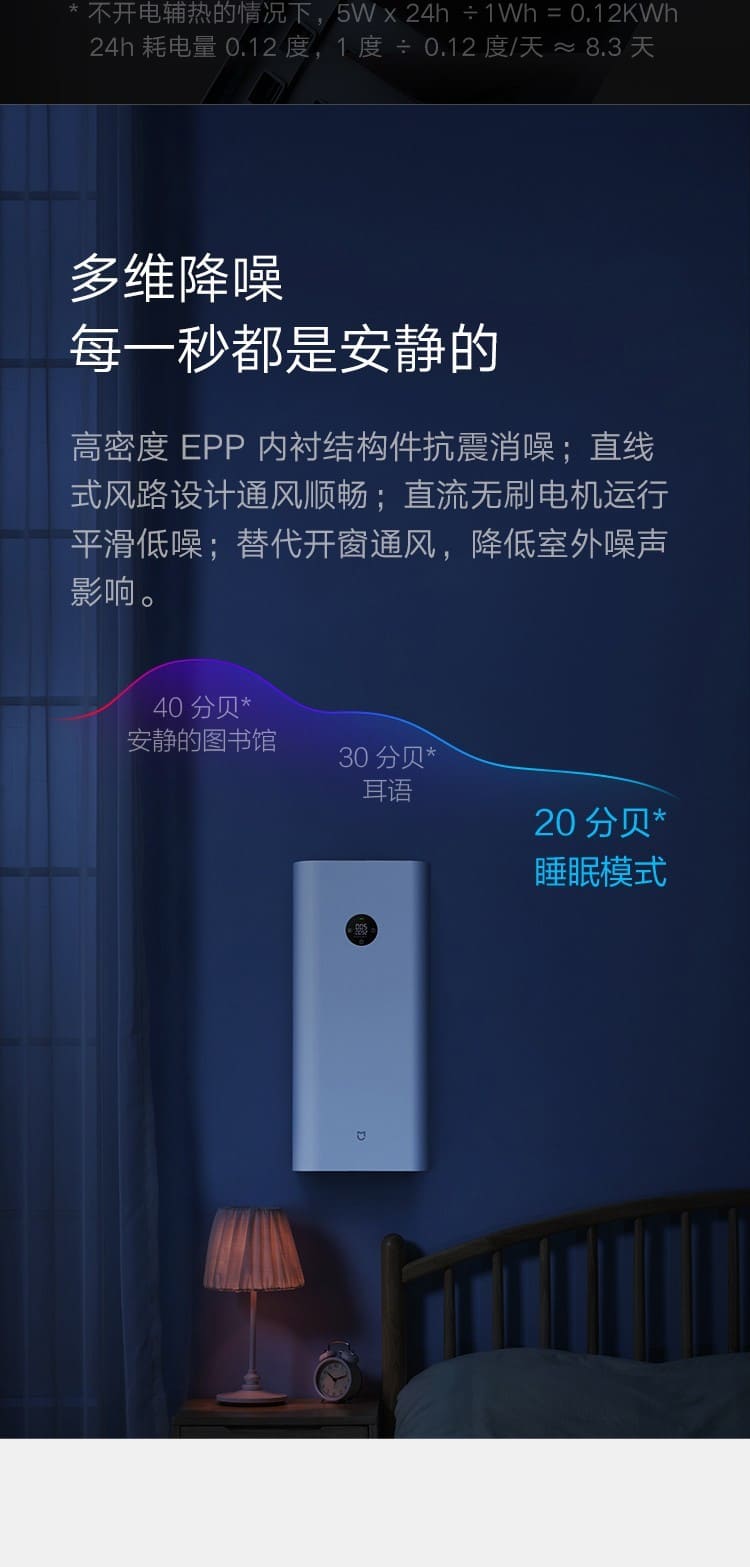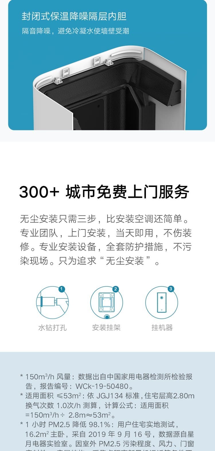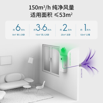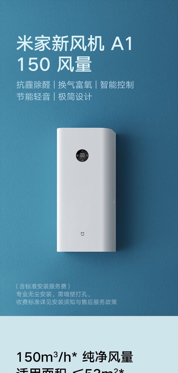 (特)小米(MI)米家新风机A1壁挂式家用150风量空气循环净化器新风系统 米家新风机A1