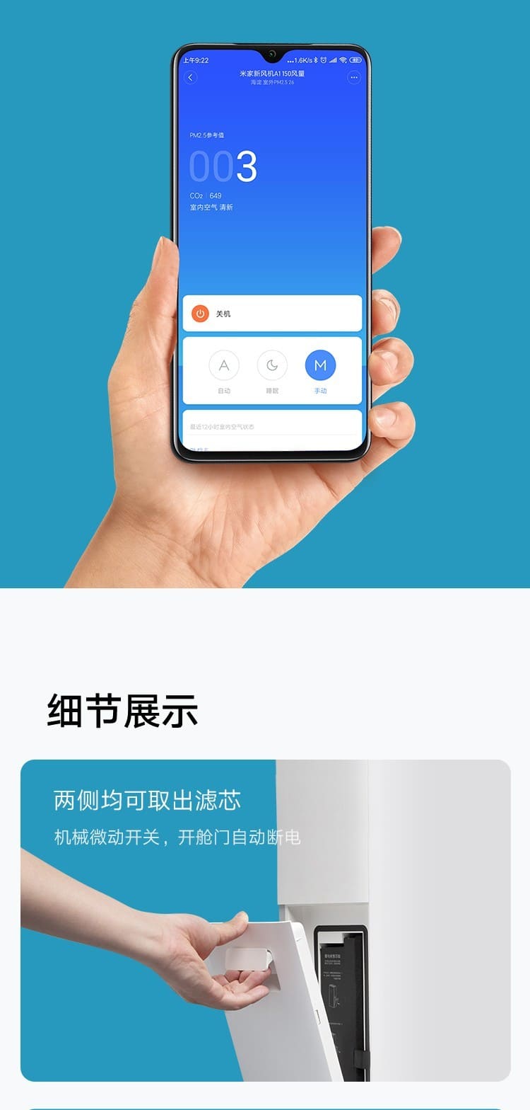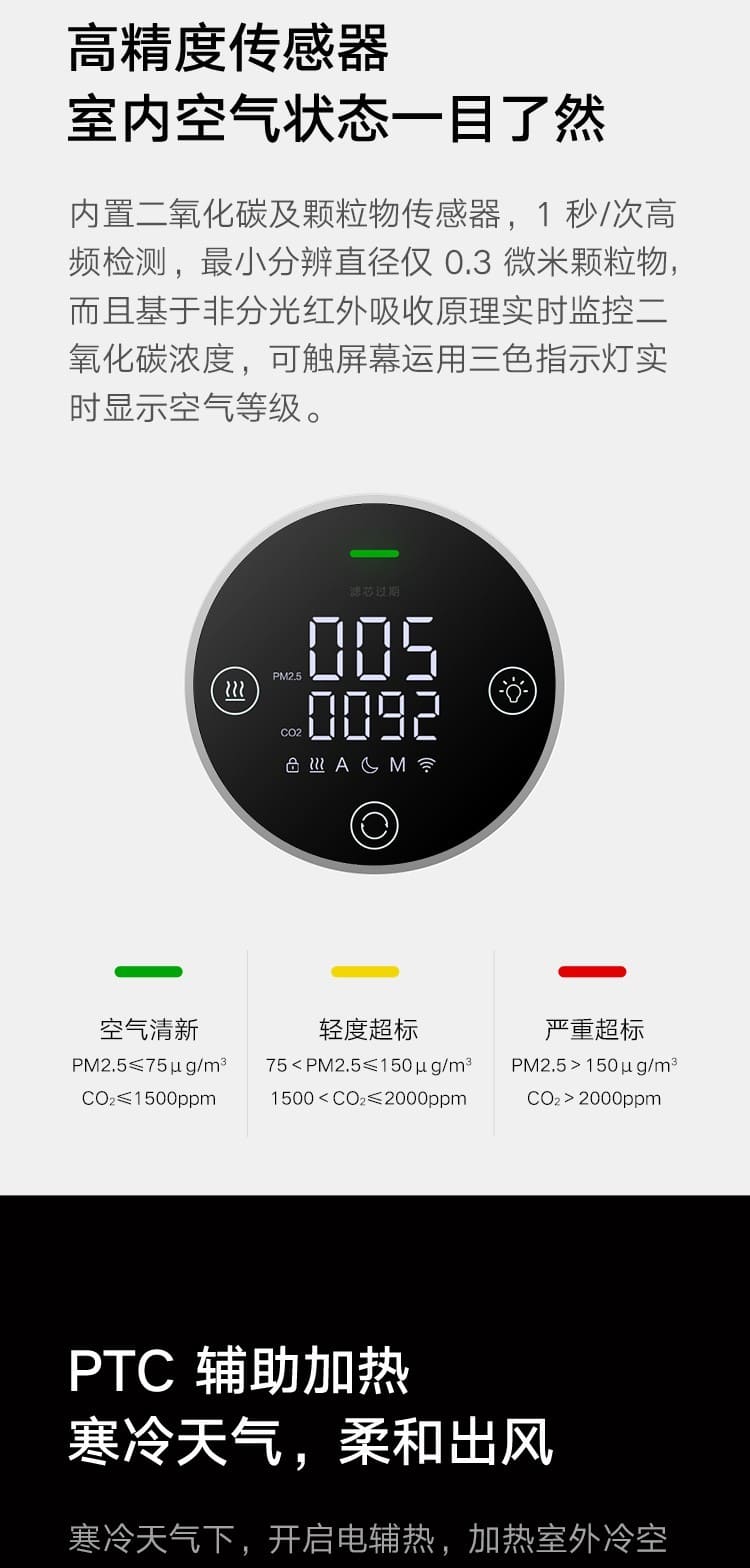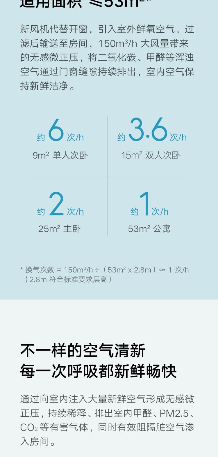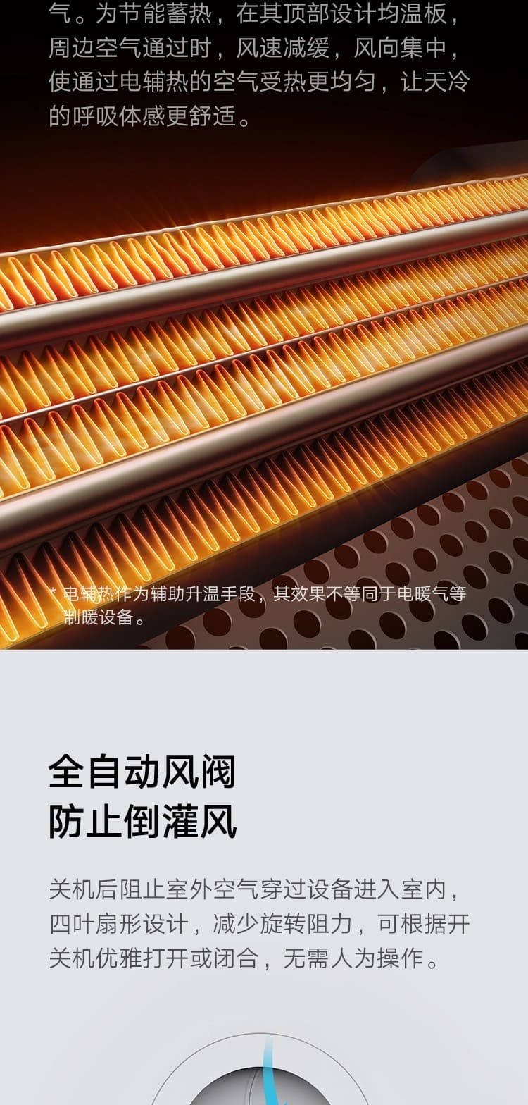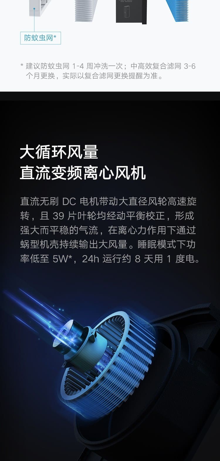 (特)小米(MI)米家新风机A1壁挂式家用150风量空气循环净化器新风系统 米家新风机A1