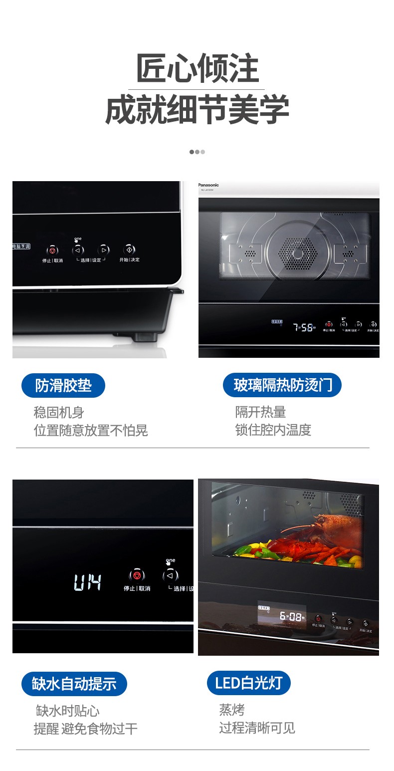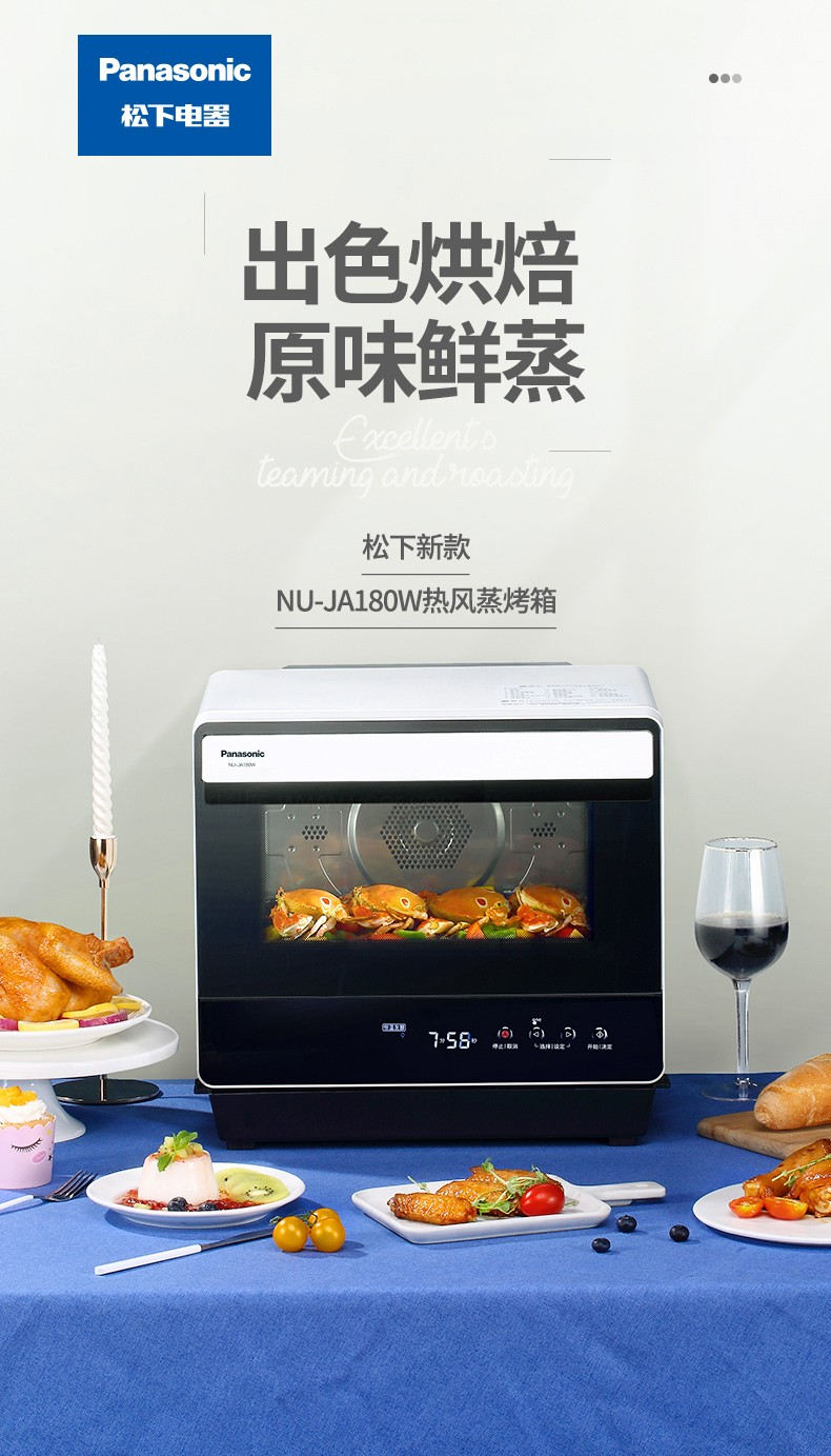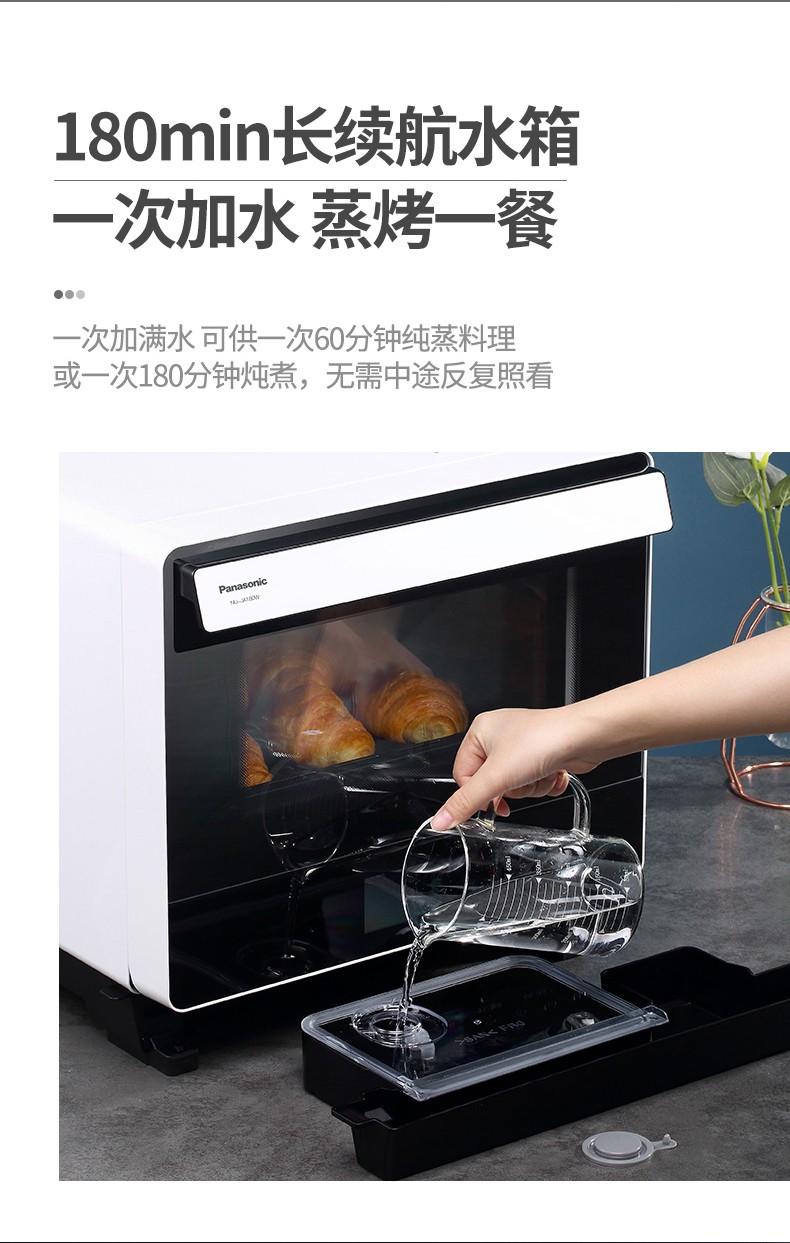 (特)松下蒸烤箱电烤箱20升蒸烤箱一体机多功能双层热风烘焙餐具消毒烤箱家用电蒸箱 NU-JA180W