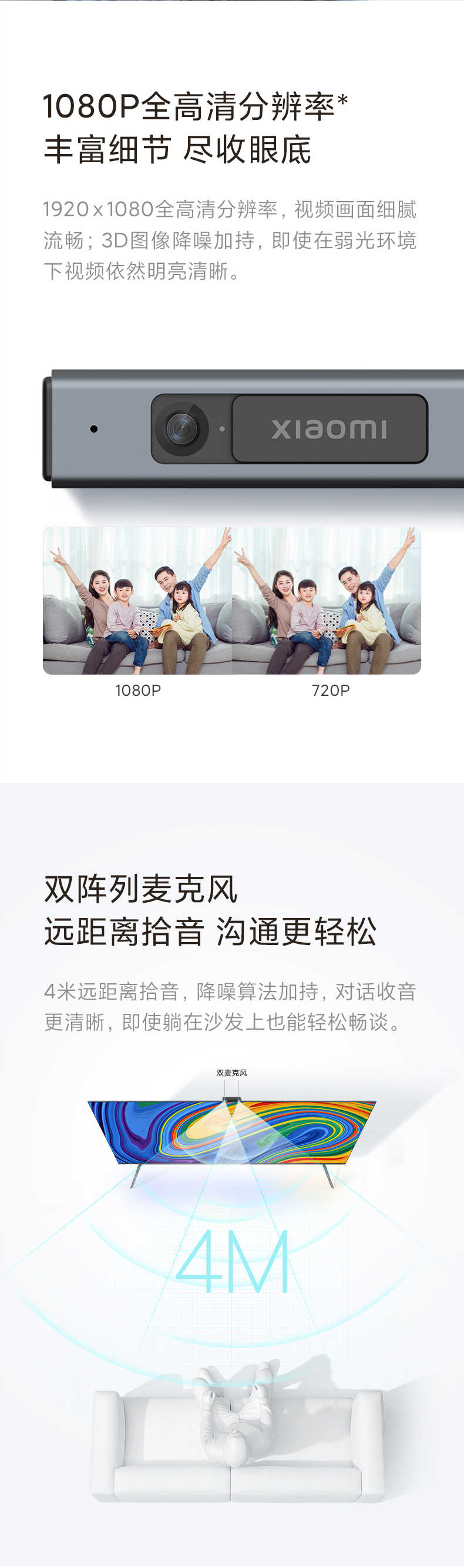 (特)小米(MI)电视LSXTM7-1 摄像头 1080P高清画质 内置双麦克风 隐私保护盖 迷你机身 便捷安装