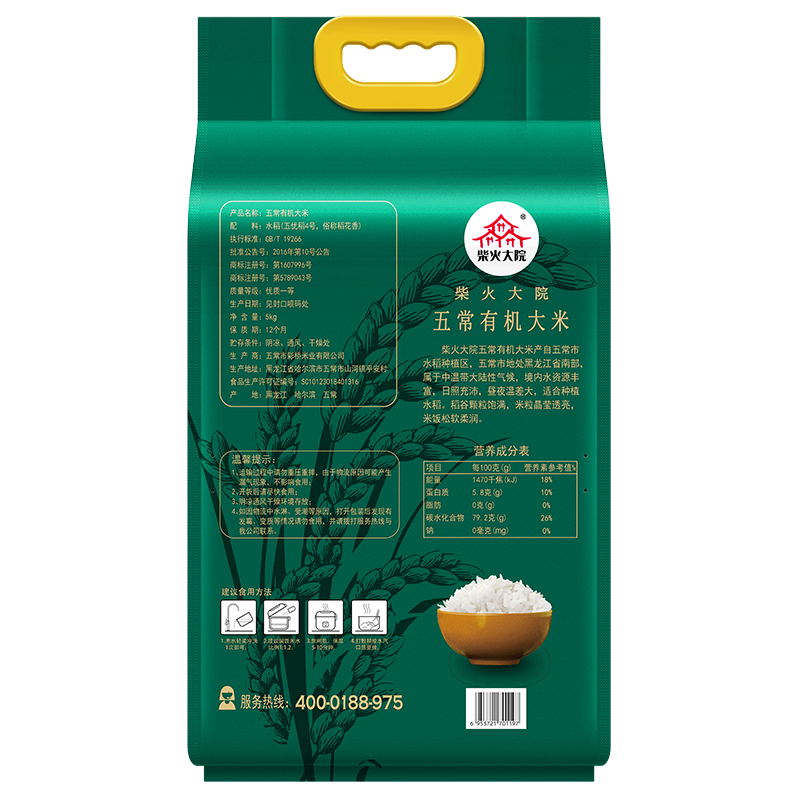 (特)柴火大院 五常有机大米 5kg 稻香米 五常大米 东北大米 十斤