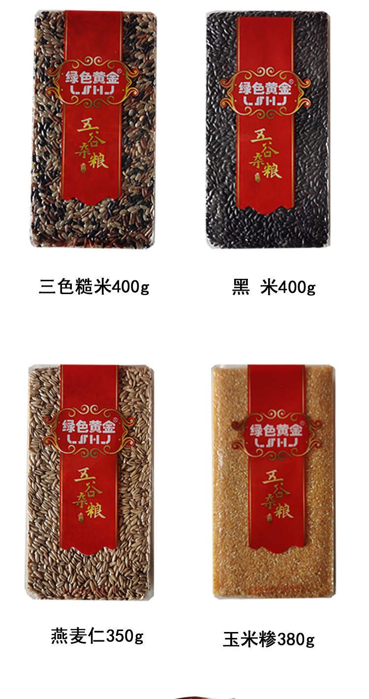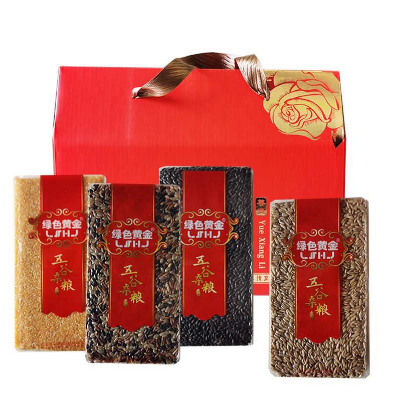 绿色黄金五谷杂粮礼盒黑米三色糙米玉米糁燕麦仁礼品 双层装4包装