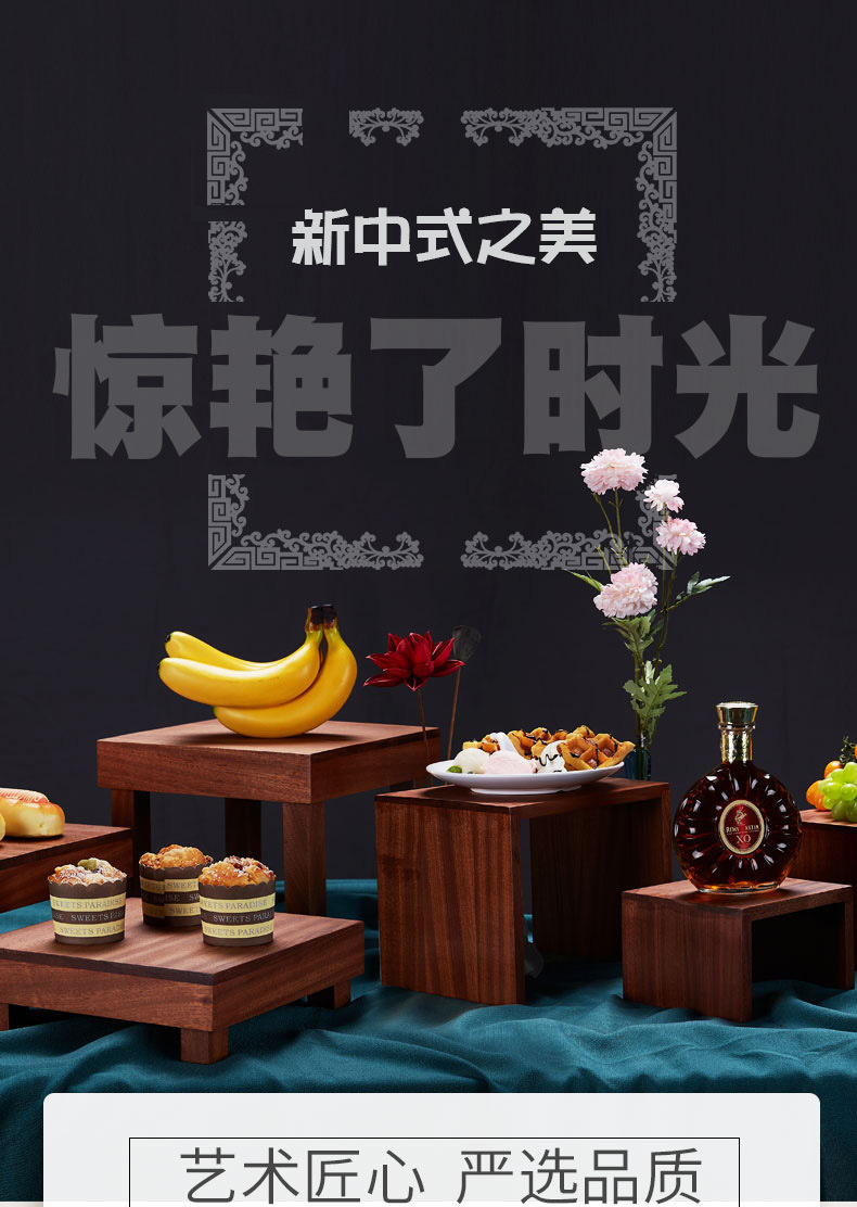 中式木质点心架茶歇宴会甜品台展示架自助餐冷餐寿司下午茶蛋糕架