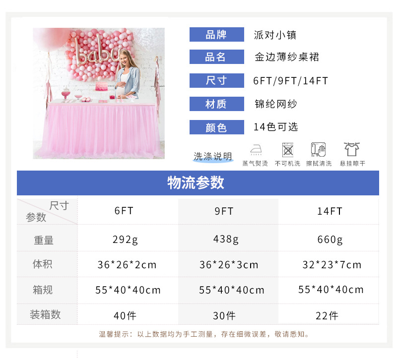 - 长网纱黄粉蓝三色14FT(长4.27m*高0.77m)