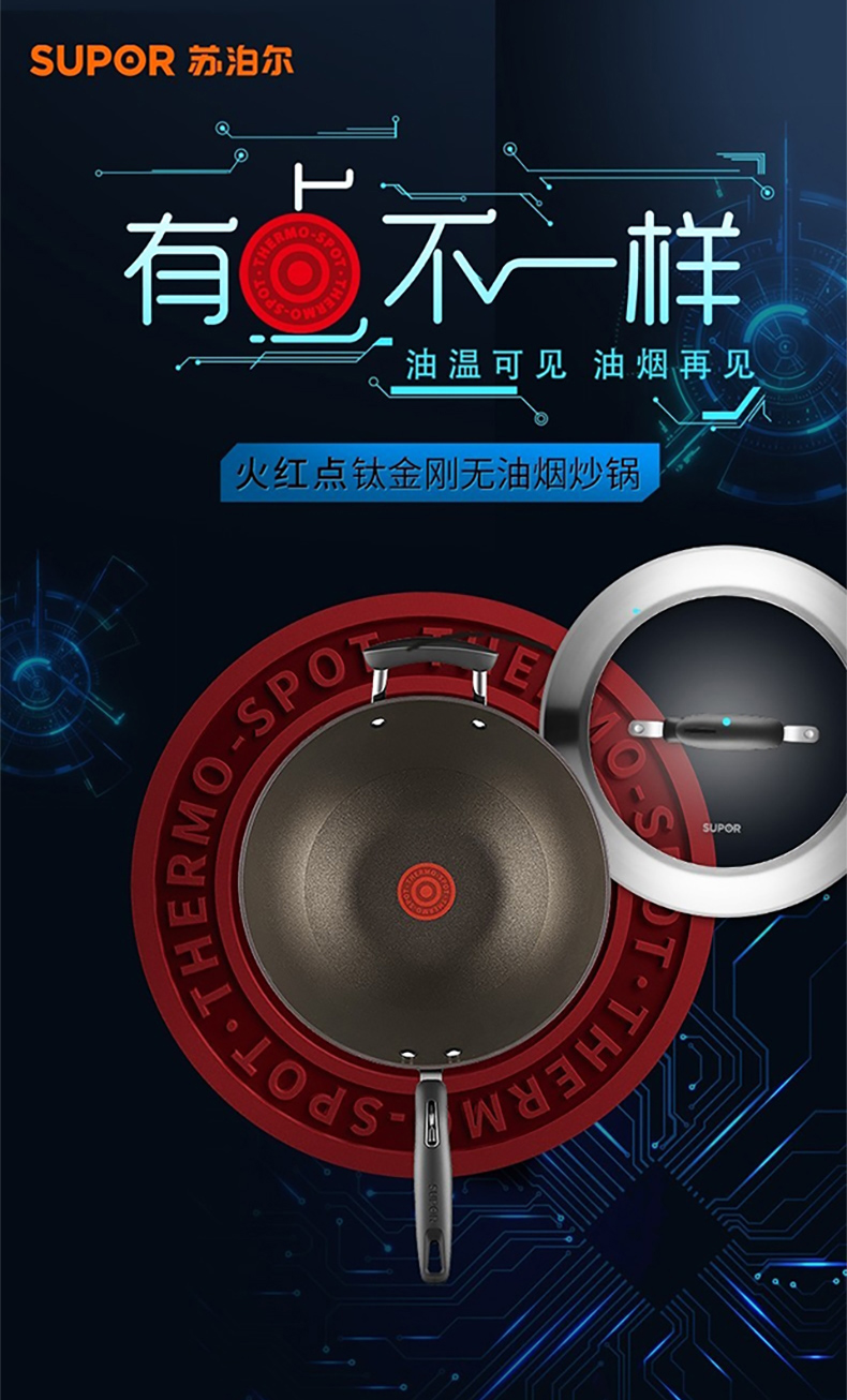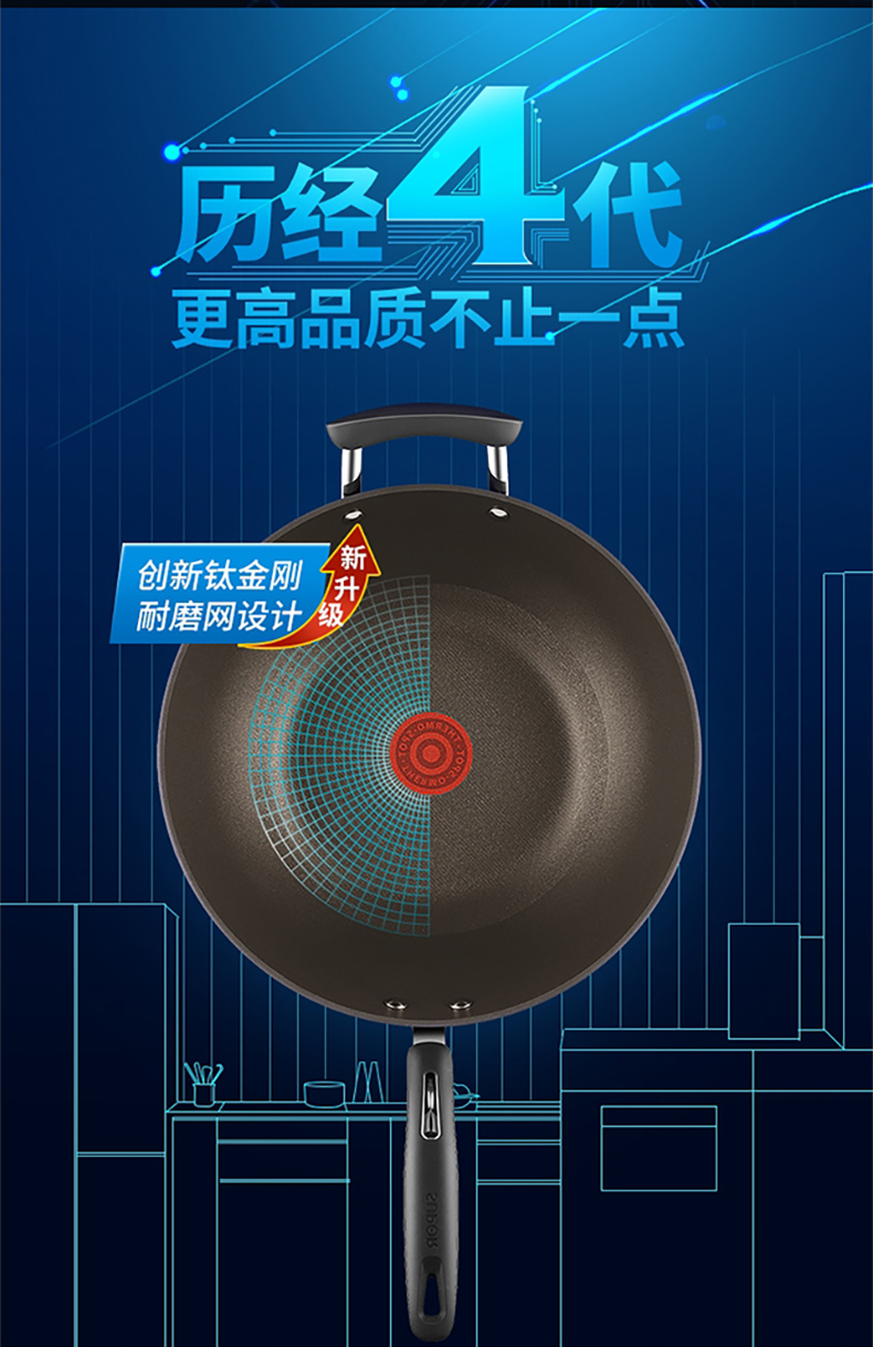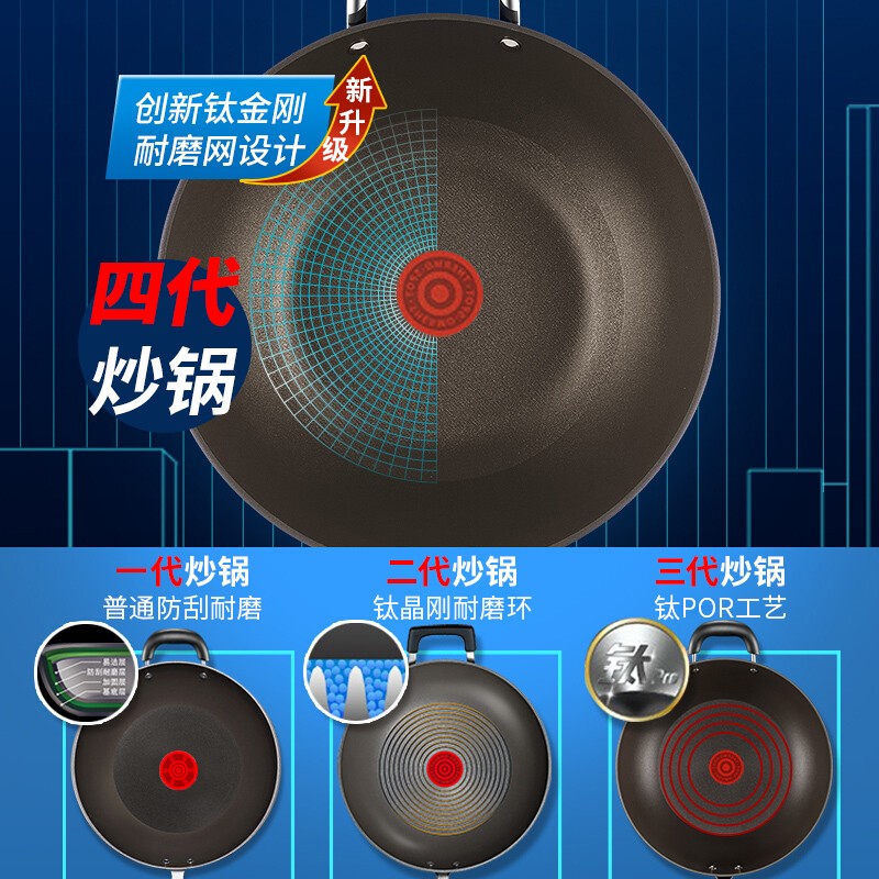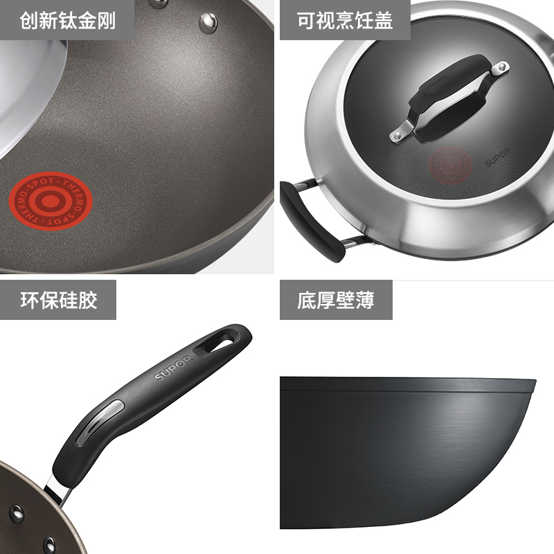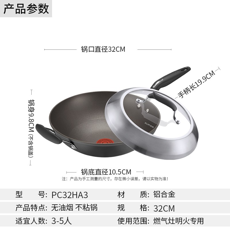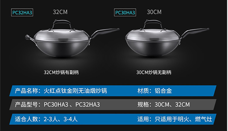 苏泊尔(SUPOR)火红点炒锅 第四代4代钛金刚不粘锅无油烟炒菜锅 PC32HA3 明火专用