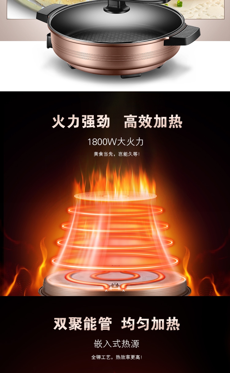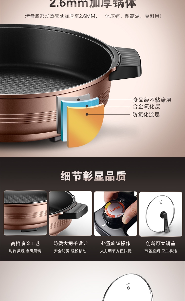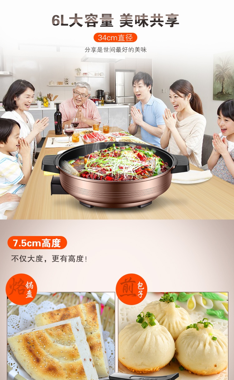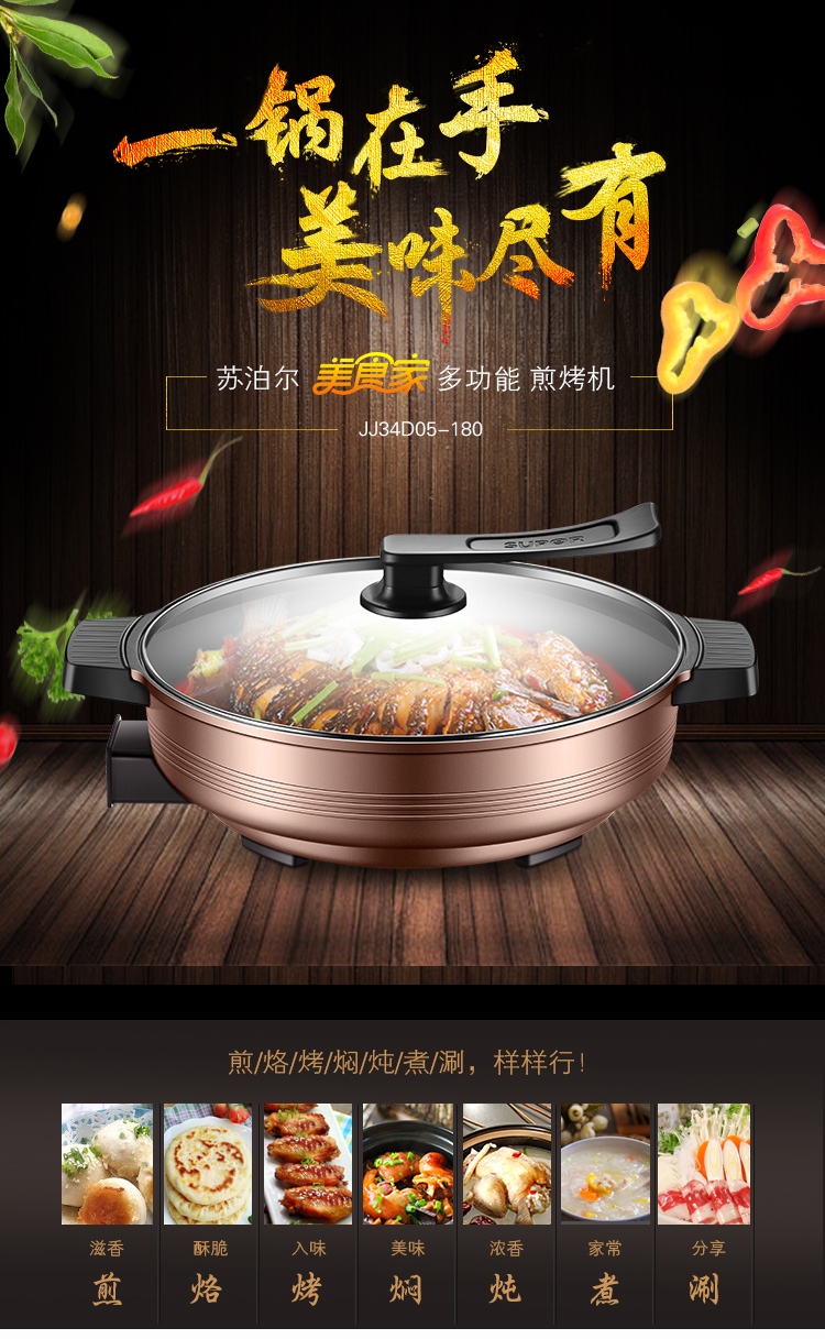 苏泊尔(SUPOR) 电饼铛煎烤机6L大容量多功能家用多用途电火锅 煎烤烙焖炖蒸煮涮锅 火力可调JJ34D05-180