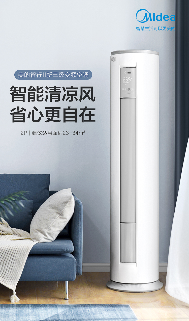 (特)美的(Midea)空调智行II 2匹 新三级能效 变频冷暖 智能自清洁 APP操控 强劲除湿 圆柱式柜机