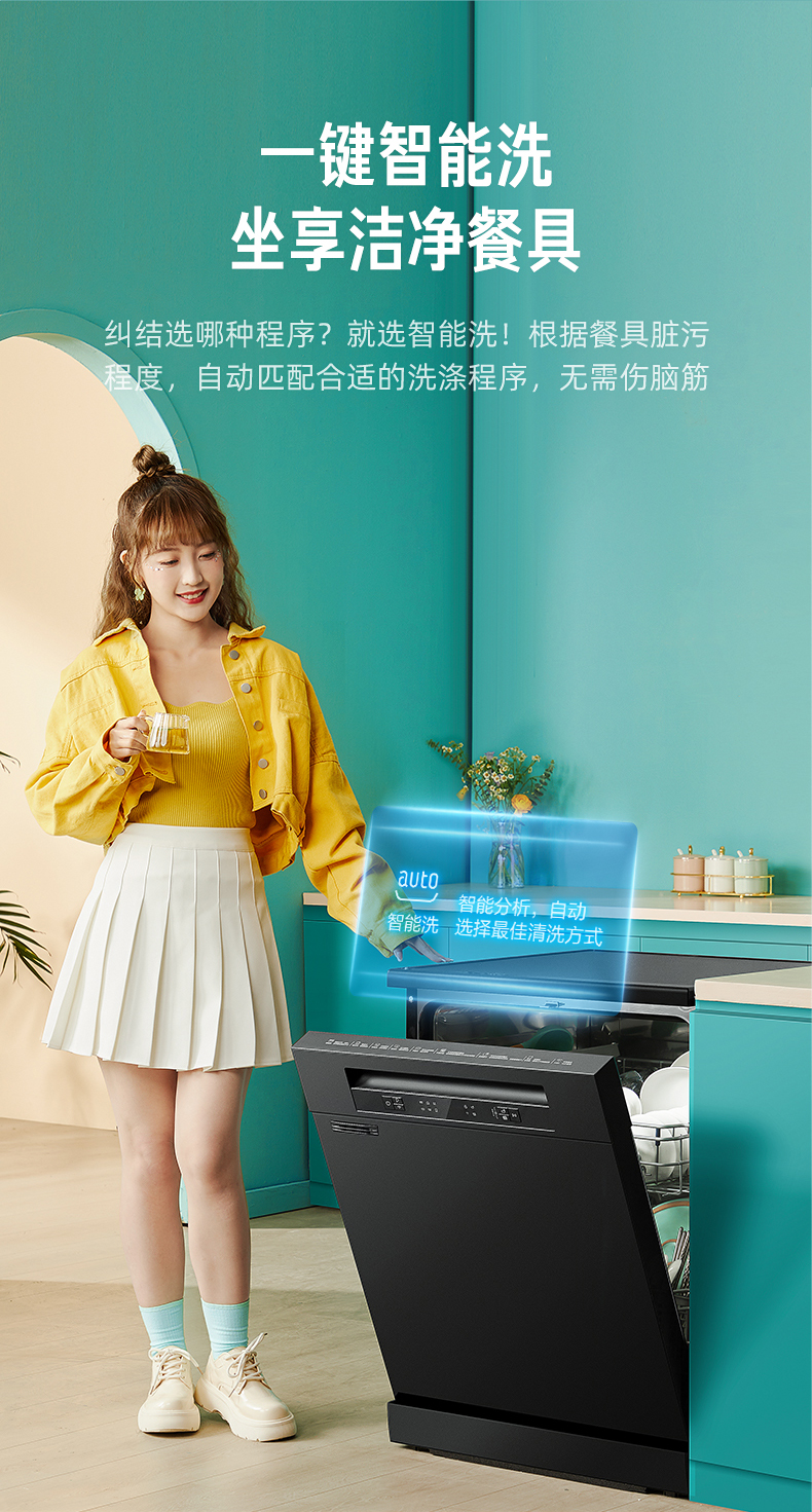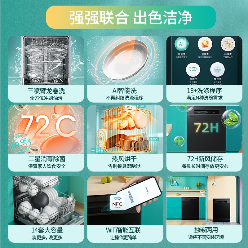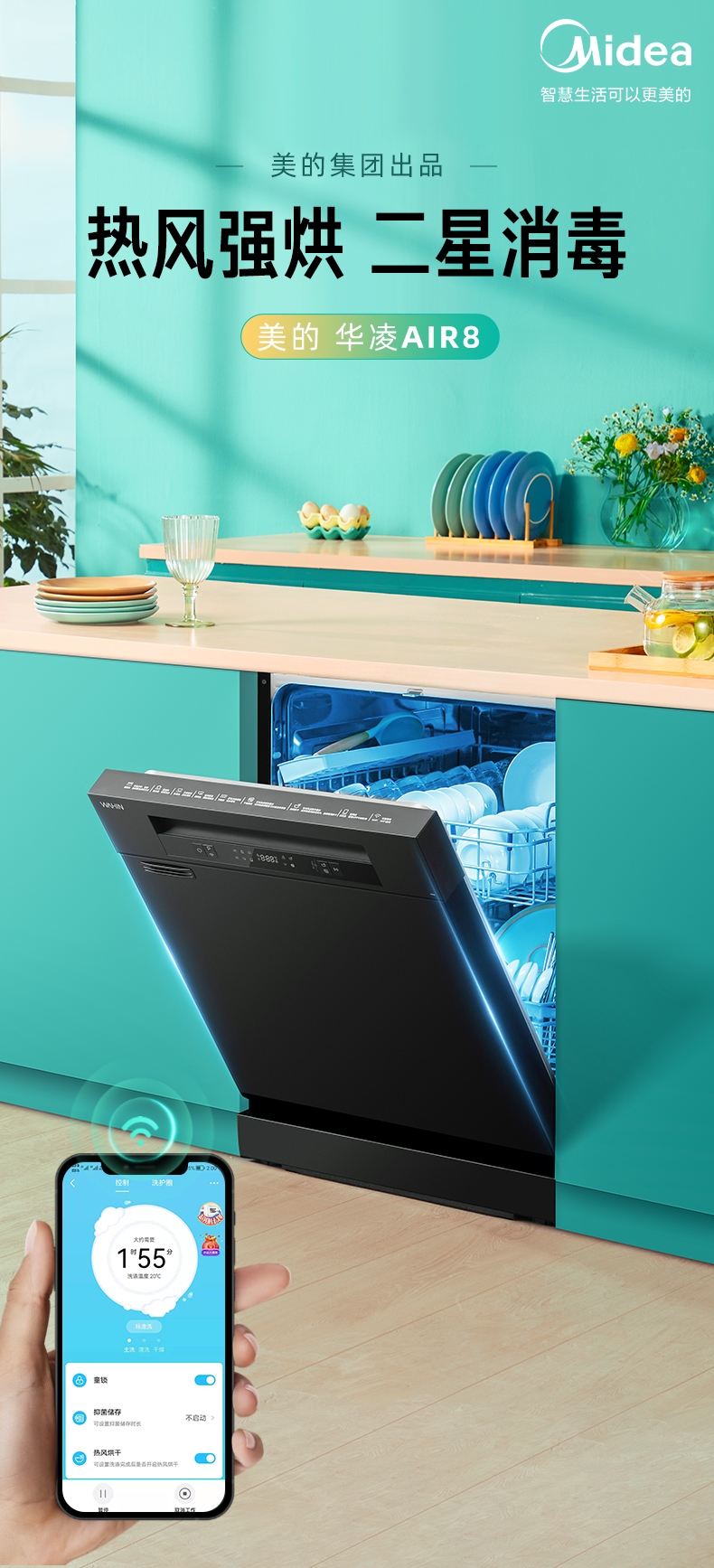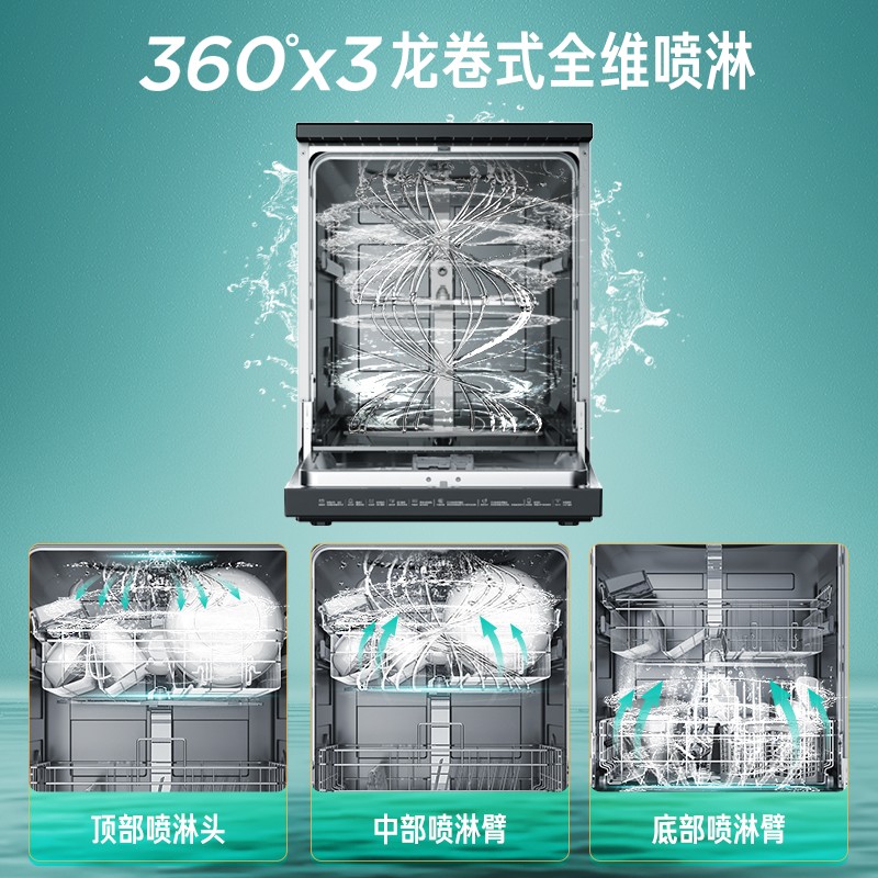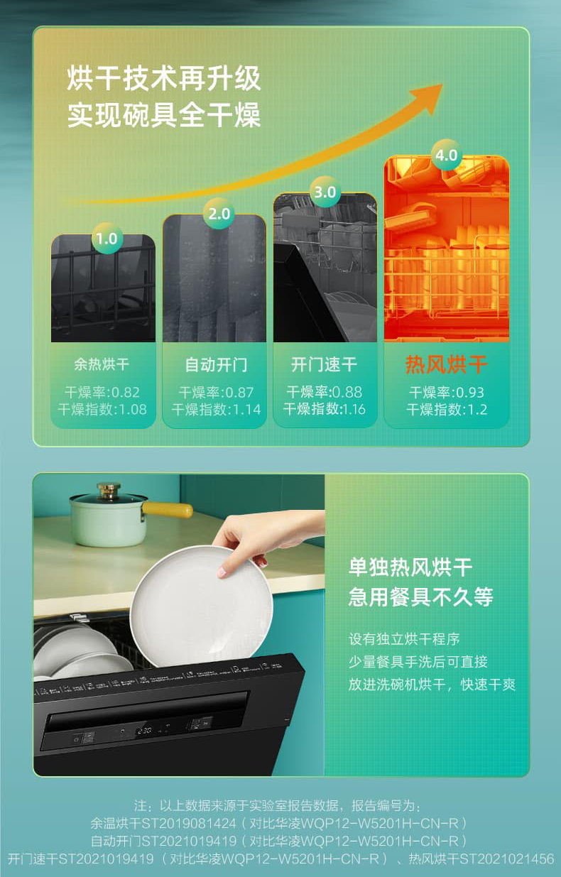 (特)华凌 美的出品 洗碗机家用14套 嵌入式台式 热风烘干智能自动油污感应 高温除菌二星消毒全自动刷碗机AIR8