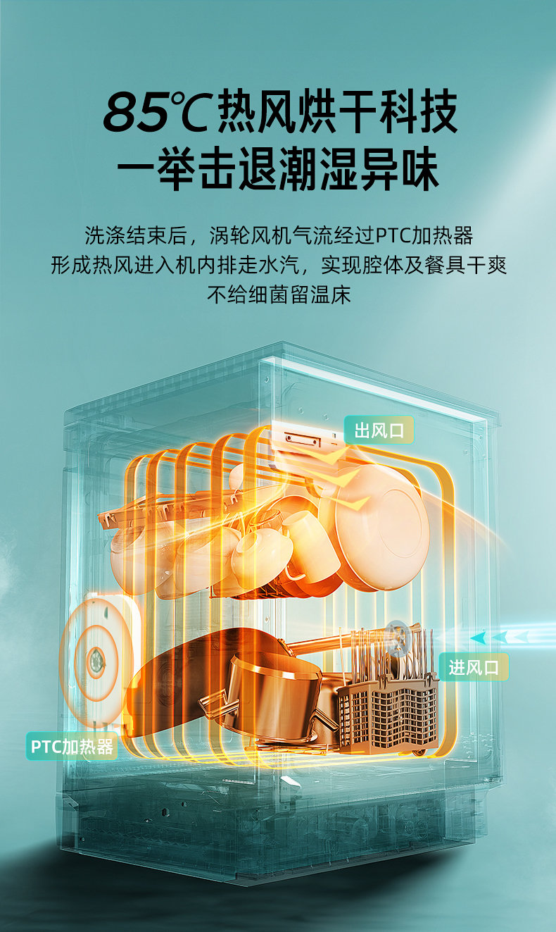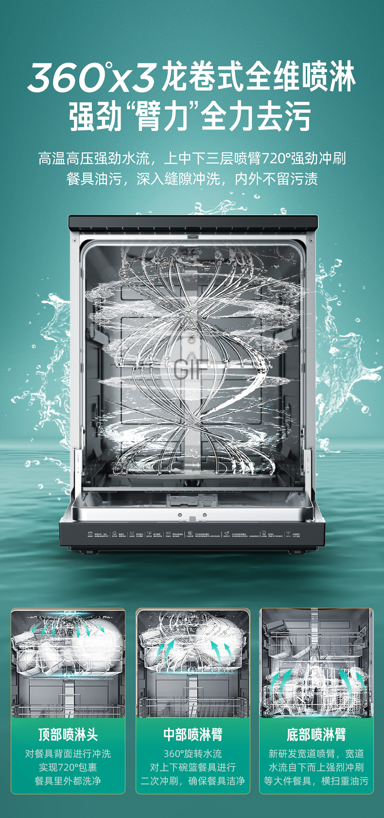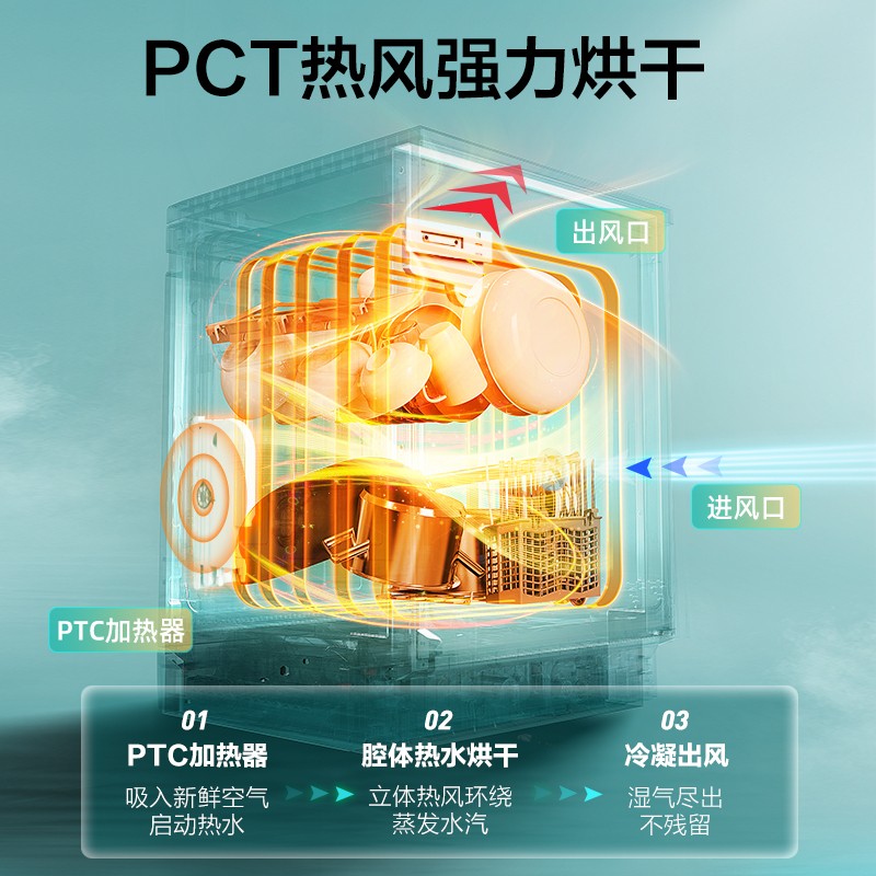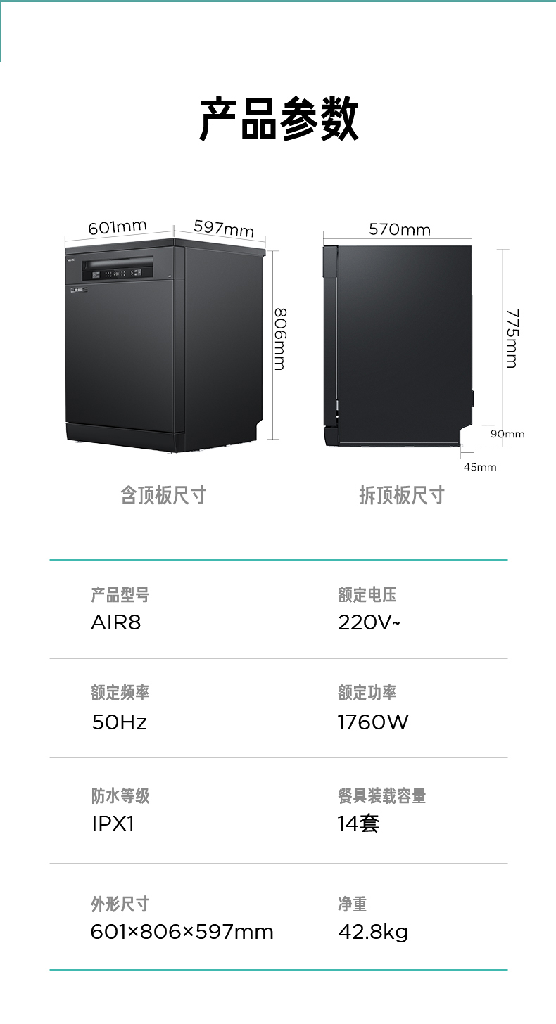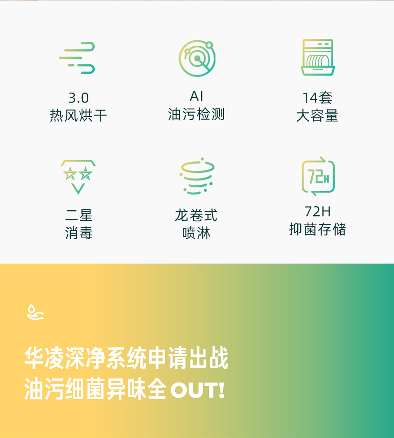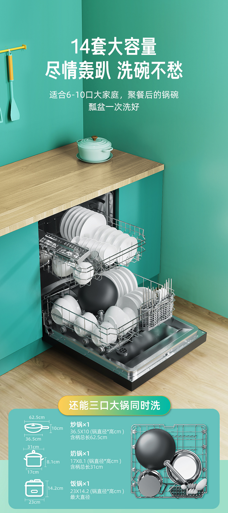 (特)华凌 美的出品 洗碗机家用14套 嵌入式台式 热风烘干智能自动油污感应 高温除菌二星消毒全自动刷碗机AIR8