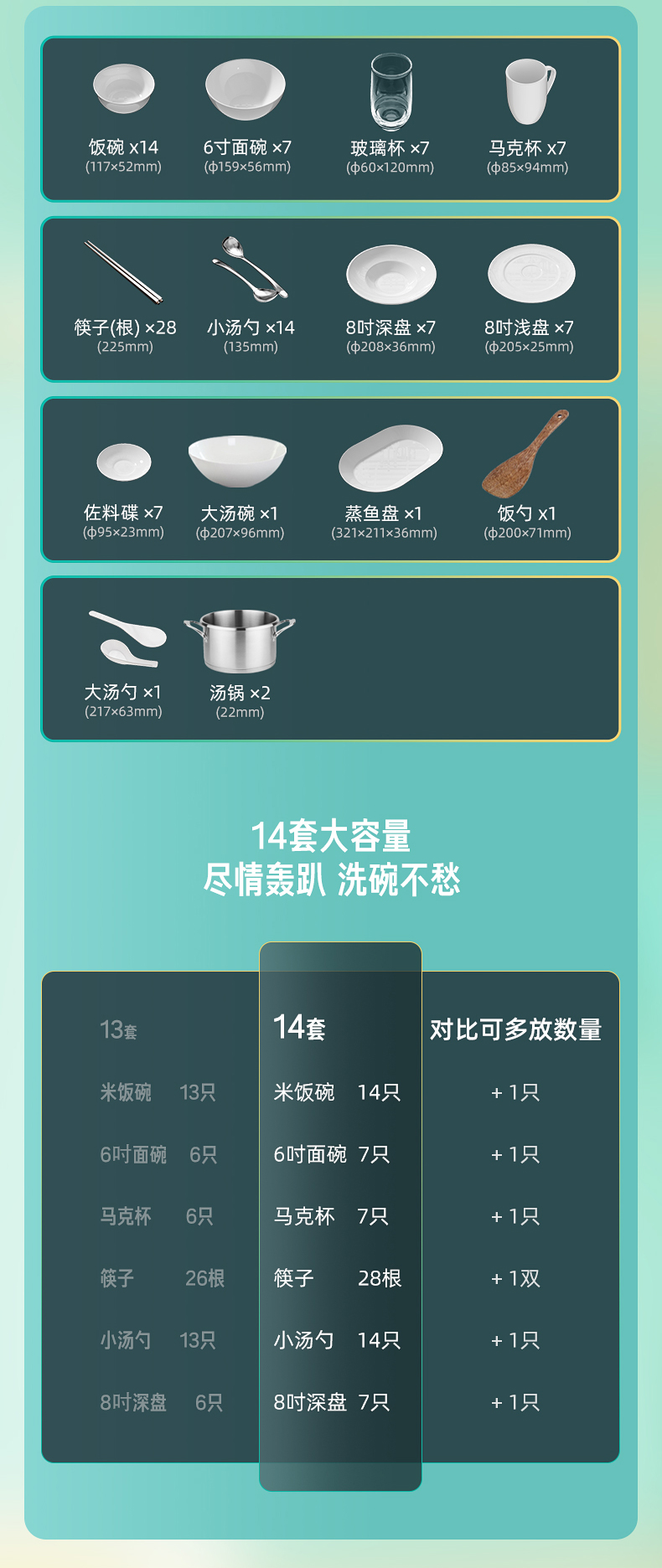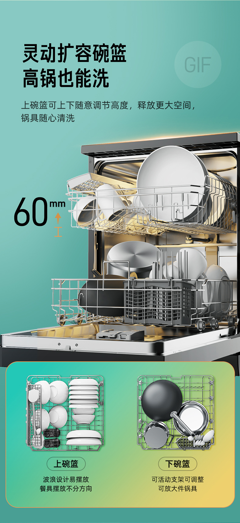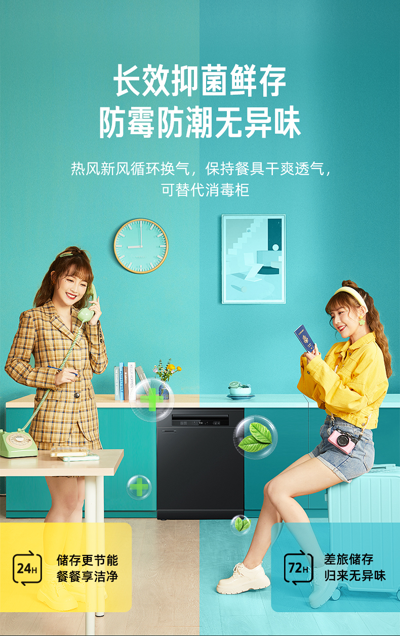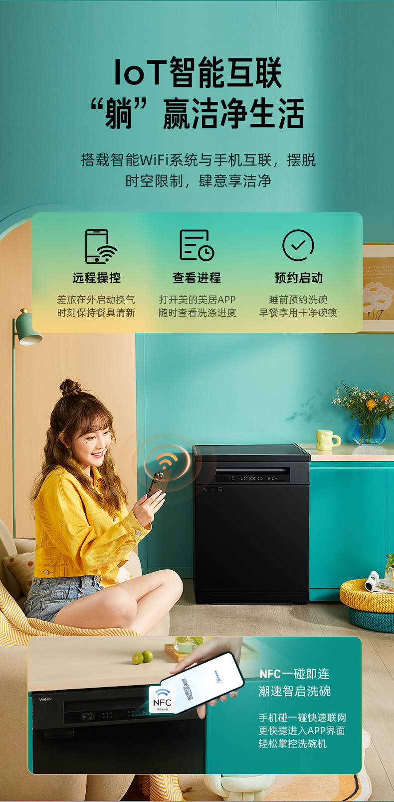 (特)华凌 美的出品 洗碗机家用14套 嵌入式台式 热风烘干智能自动油污感应 高温除菌二星消毒全自动刷碗机AIR8