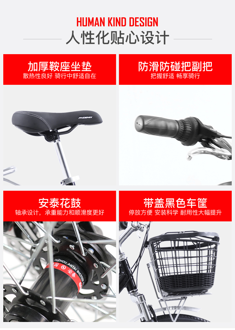 凤凰自行车城市车轻便通勤男女式学生复古成年单车