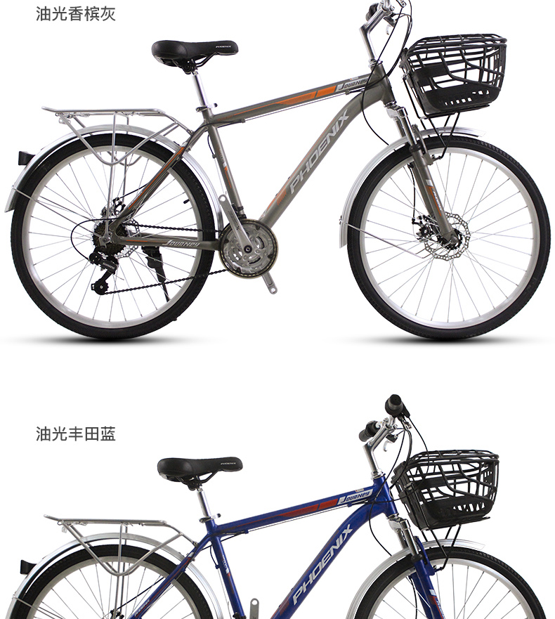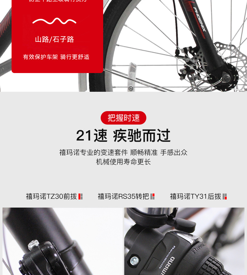 凤凰山地自行车单车变速男女个性越野双碟刹赛车悍特