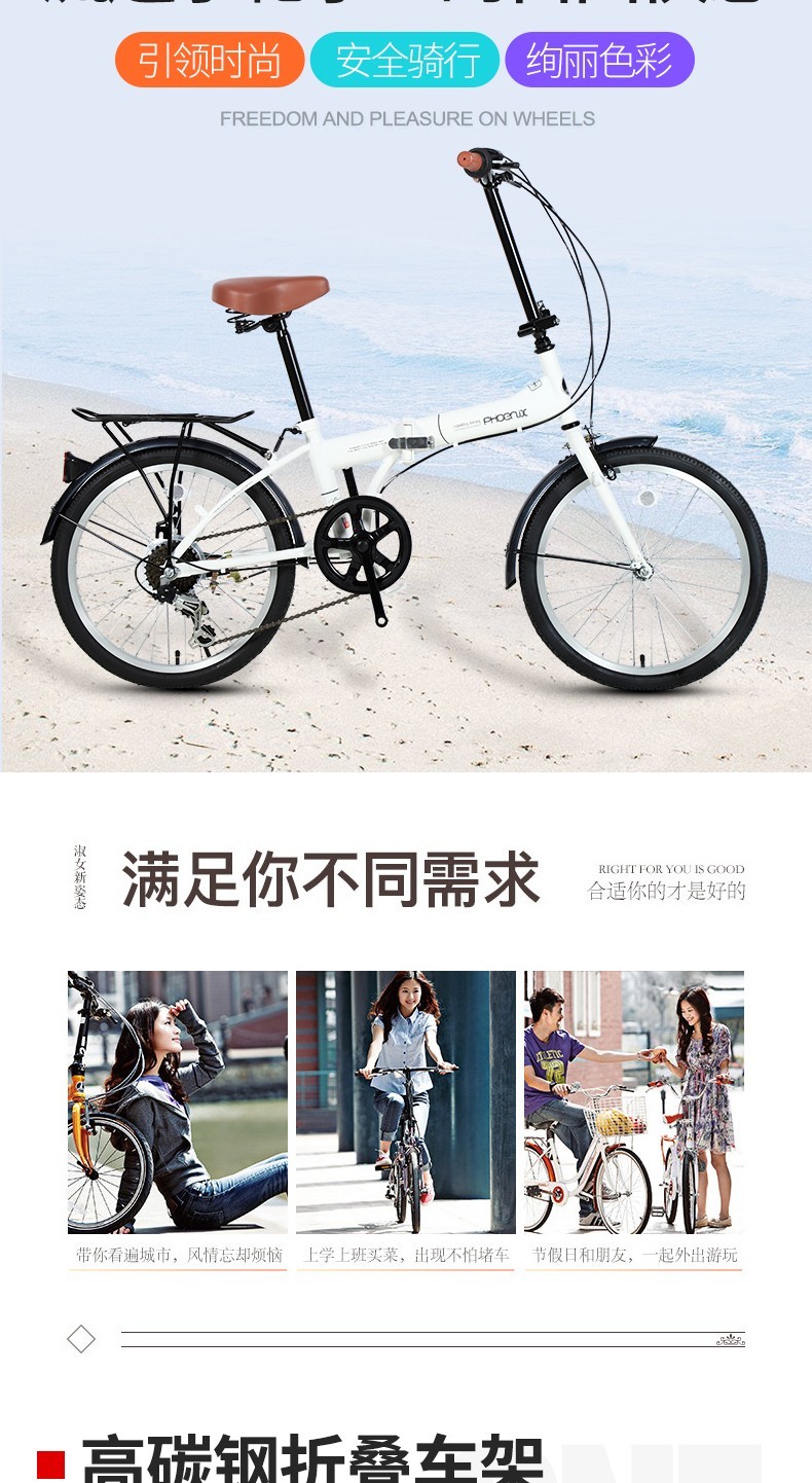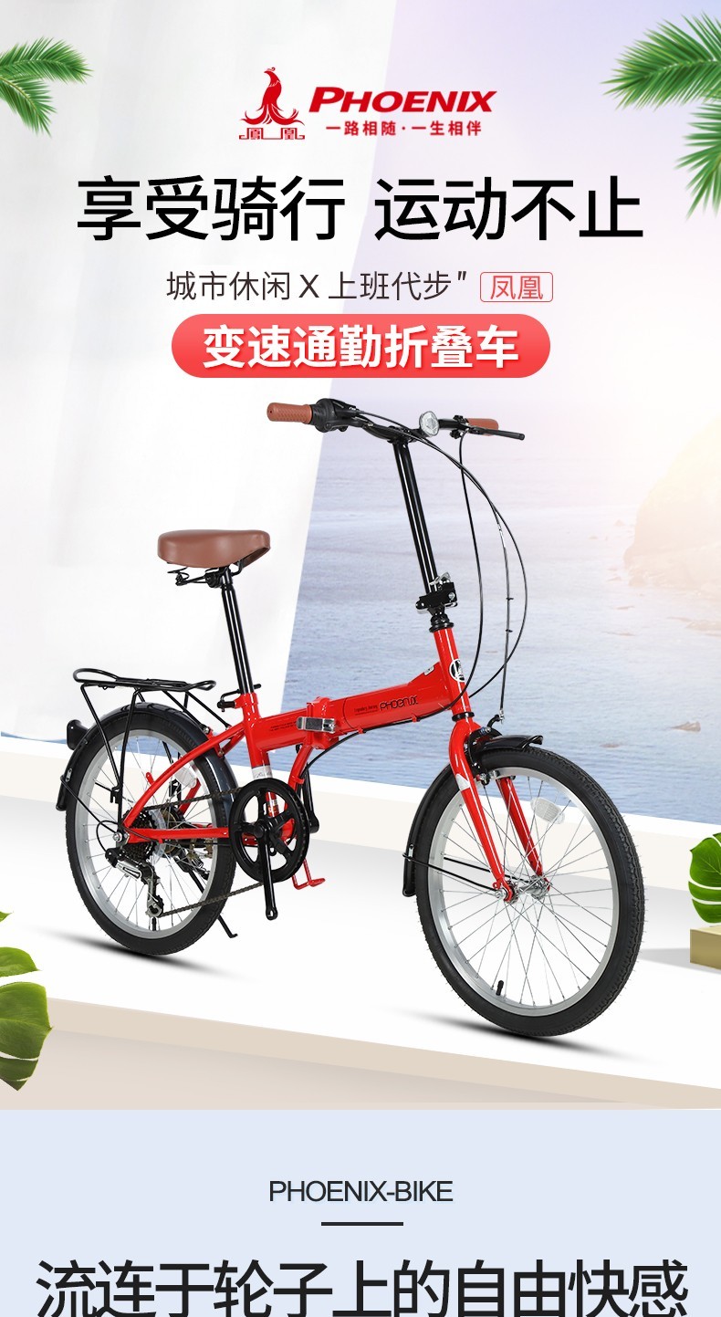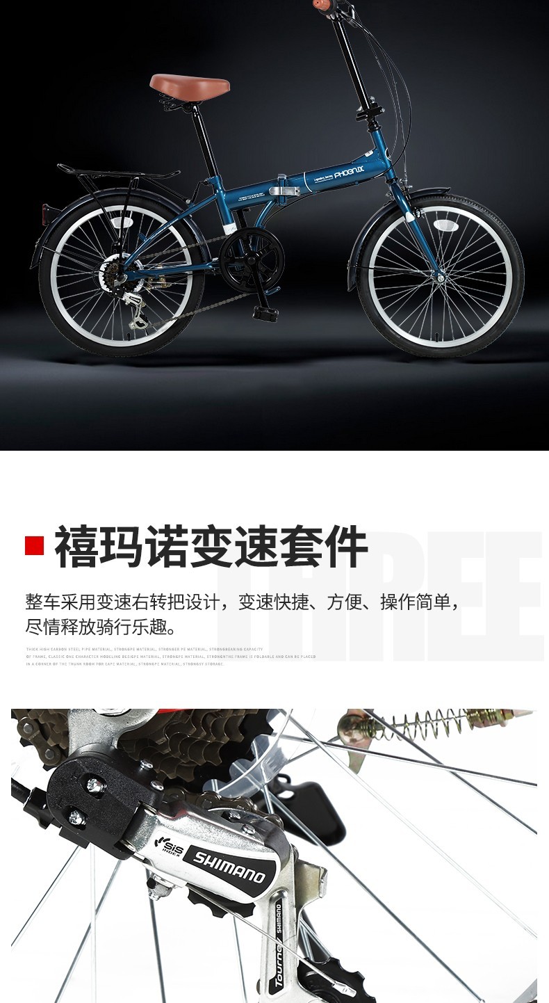 上海凤凰牌自行车折叠车男女通勤车单车学生款小轮20寸变速折叠成年轻便通勤