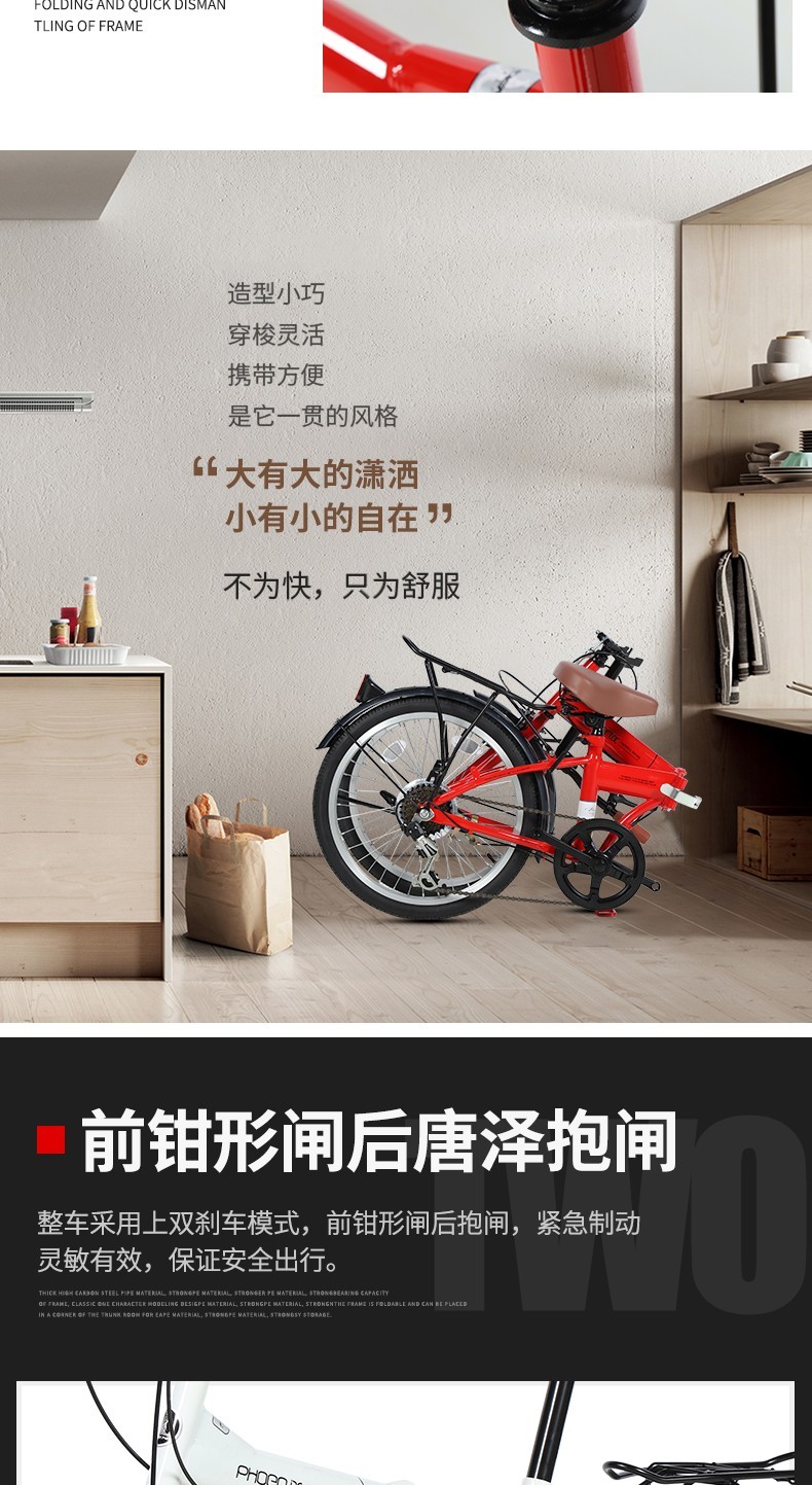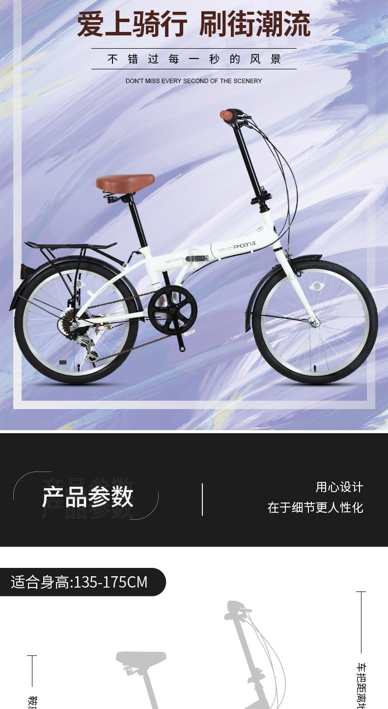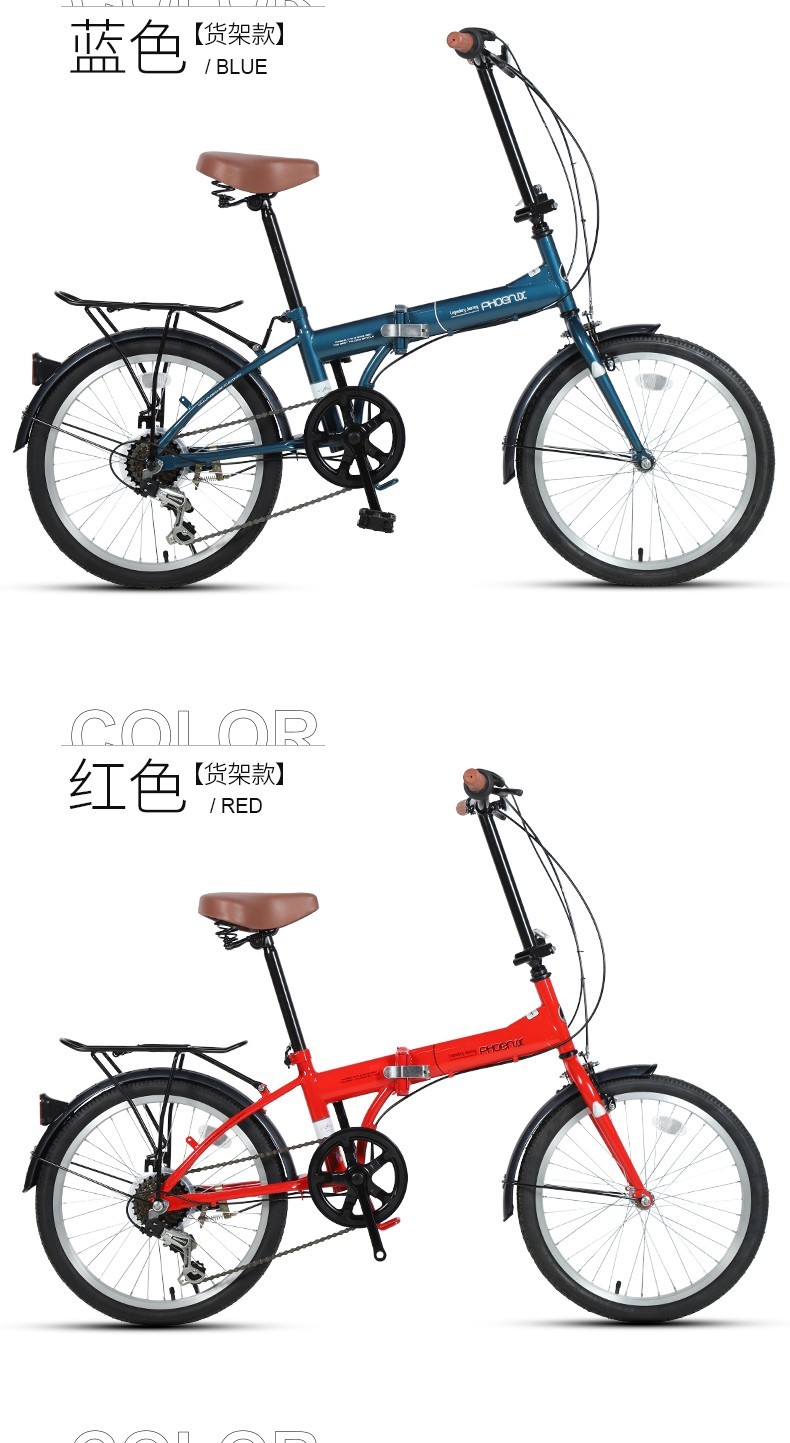 上海凤凰牌自行车折叠车男女通勤车单车学生款小轮20寸变速折叠成年轻便通勤