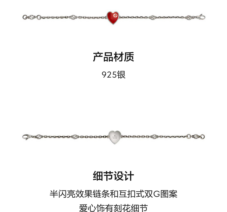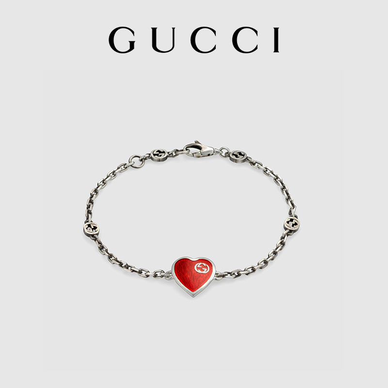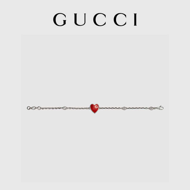 (特)[七夕礼物]GUCCI古驰互扣式双G珐琅爱心手镯
