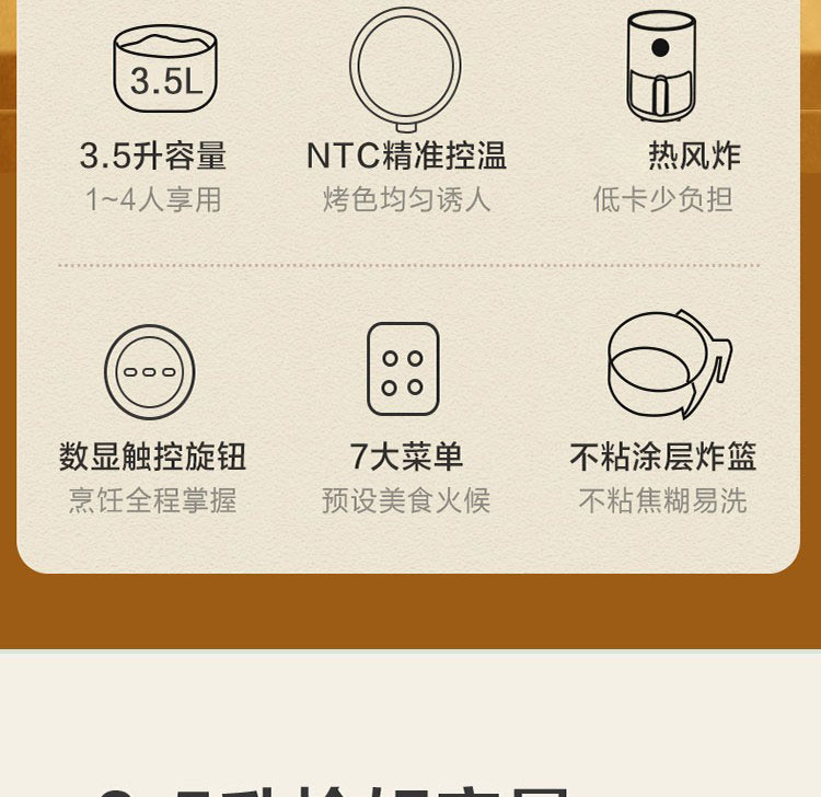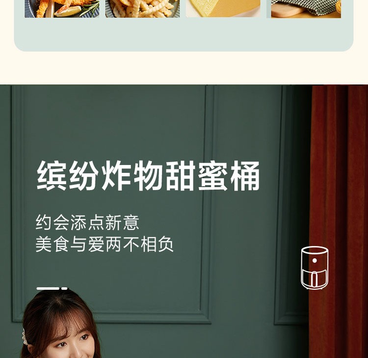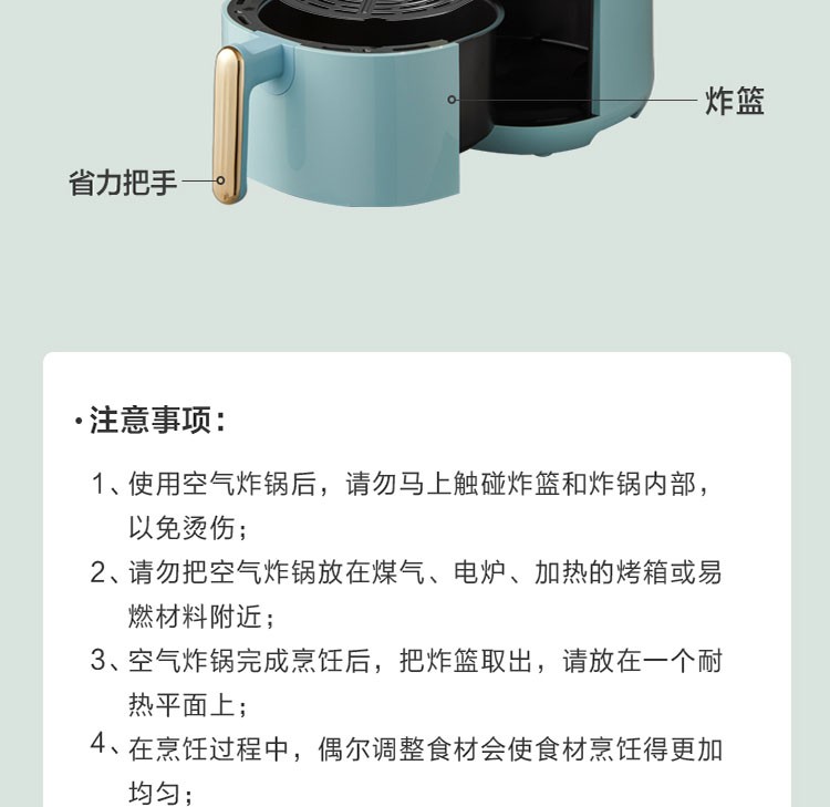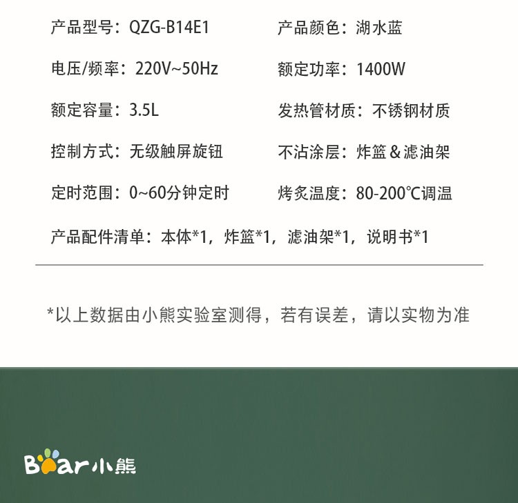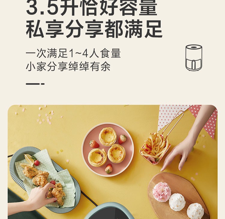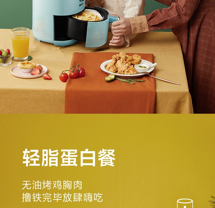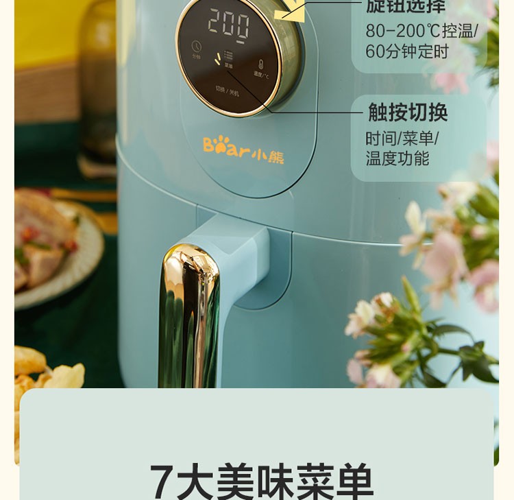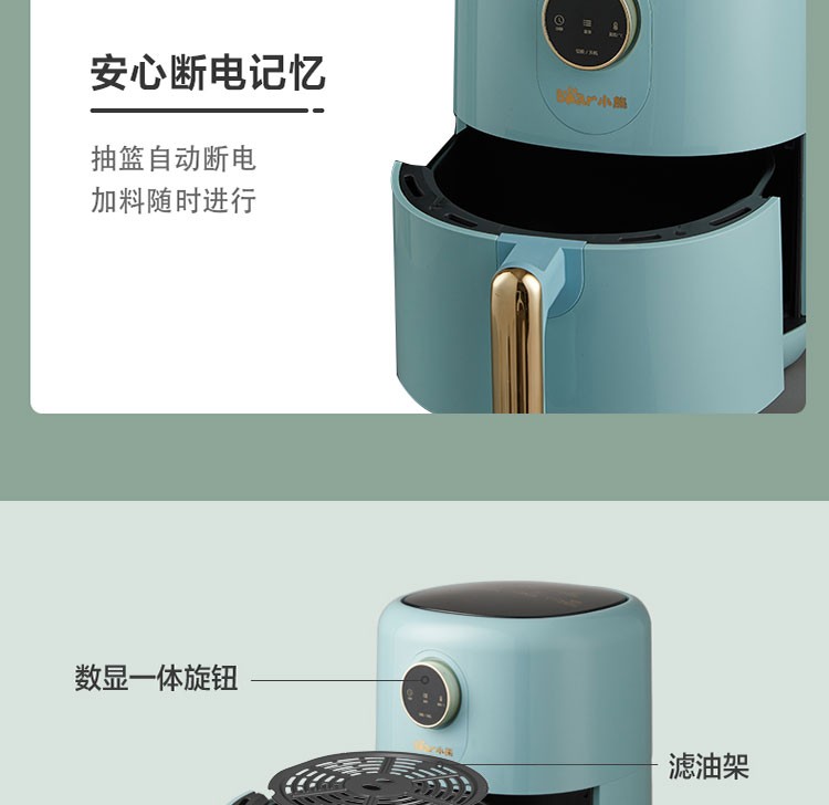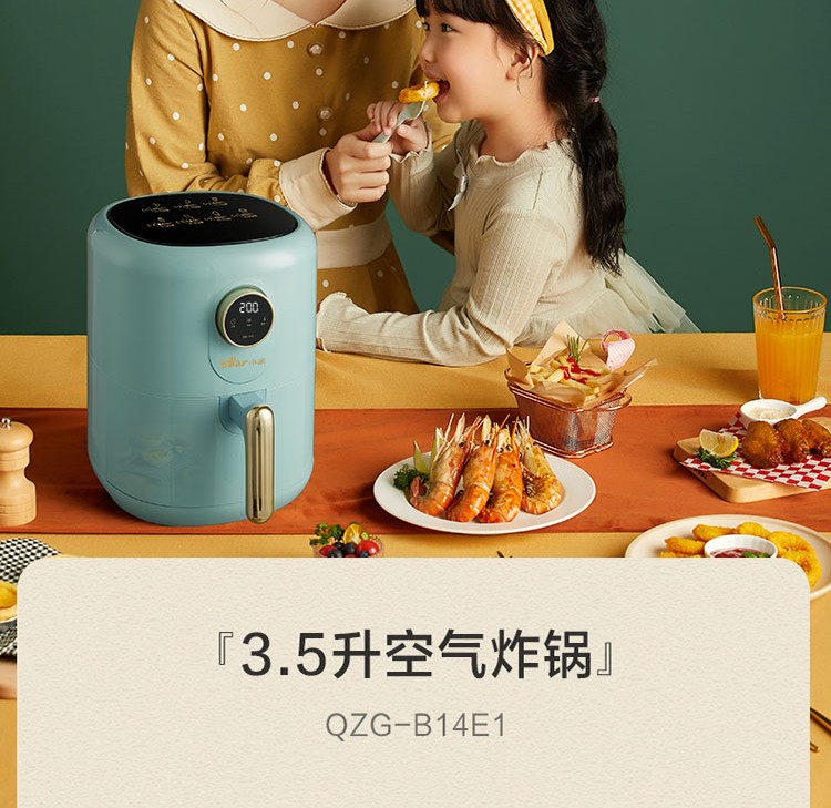 小熊(Bear)空气炸锅 3.5L家用低脂轻食机 多功能电炸锅 一人食薯条机QZG-B14E1