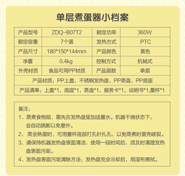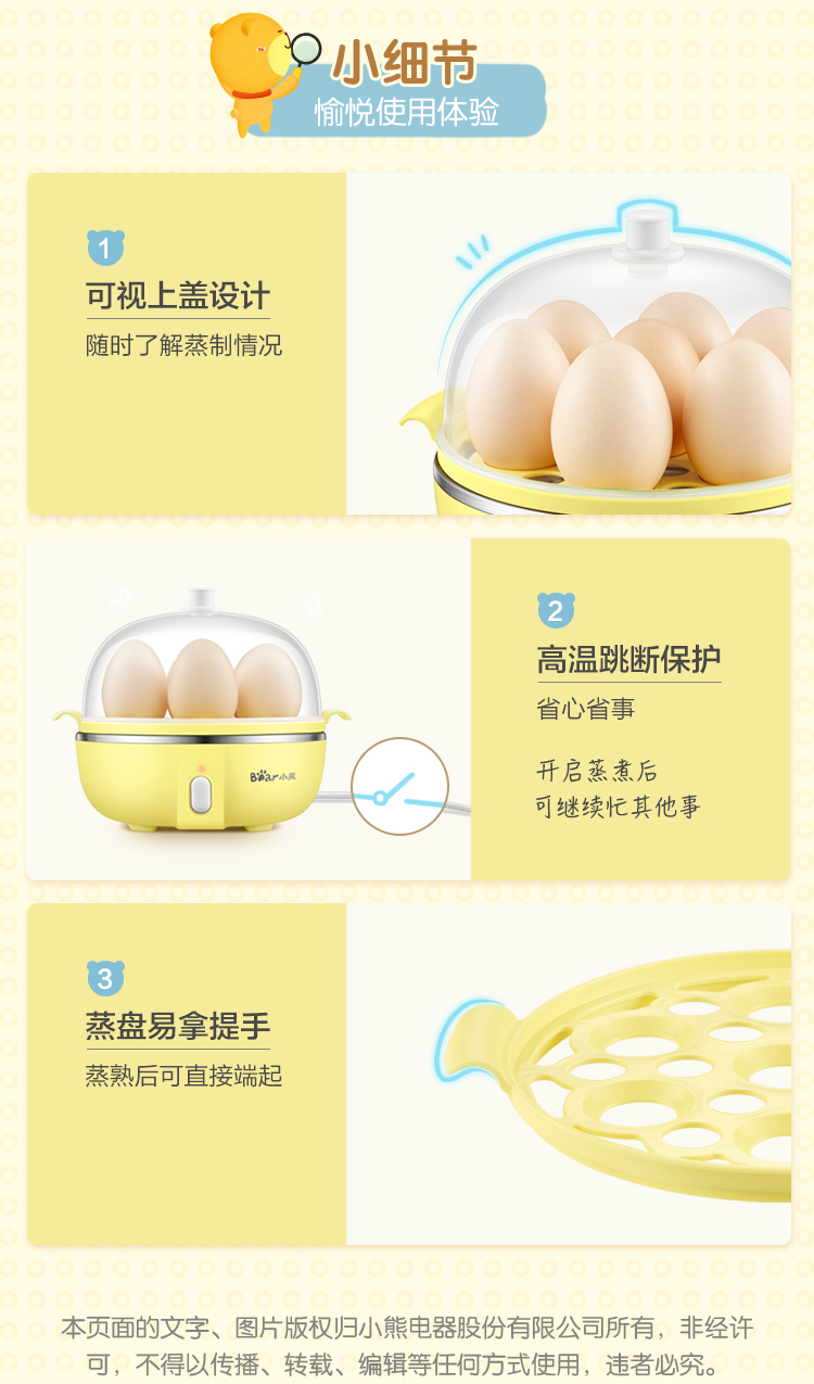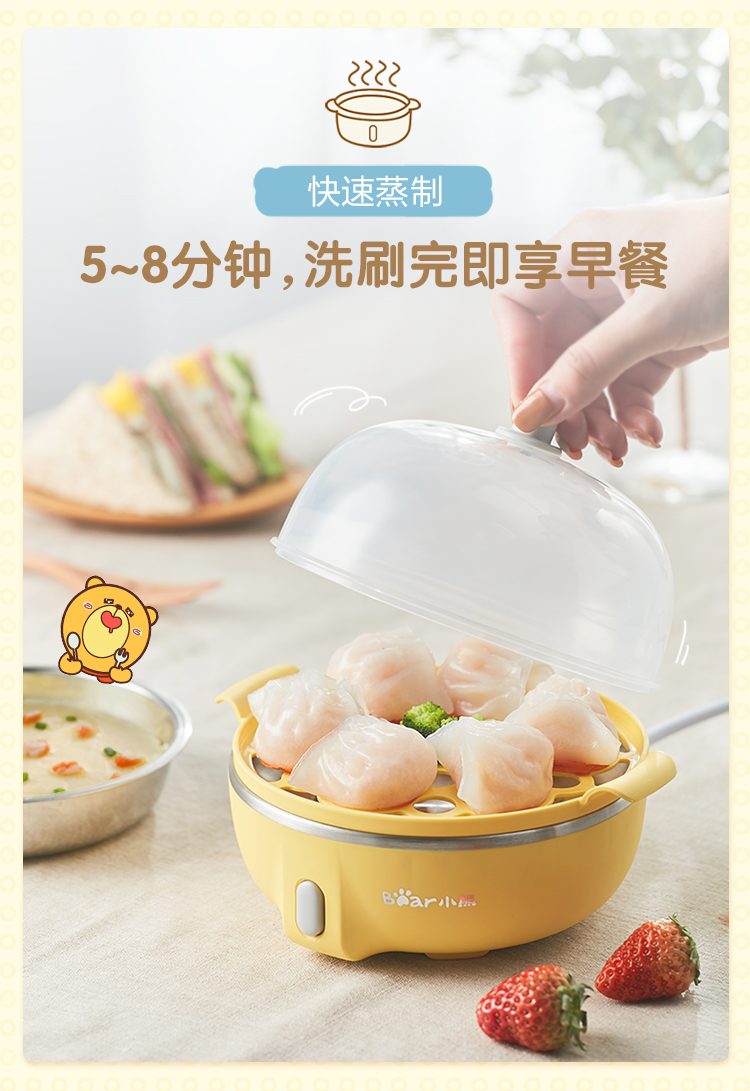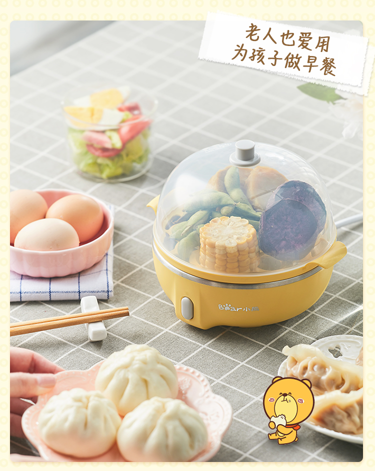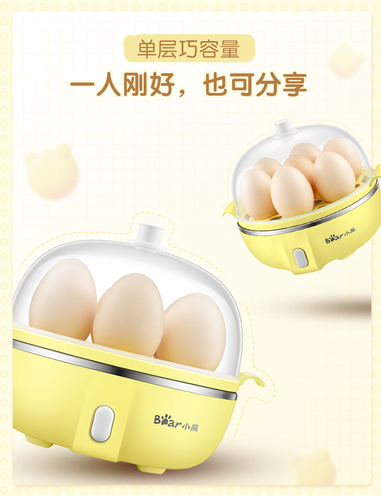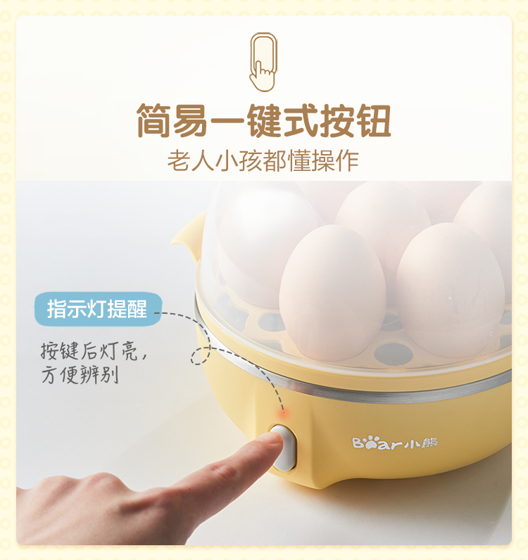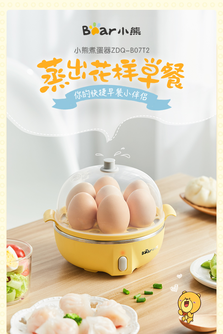 小熊(Bear)煮蛋器 家用早餐迷你机蒸蛋器自动断电一键式单层可煮5个蛋 ZDQ-B07T2