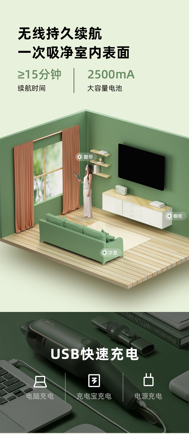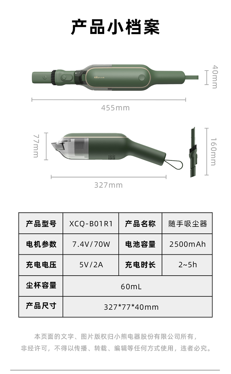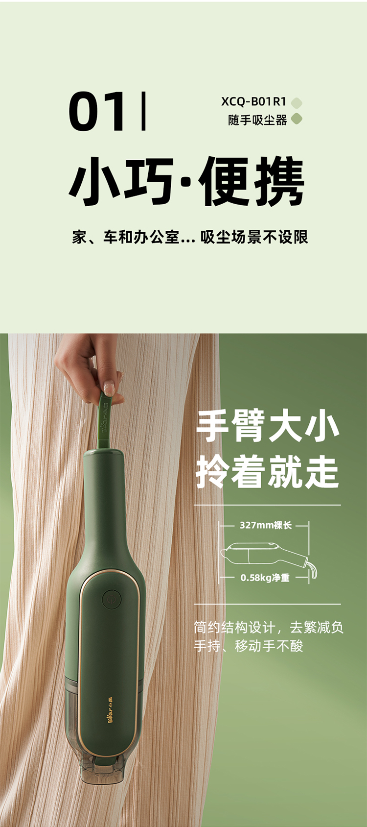 (特)小熊(Bear)吸尘器 家用车载手持无线吸尘器 大功率吸尘器吸尘机 XCQ-B01R1