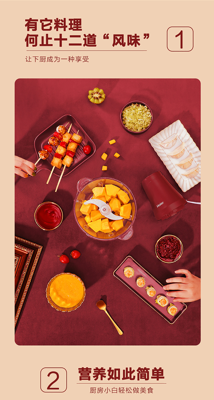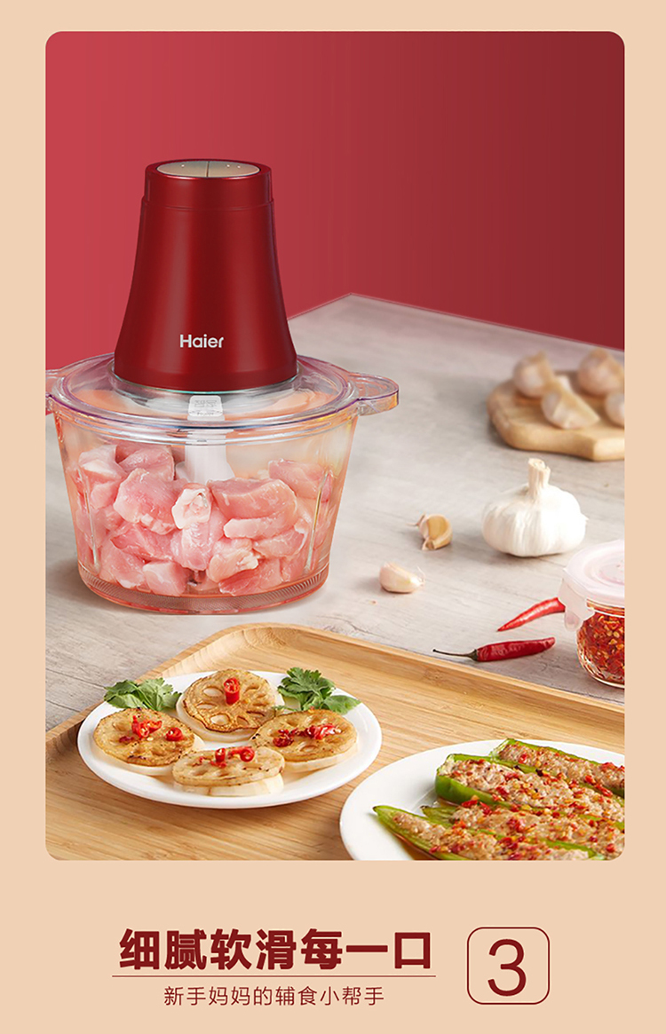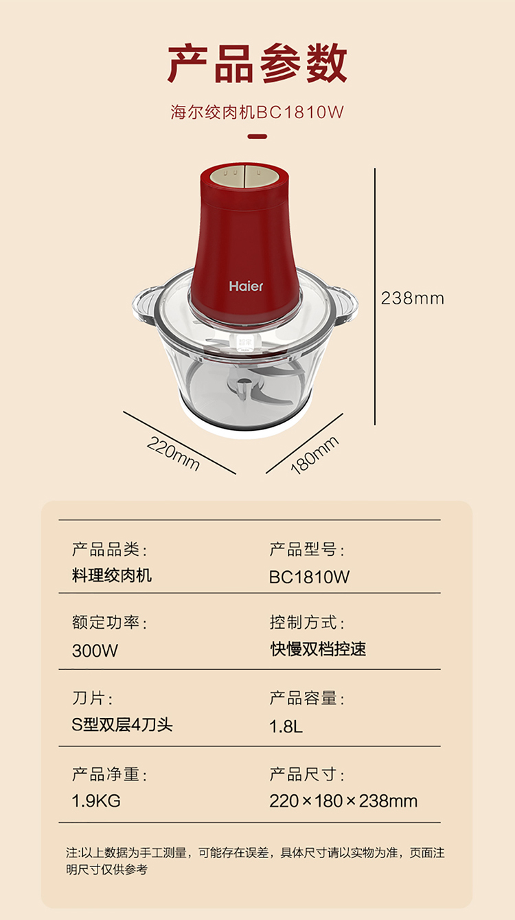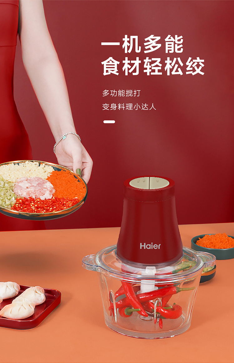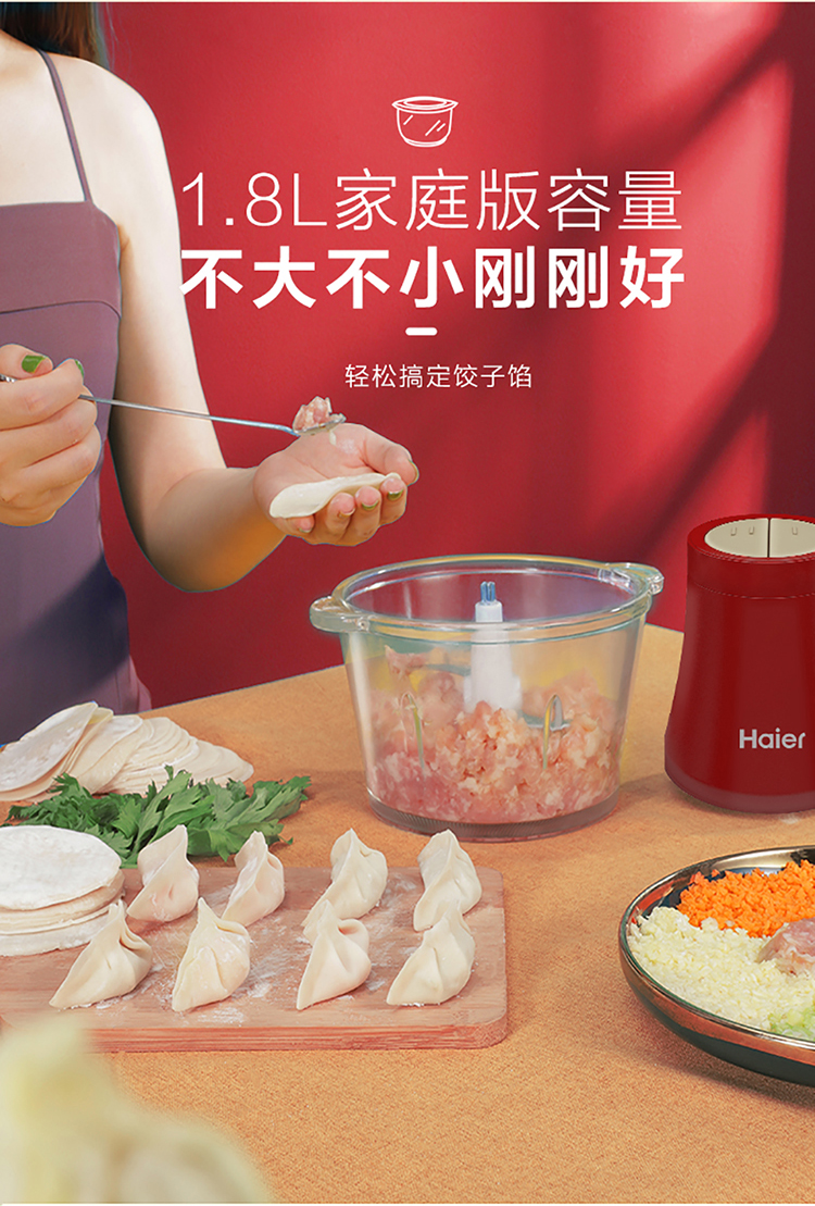 海尔 (Haier) 绞肉机家用多功能电动料理机饺子绞馅机碎肉机辅食搅拌机搅肉打肉机蒜蓉切菜机 BC1810W