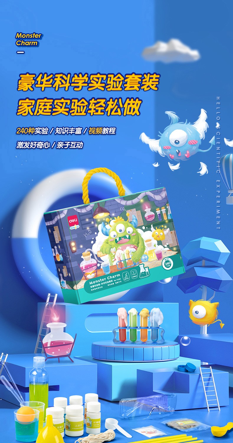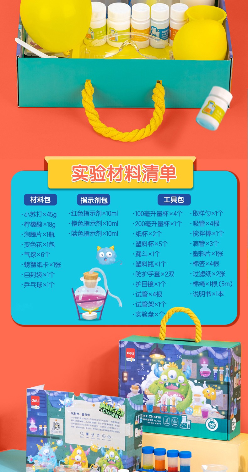 得力科学实验套装玩具幼儿园物理手工制作儿童化学趣味盒子男女孩生日六一儿童节礼物 74392