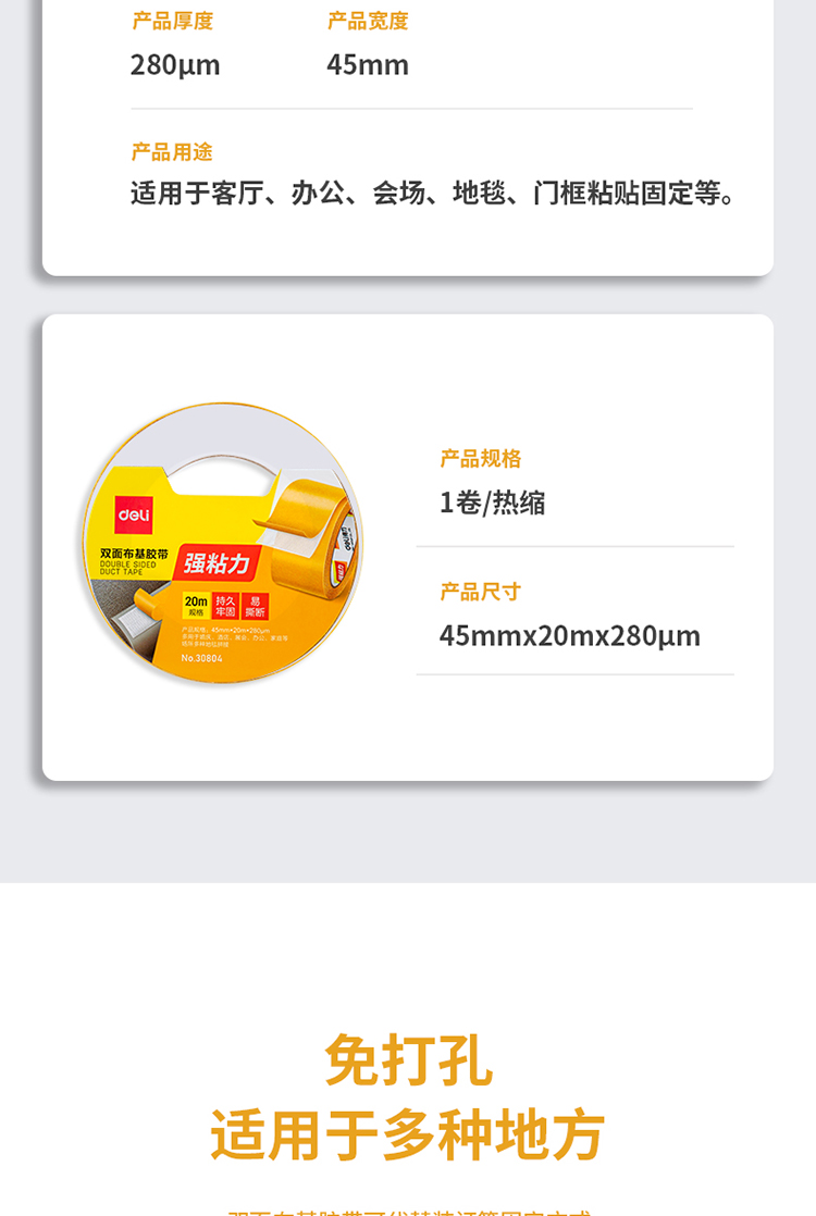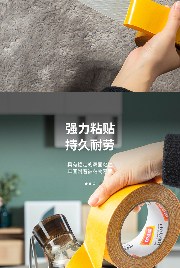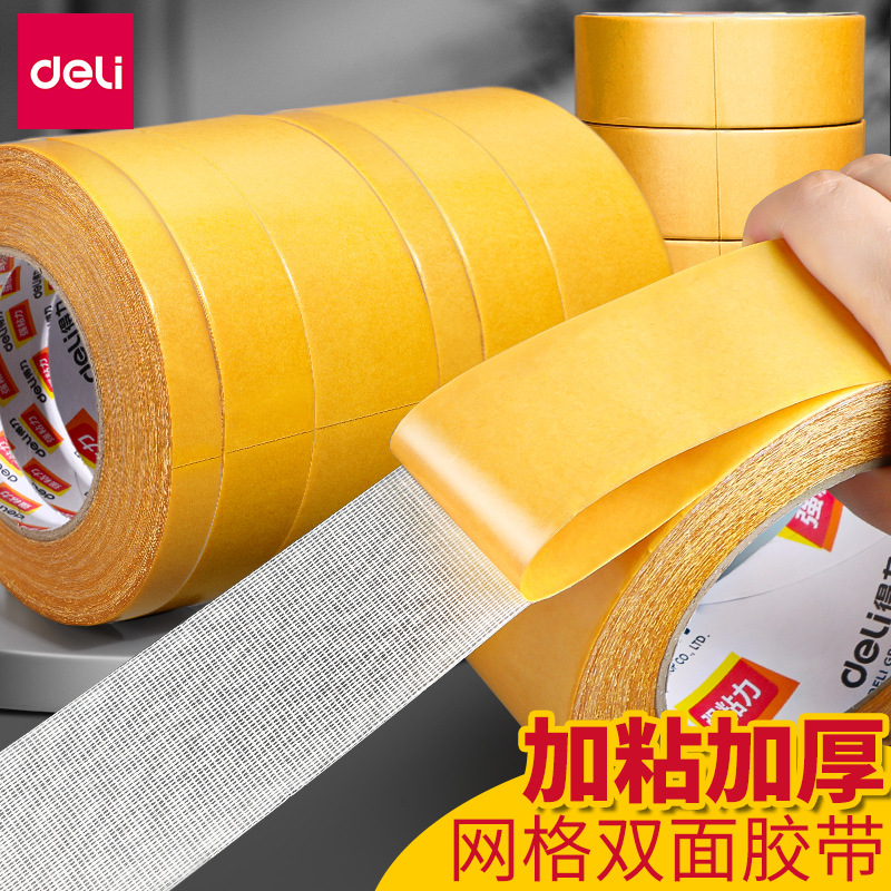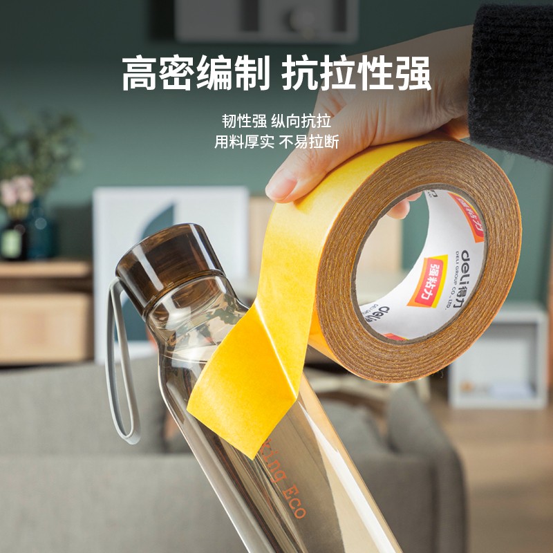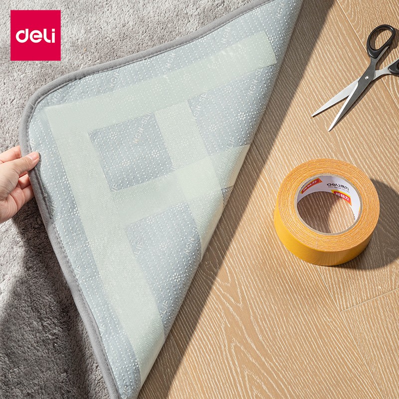 得力(deli) 双面胶 强力双面布基胶带 黄色 45mm*20m*280μm 1卷装 地毯胶带 高粘无痕固定 30804
