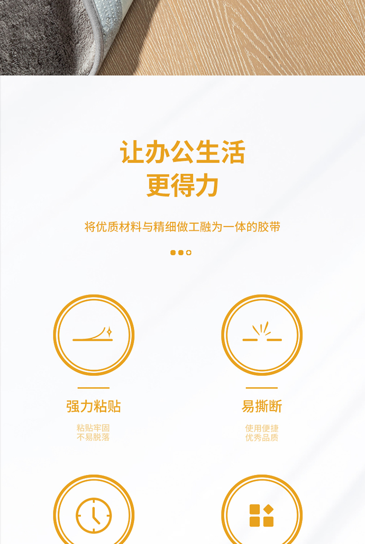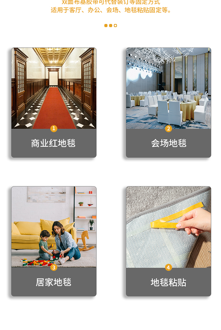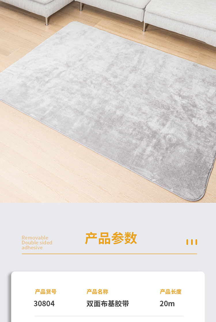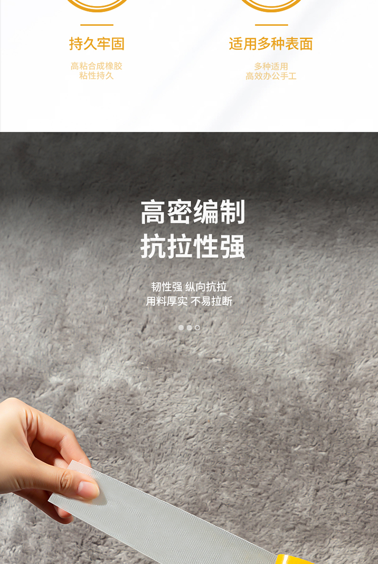 得力(deli) 双面胶 强力双面布基胶带 黄色 45mm*20m*280μm 1卷装 地毯胶带 高粘无痕固定 30804