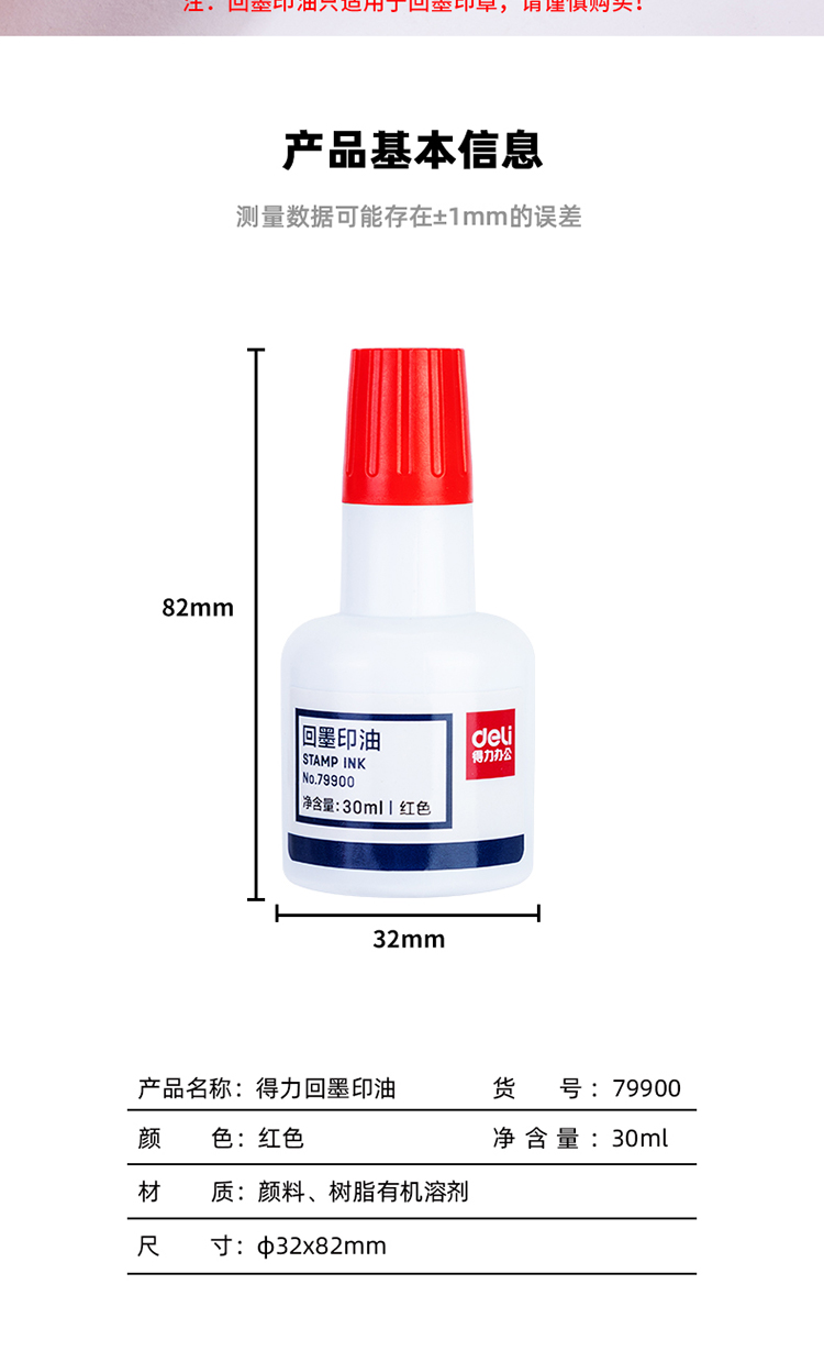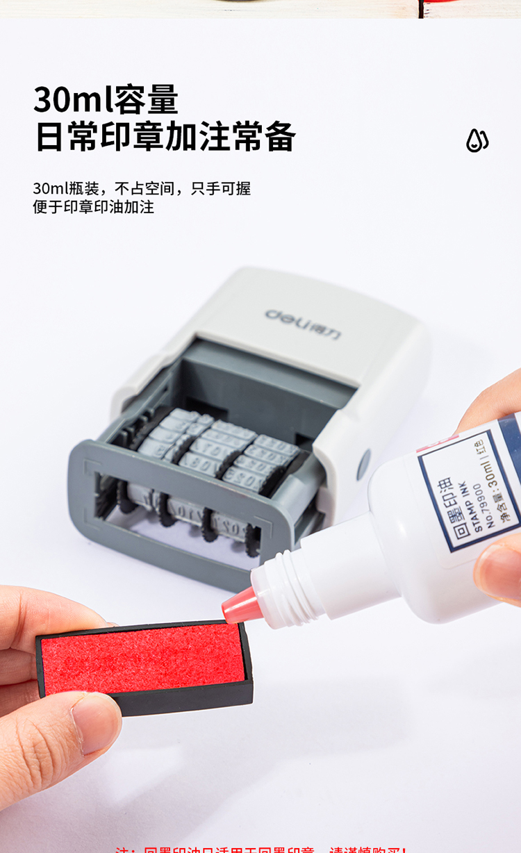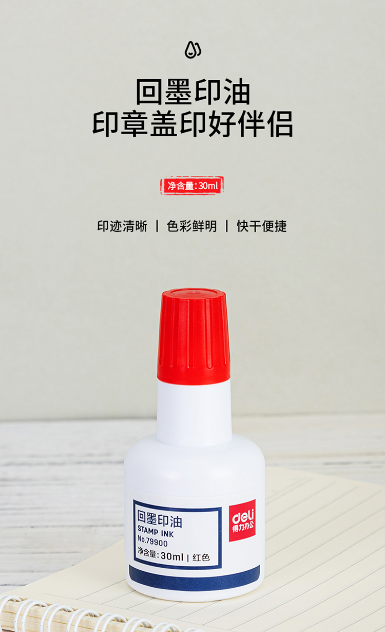 (特)得力(deli)30ml水性回墨印油 发票合同财务回墨印章用油 办公用品 79900