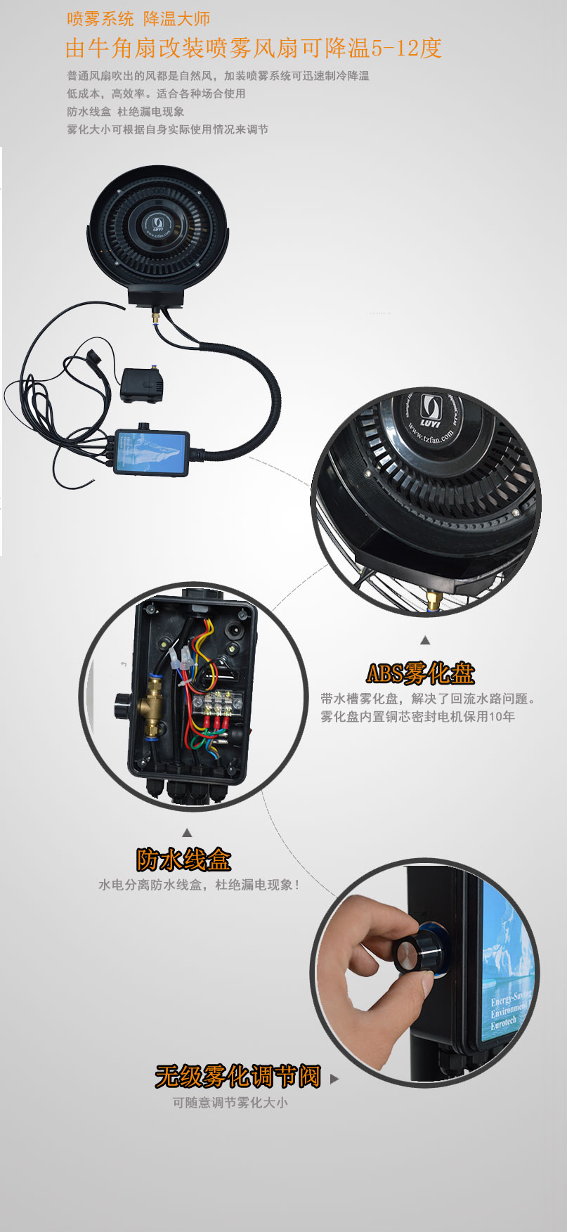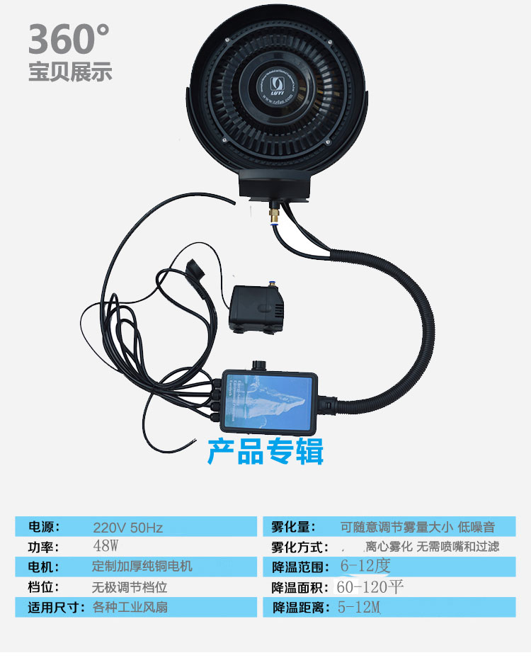 (特)离心雾化盘喷雾工业风扇水雾器消毒雾化系统户外加湿降温电风扇