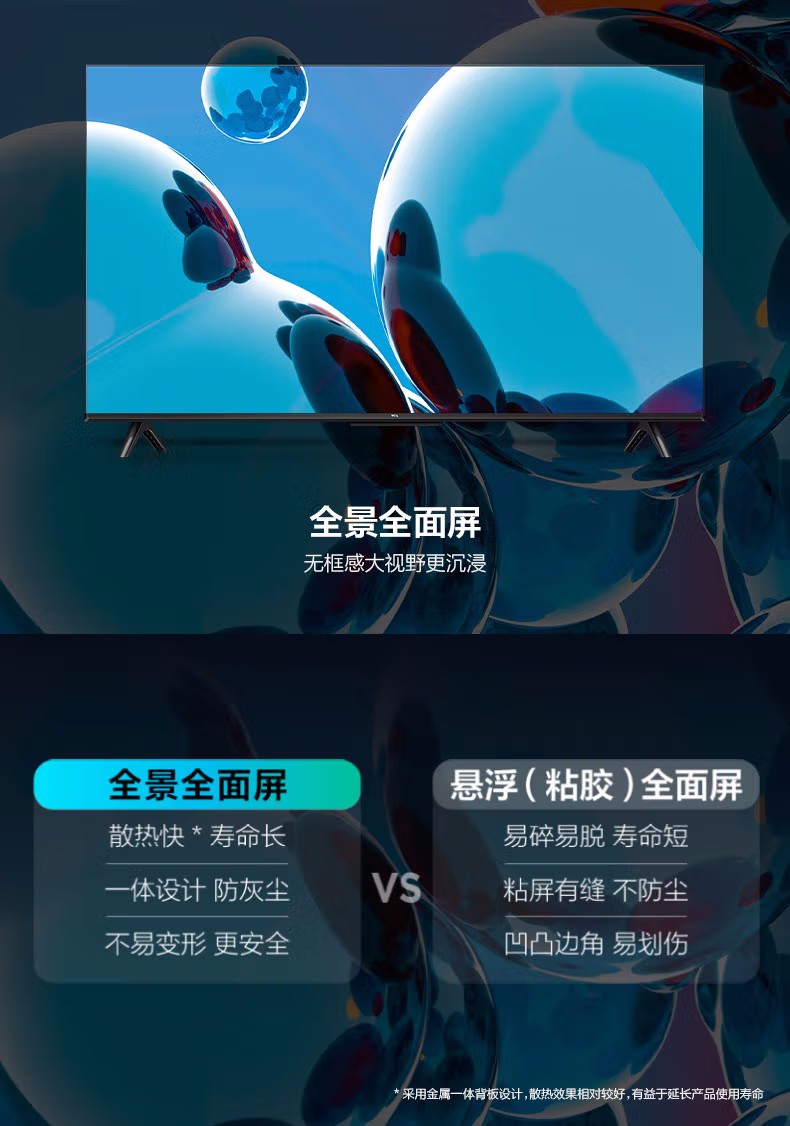 TCL 43G50E 43英寸 智能2K电视 金属背板 全景全面屏 DTS双解码 AI音画 一键投屏
