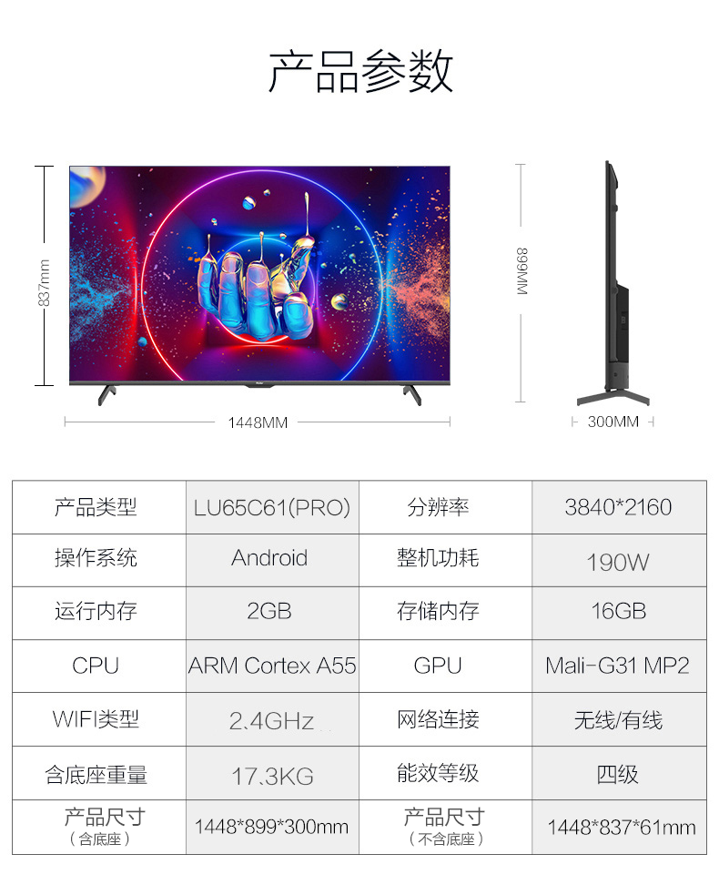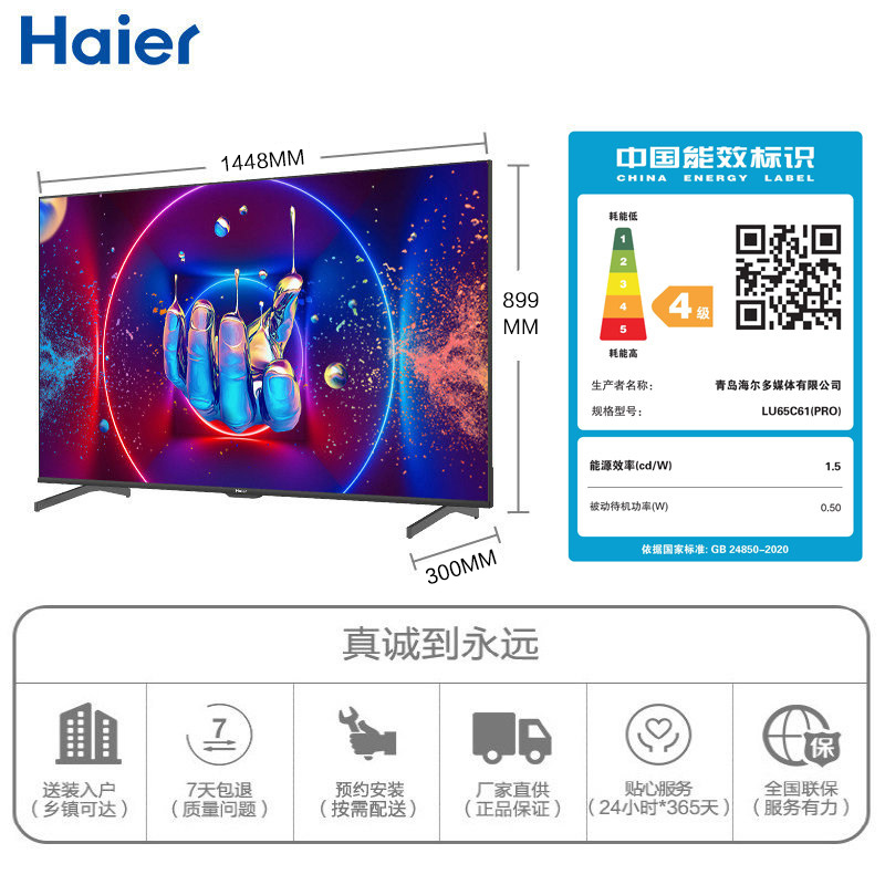 (特)Haier/海尔 LU65C61(PRO) 65英寸4K高清智慧屏智能平板液晶电视机