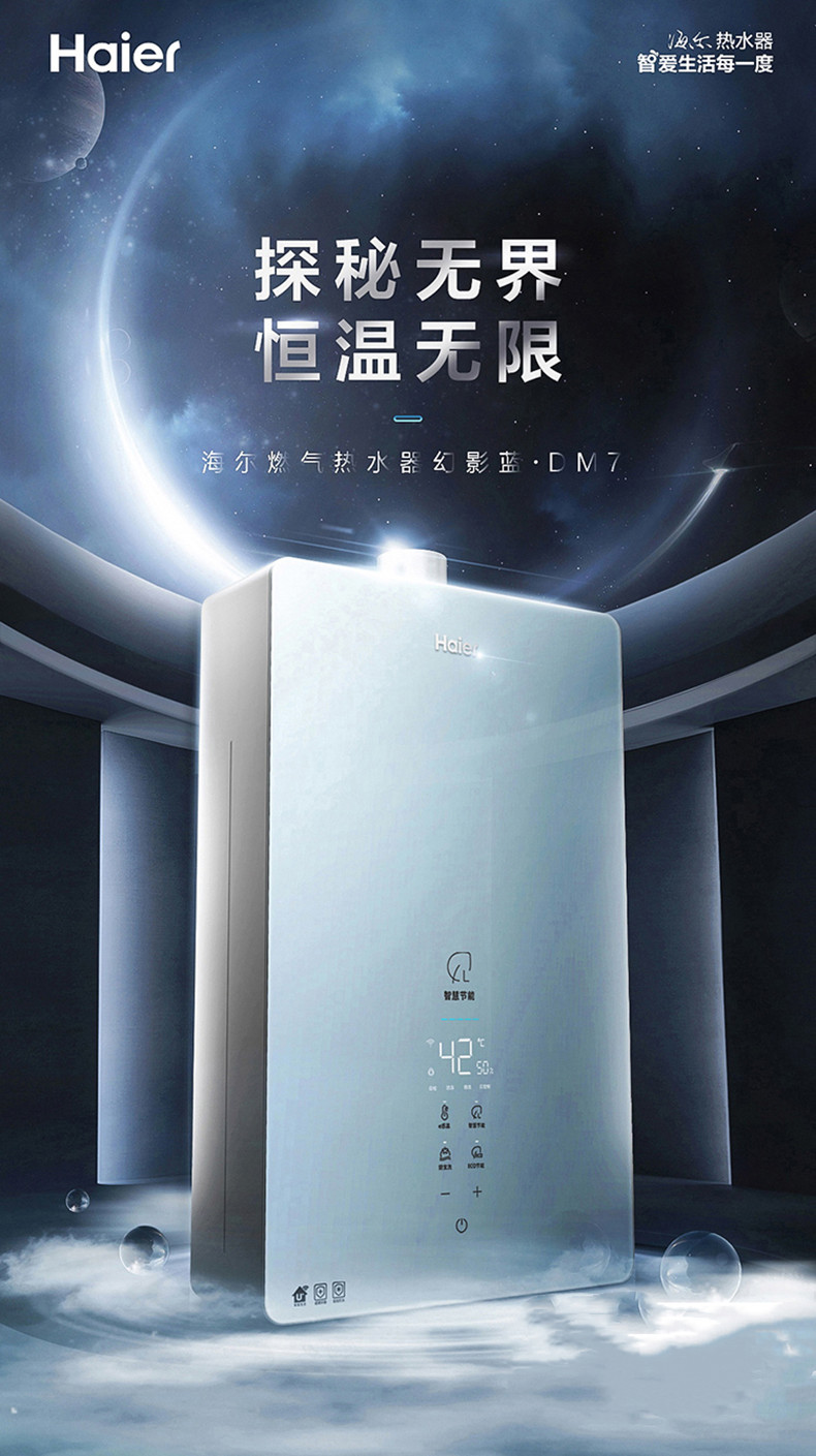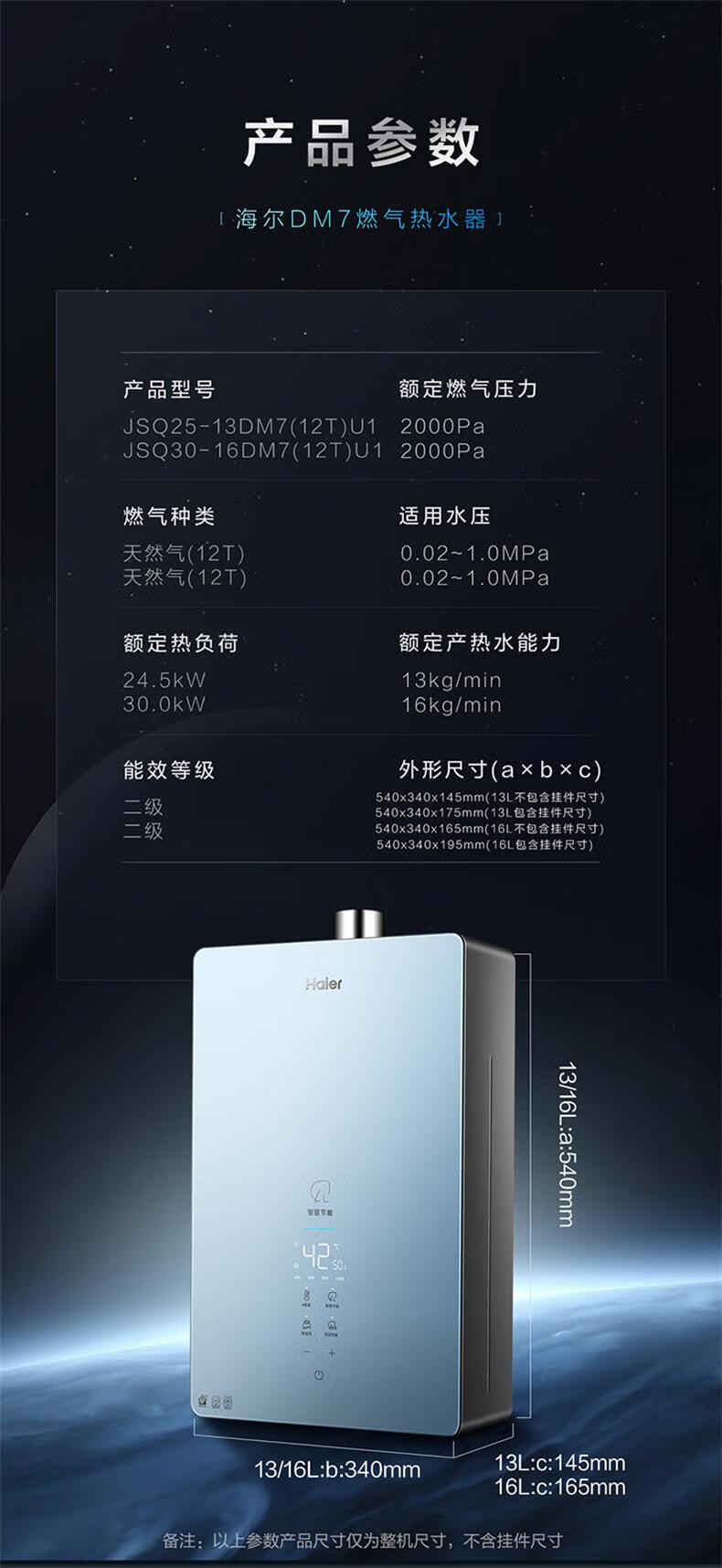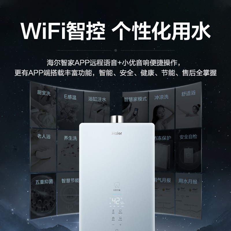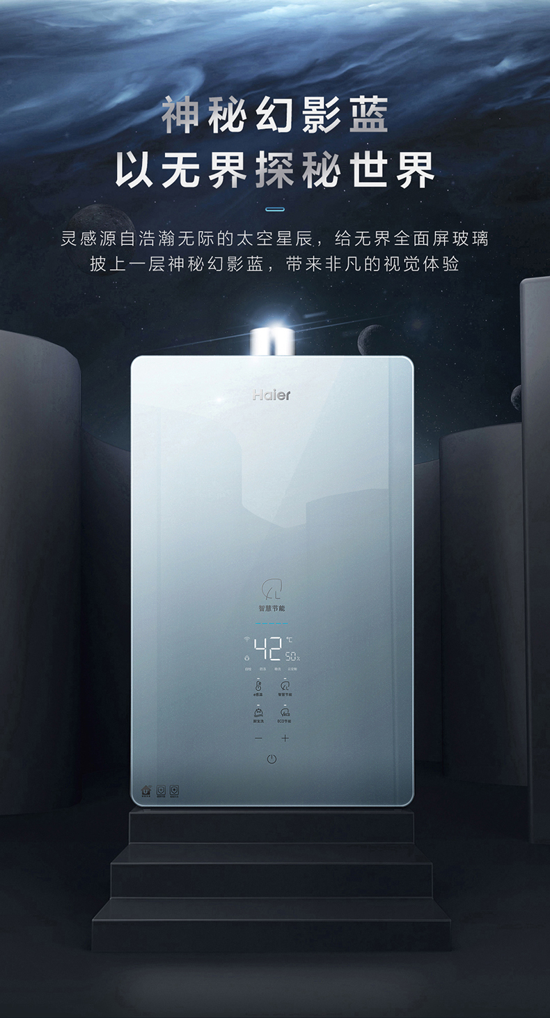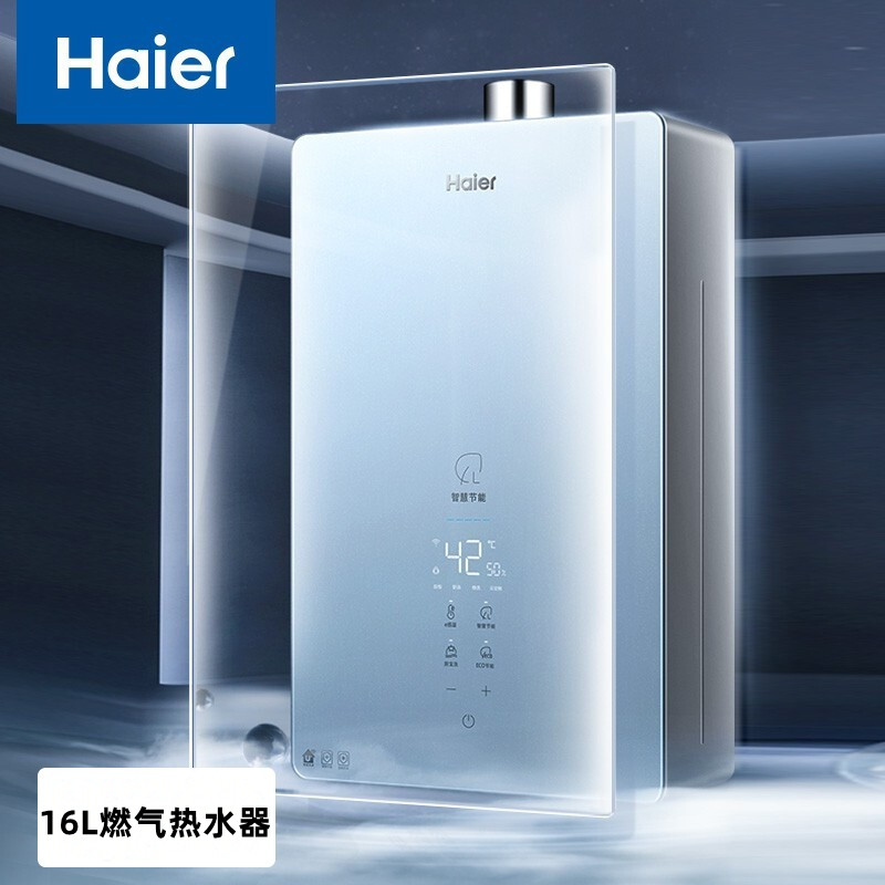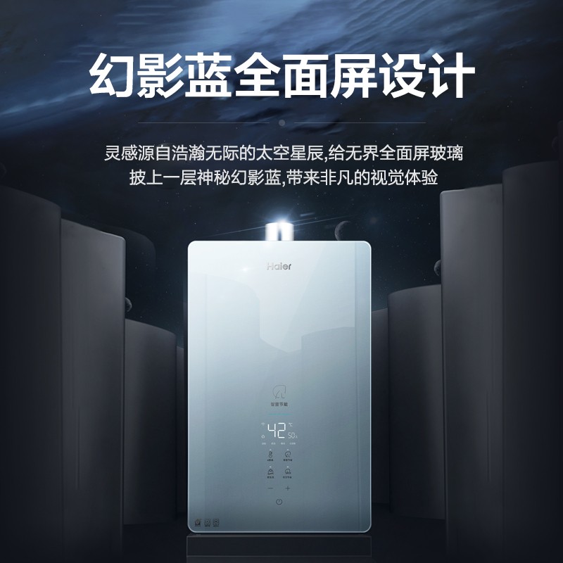 (特)海尔(Haier)幻影蓝系列16L燃气热水器天然气 全面屏玻璃面板 母婴晶彩JSQ30-16DM7(12T)U1