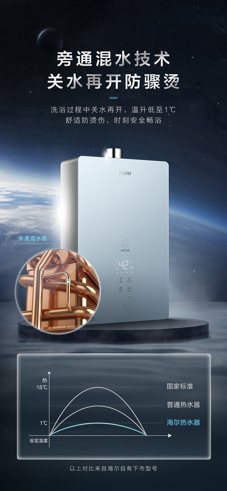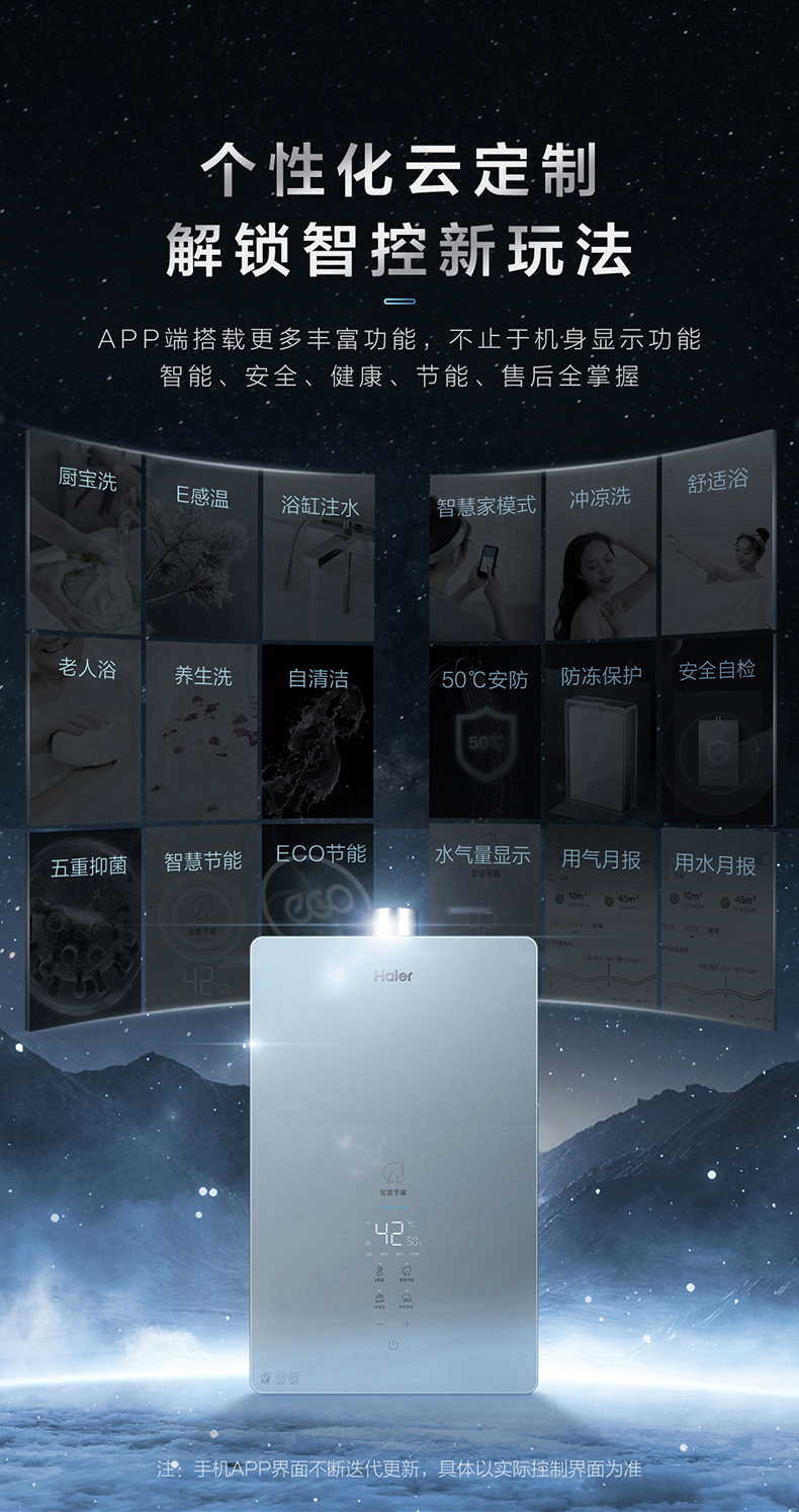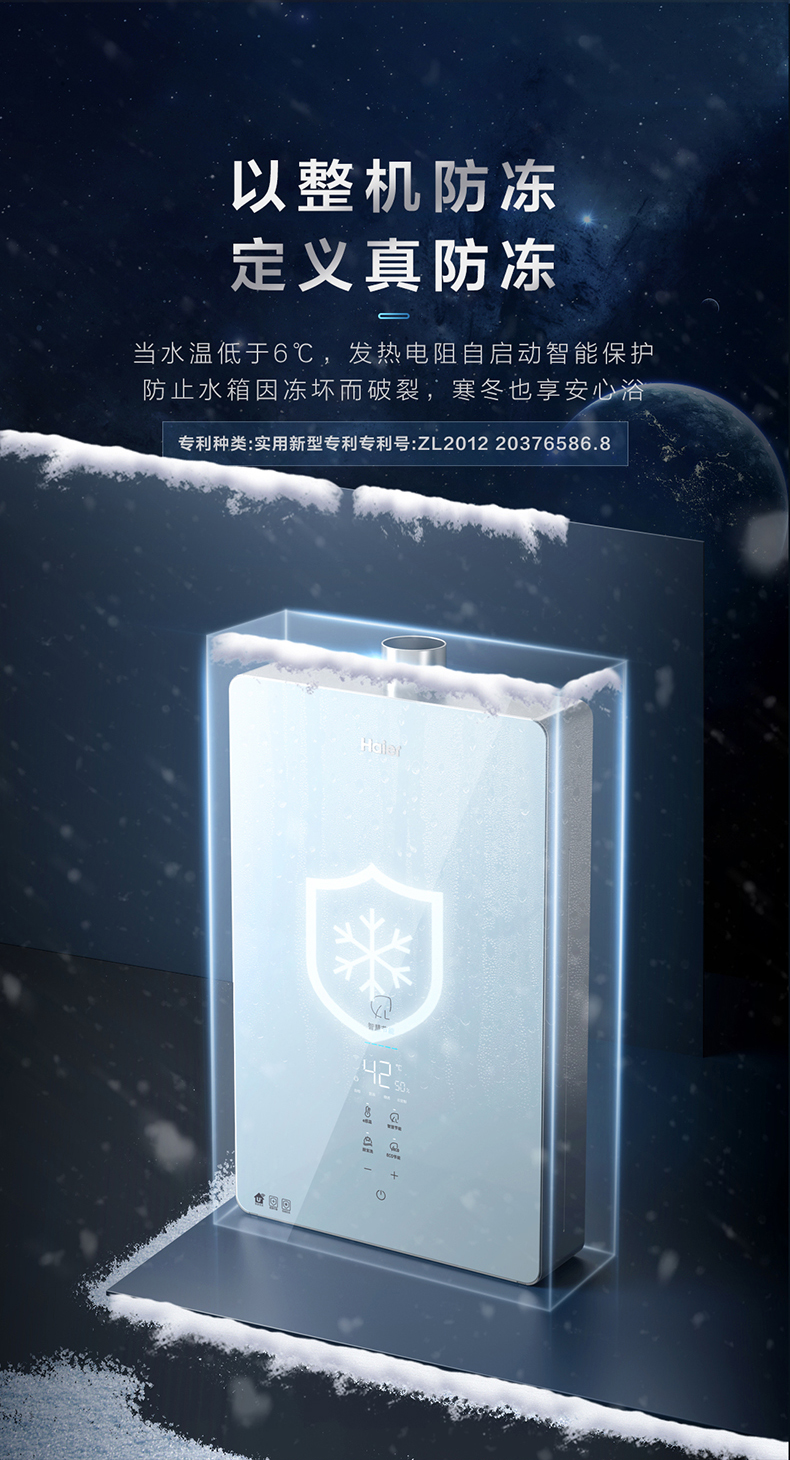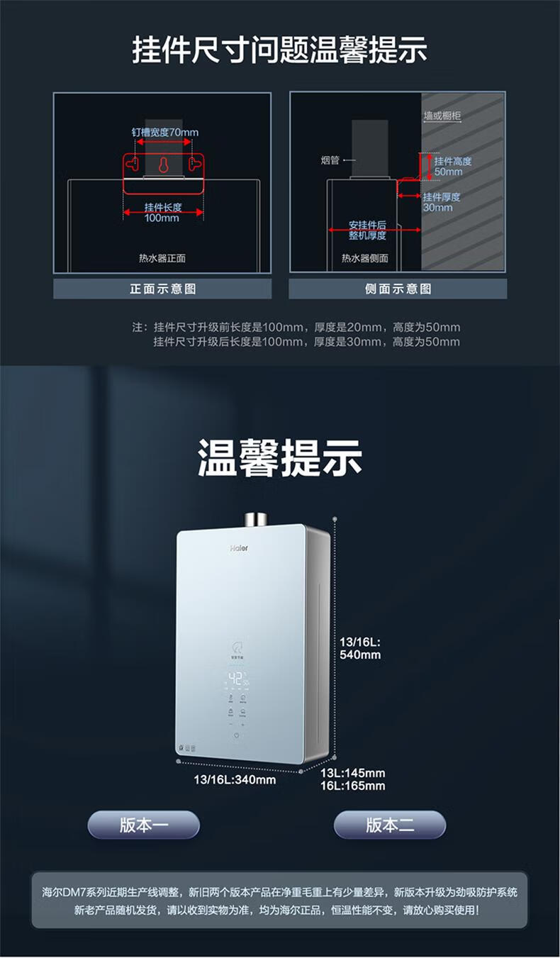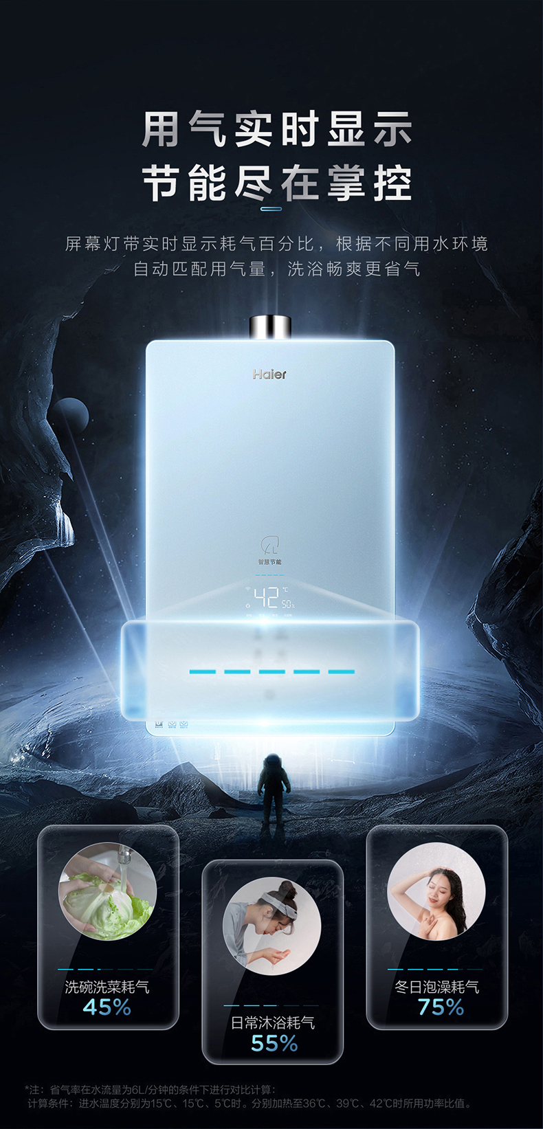 (特)海尔(Haier)幻影蓝系列16L燃气热水器天然气 全面屏玻璃面板 母婴晶彩JSQ30-16DM7(12T)U1