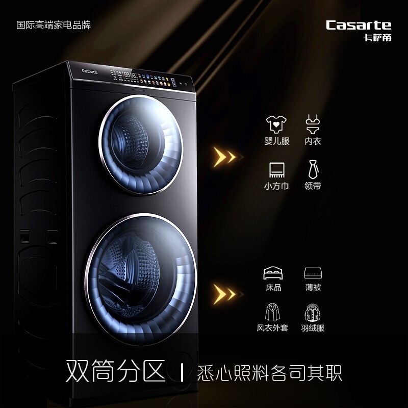 (特)卡萨帝(Casarte)双子滚筒洗衣机全自动家用大容量母婴分区洗护 直驱变频 紫外线除菌 13kg【洗烘一体】C8 HD13P6U1