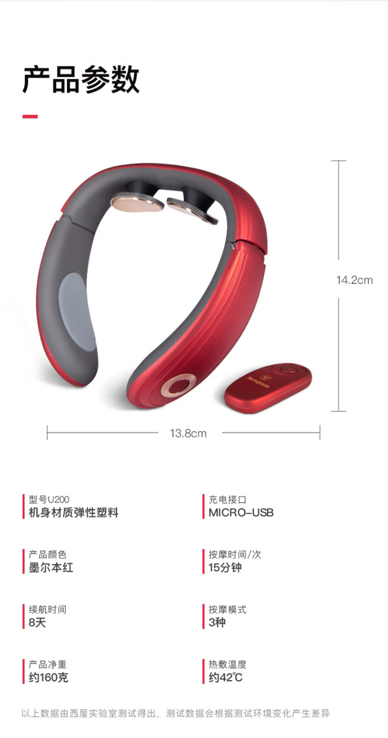西屋(Westinghouse) WCM-U200 颈椎按摩器热敷护颈仪充电便携