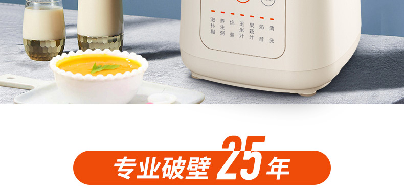 九阳(Joyoung)破壁机家用自动清洗多功能免滤婴儿辅食料理机L18-P631 米白