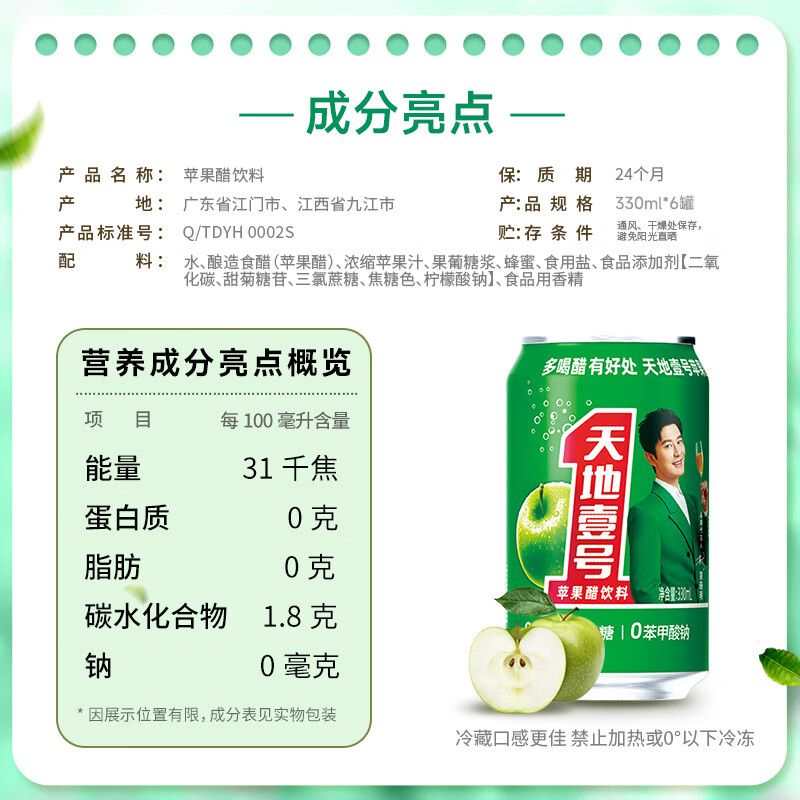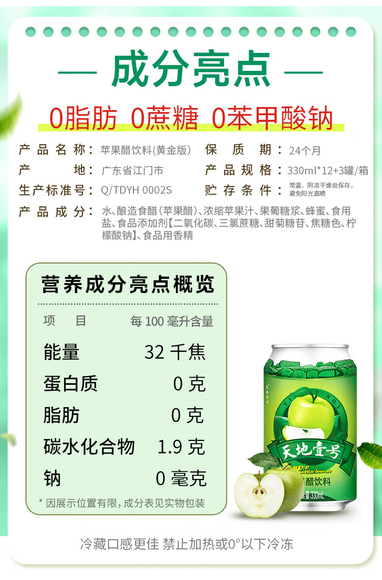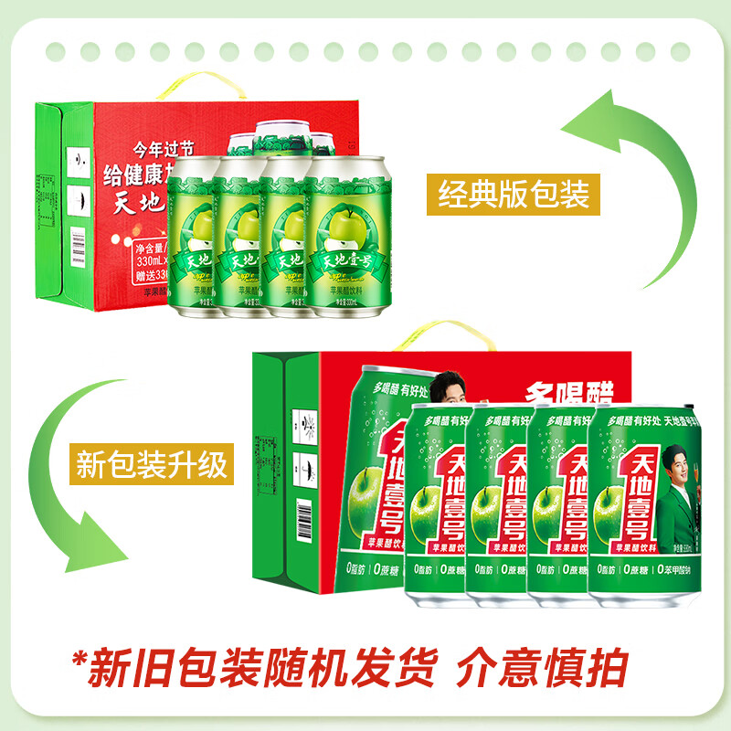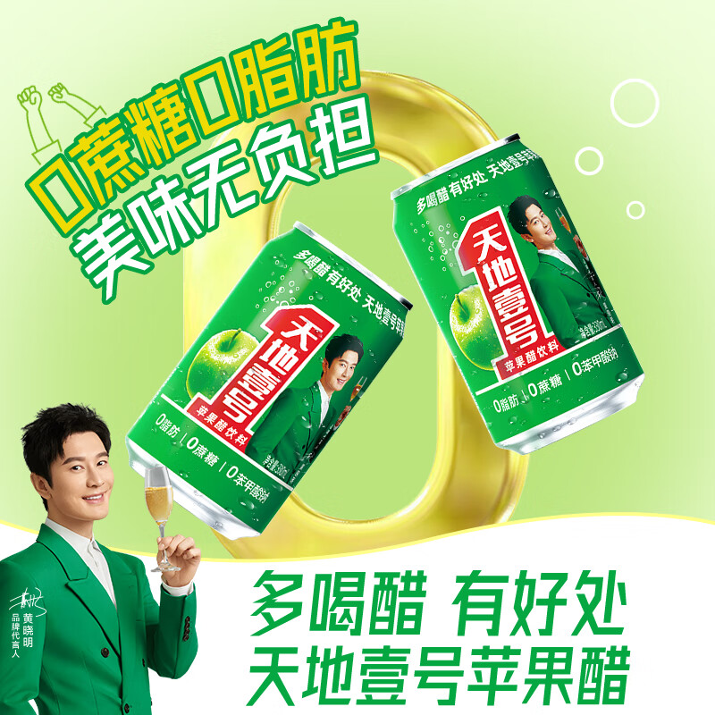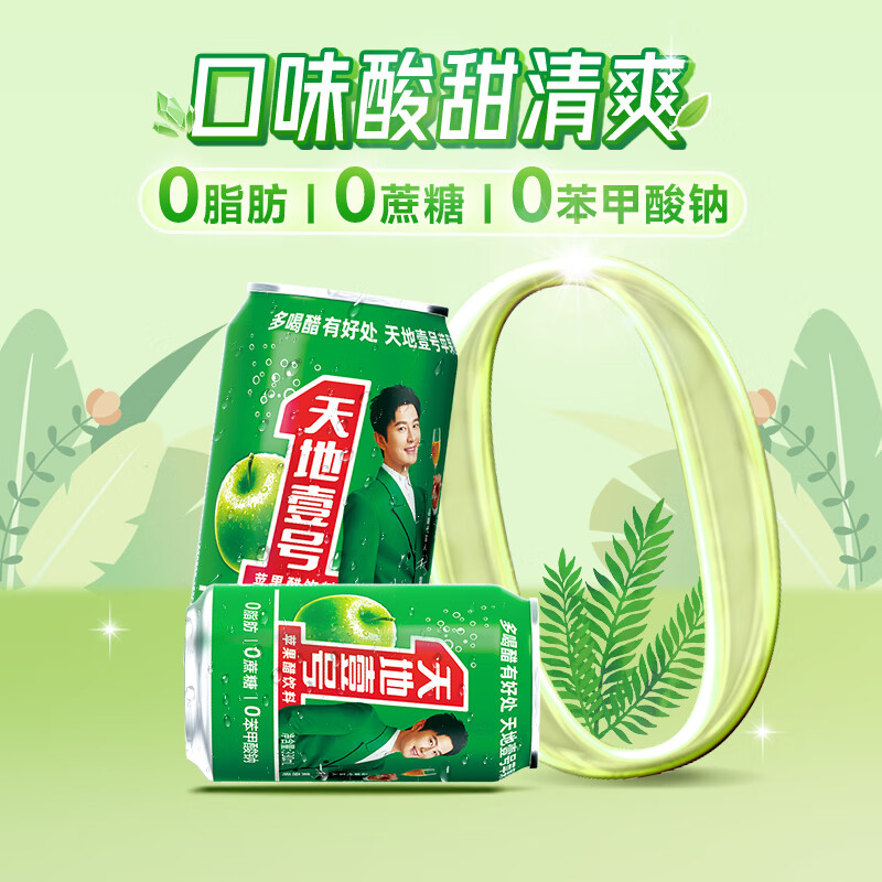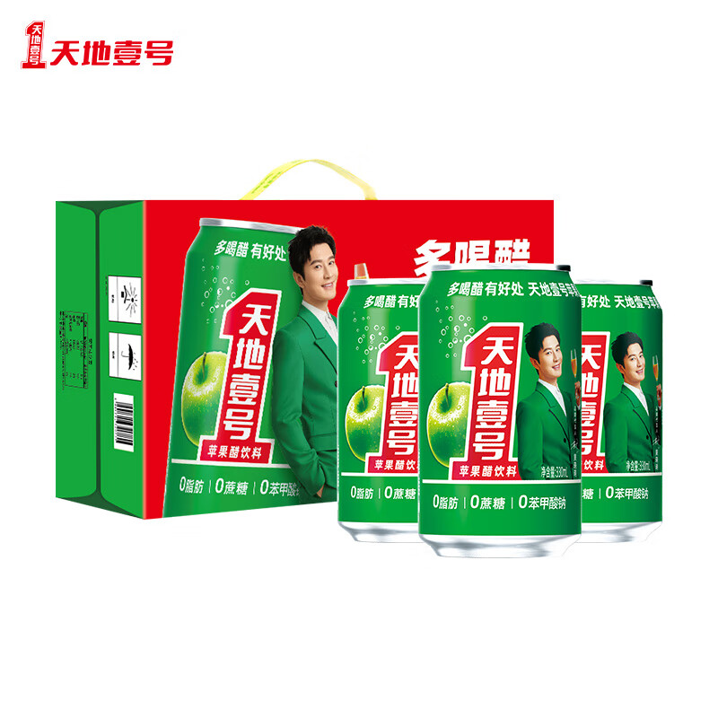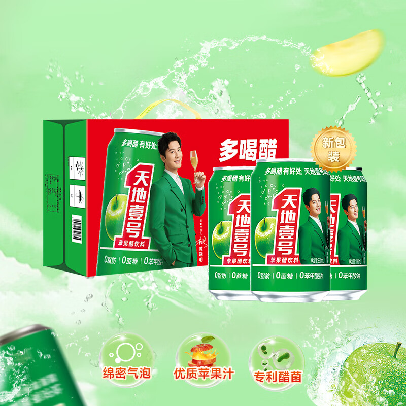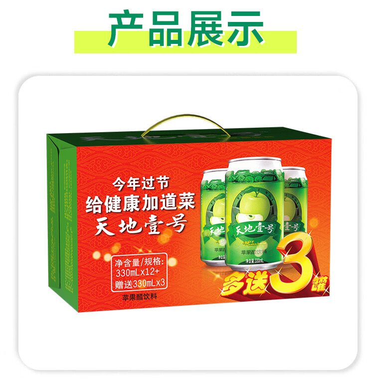(特)天地壹号 苹果醋饮料330ml×12+3罐 0脂肪 0蔗糖 酸爽解腻(新老包装随机)
