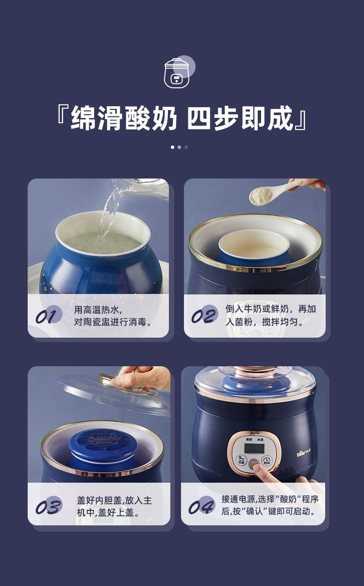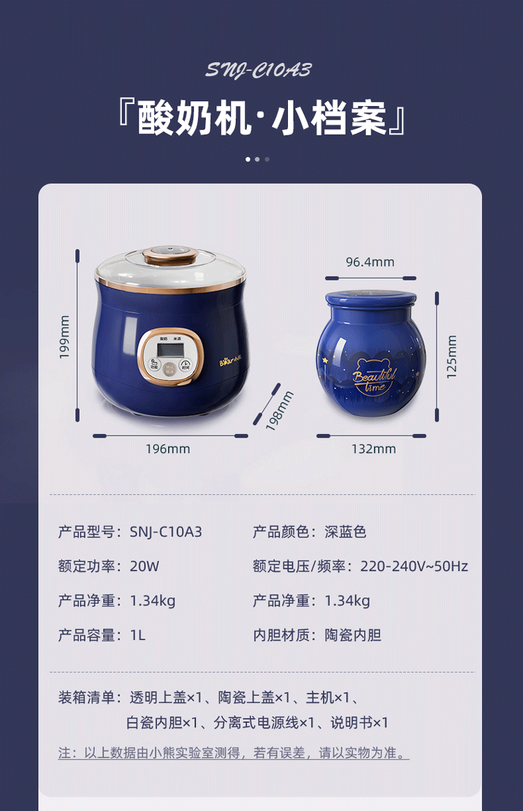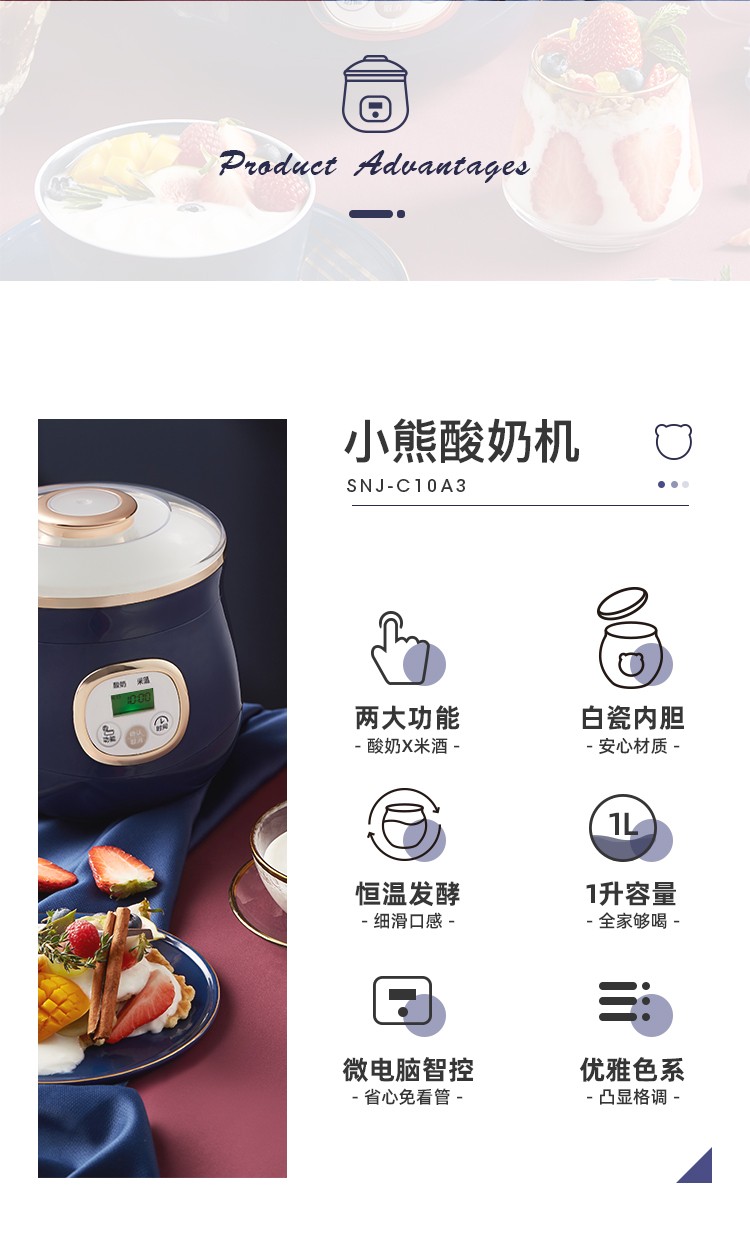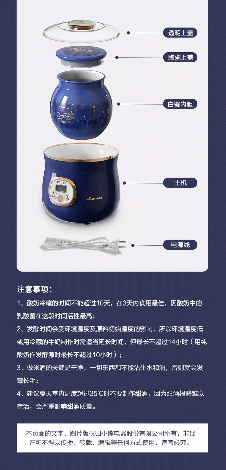 小熊(Bear)酸奶机米酒机家用智能全自动1L陶瓷奶酪恒温发酵机 SNJ-C10A3 1L陶瓷-智能发酵