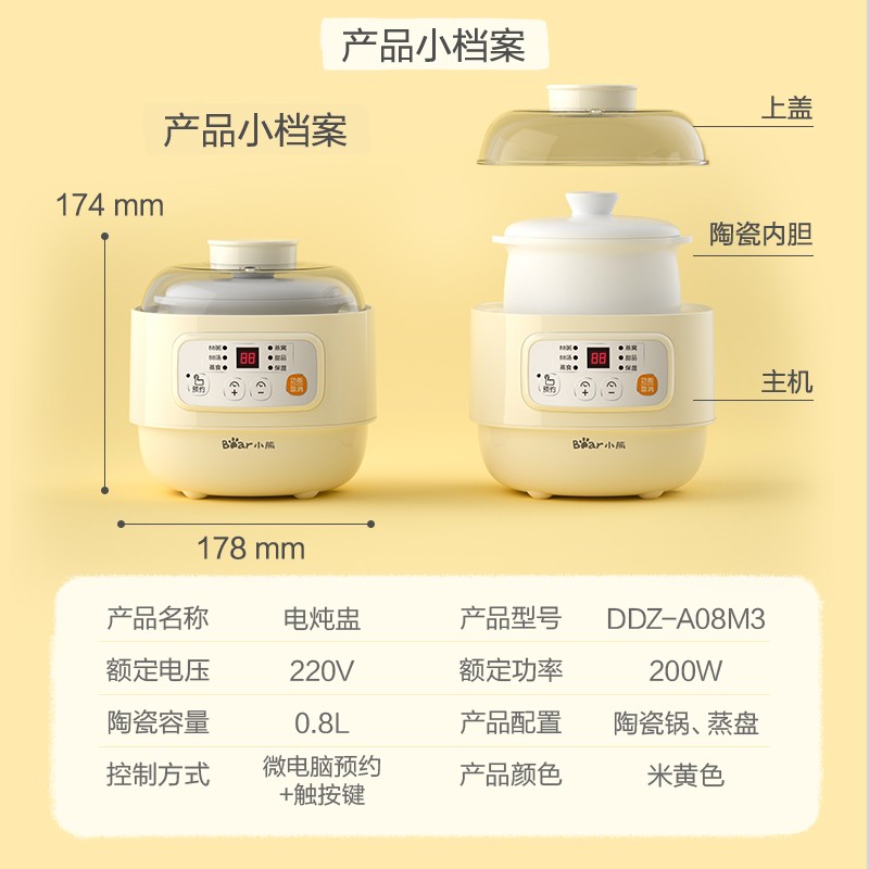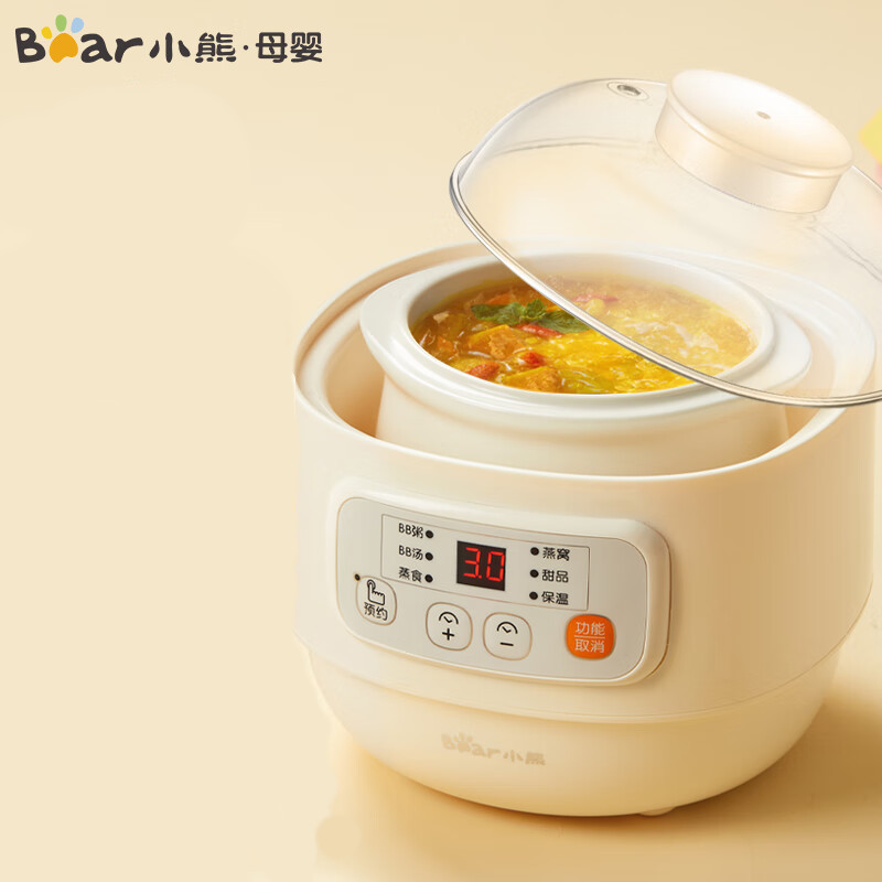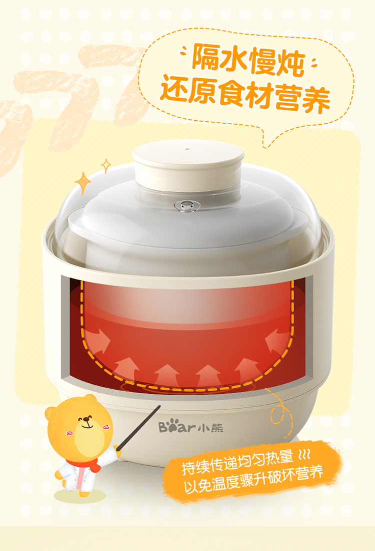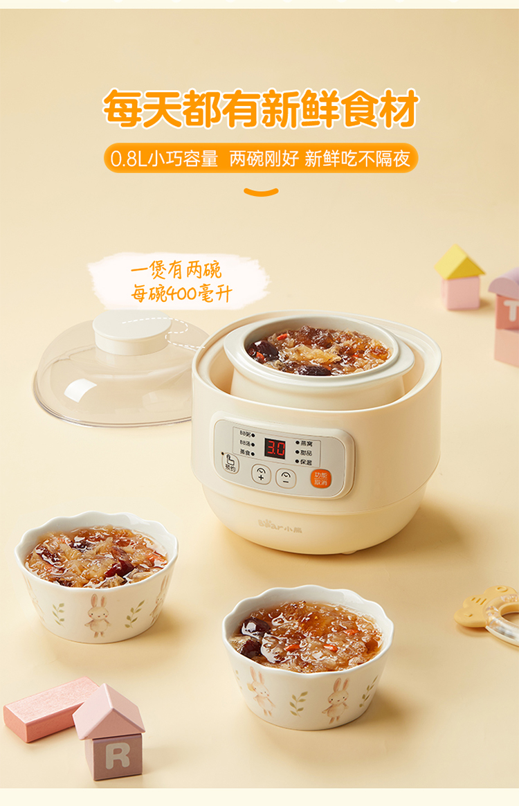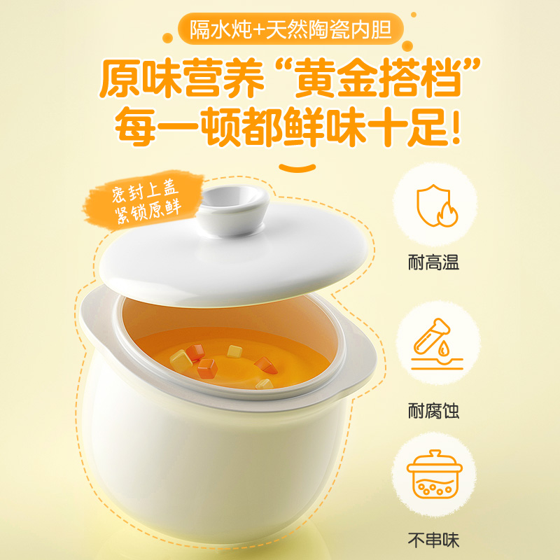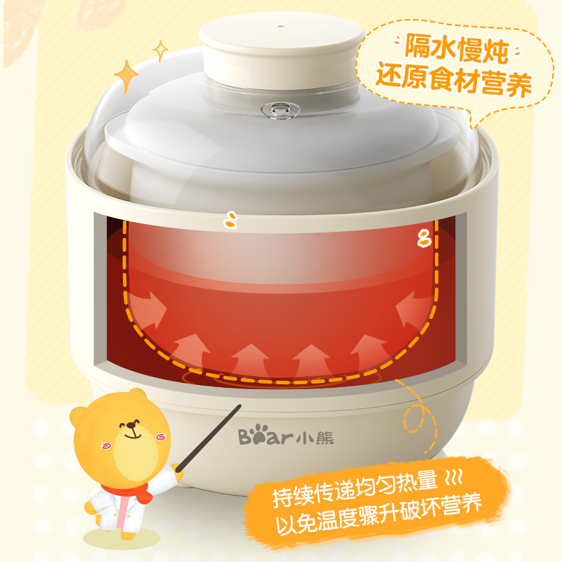 (特)小熊(Bear)婴儿辅食机 电炖锅 煮蛋器 隔水电炖盅 陶瓷煮粥蒸煮辅食锅 迷你宝宝bb煲0.8L DDZ-A08M3