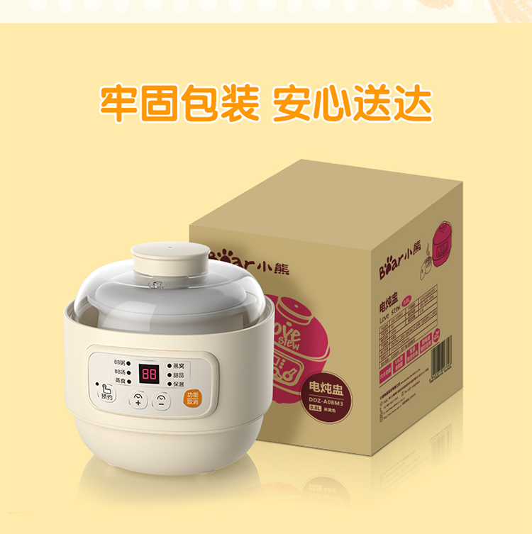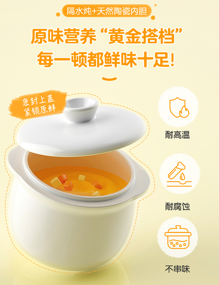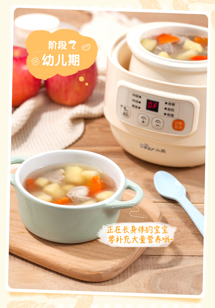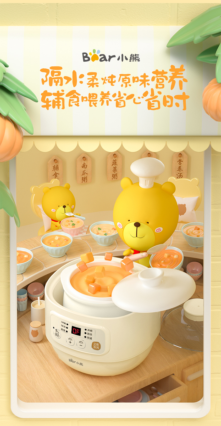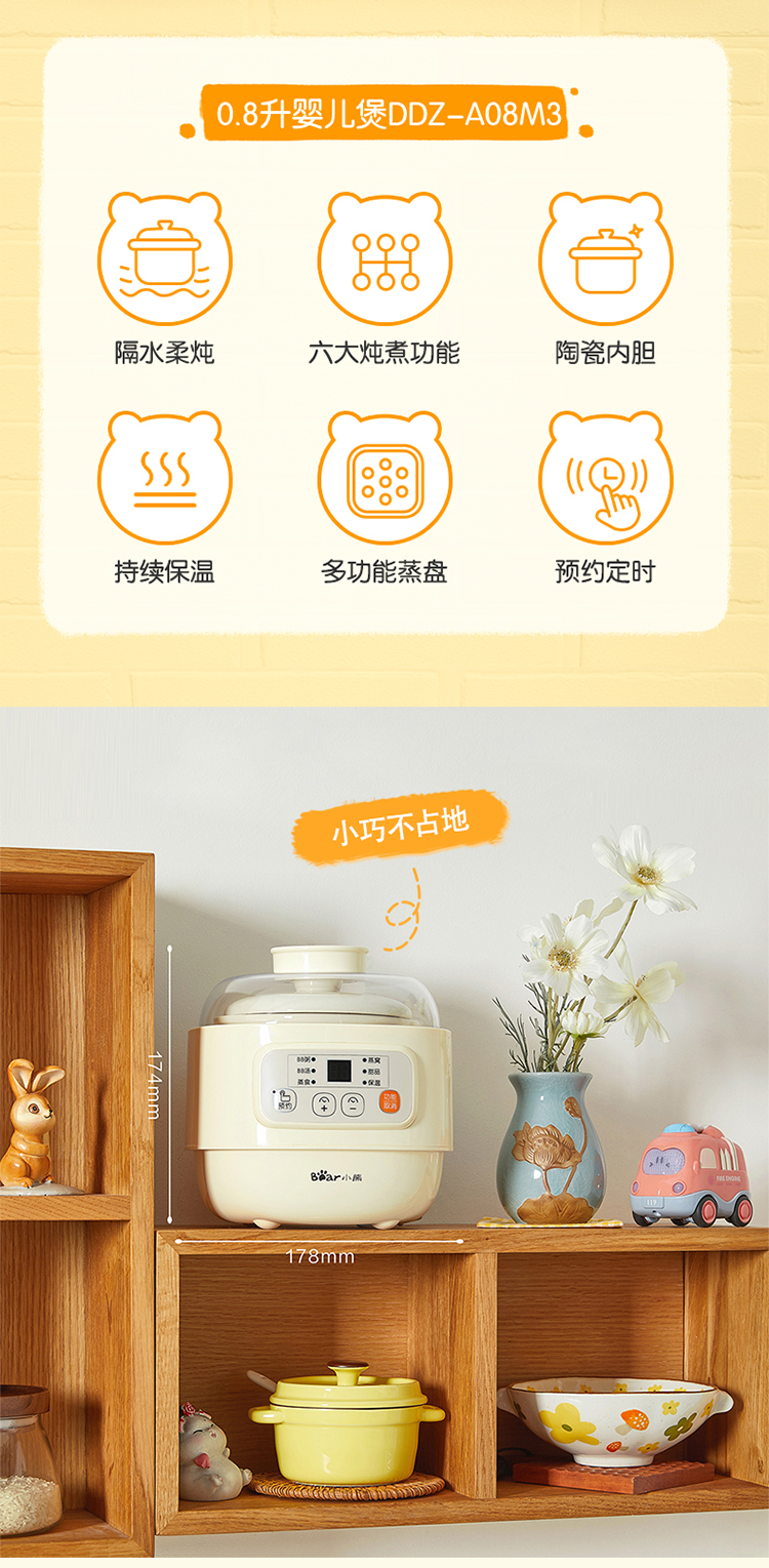 (特)小熊(Bear)婴儿辅食机 电炖锅 煮蛋器 隔水电炖盅 陶瓷煮粥蒸煮辅食锅 迷你宝宝bb煲0.8L DDZ-A08M3