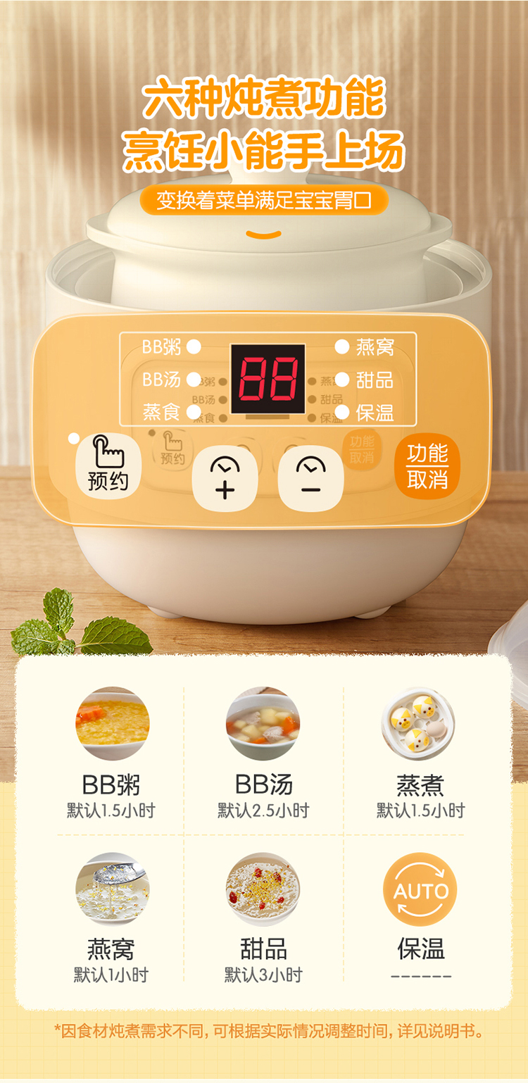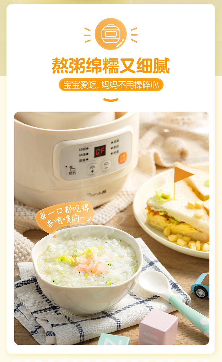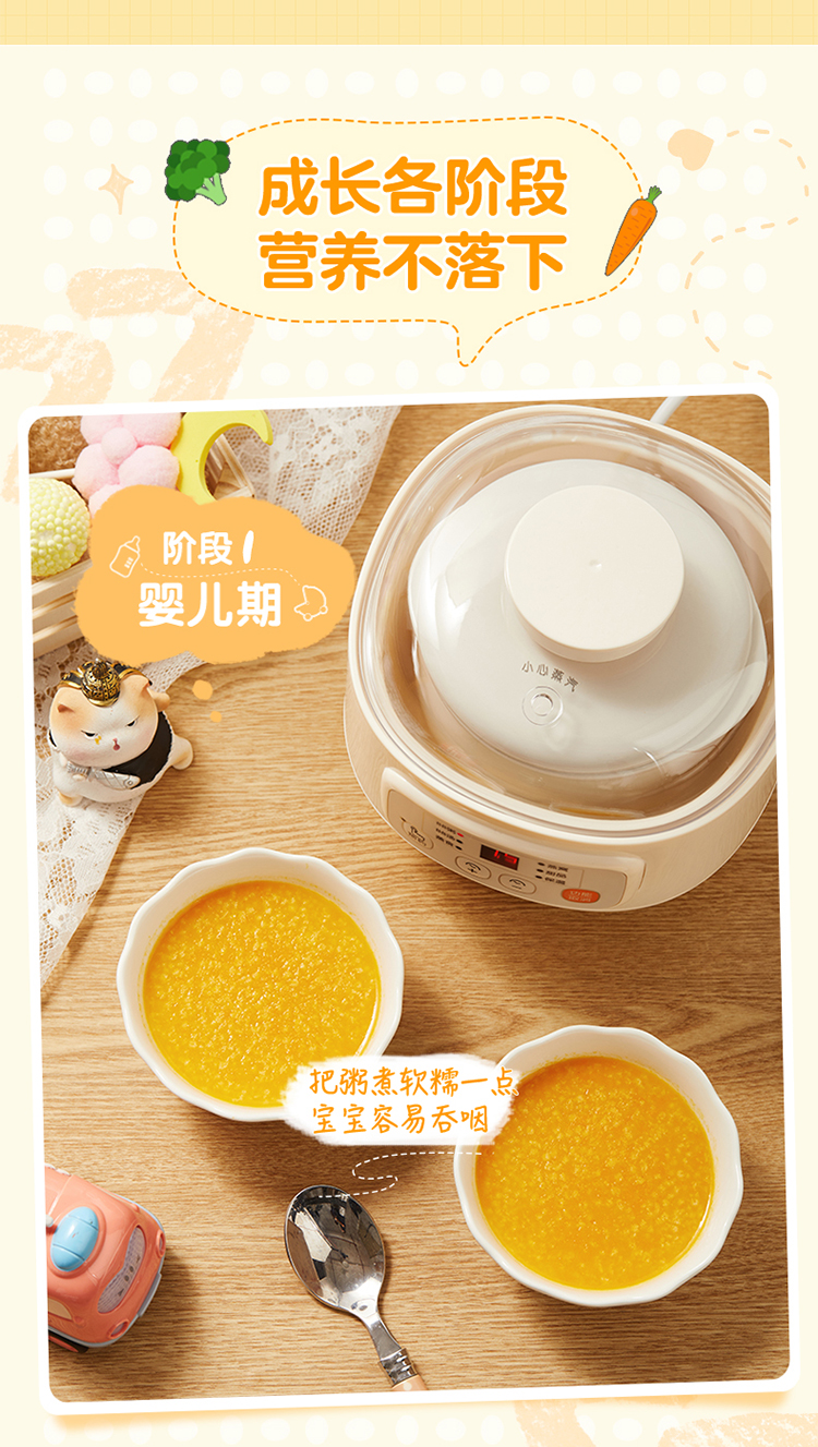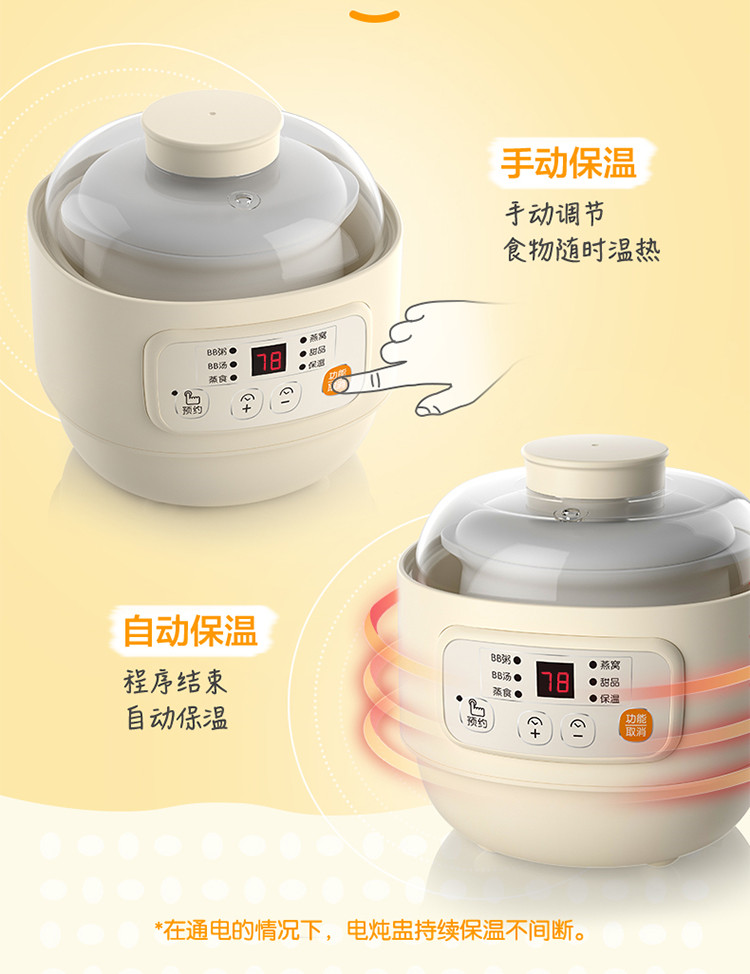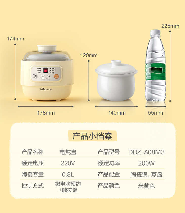 (特)小熊(Bear)婴儿辅食机 电炖锅 煮蛋器 隔水电炖盅 陶瓷煮粥蒸煮辅食锅 迷你宝宝bb煲0.8L DDZ-A08M3