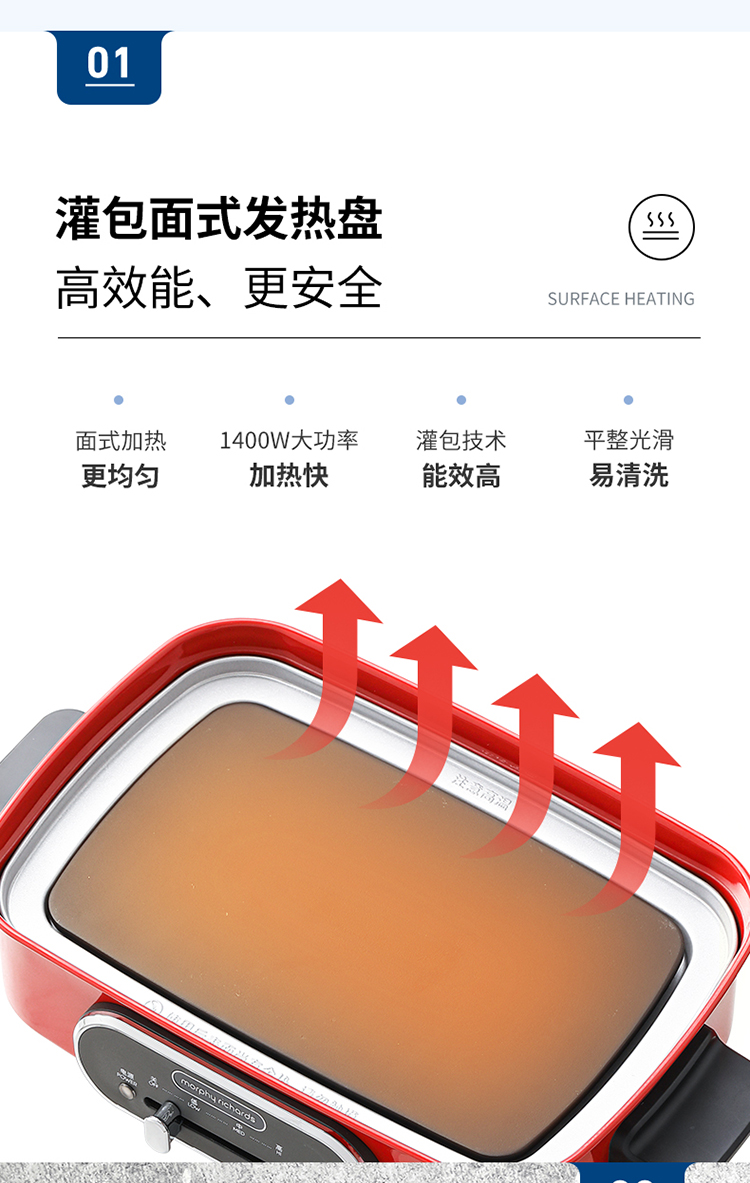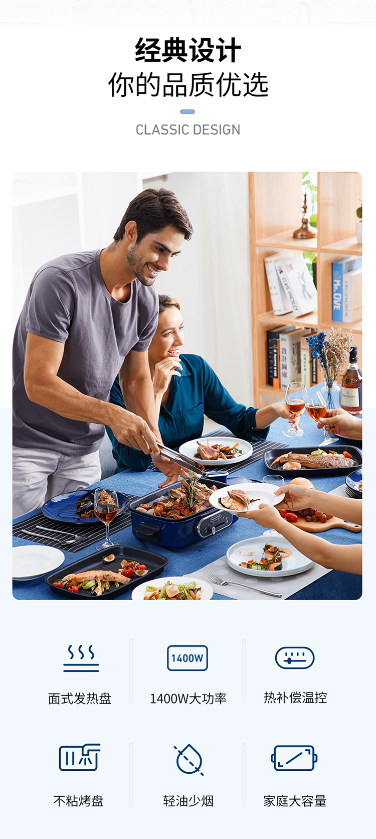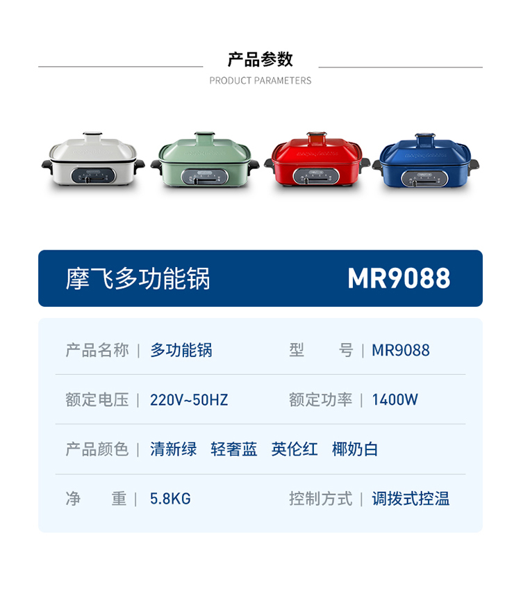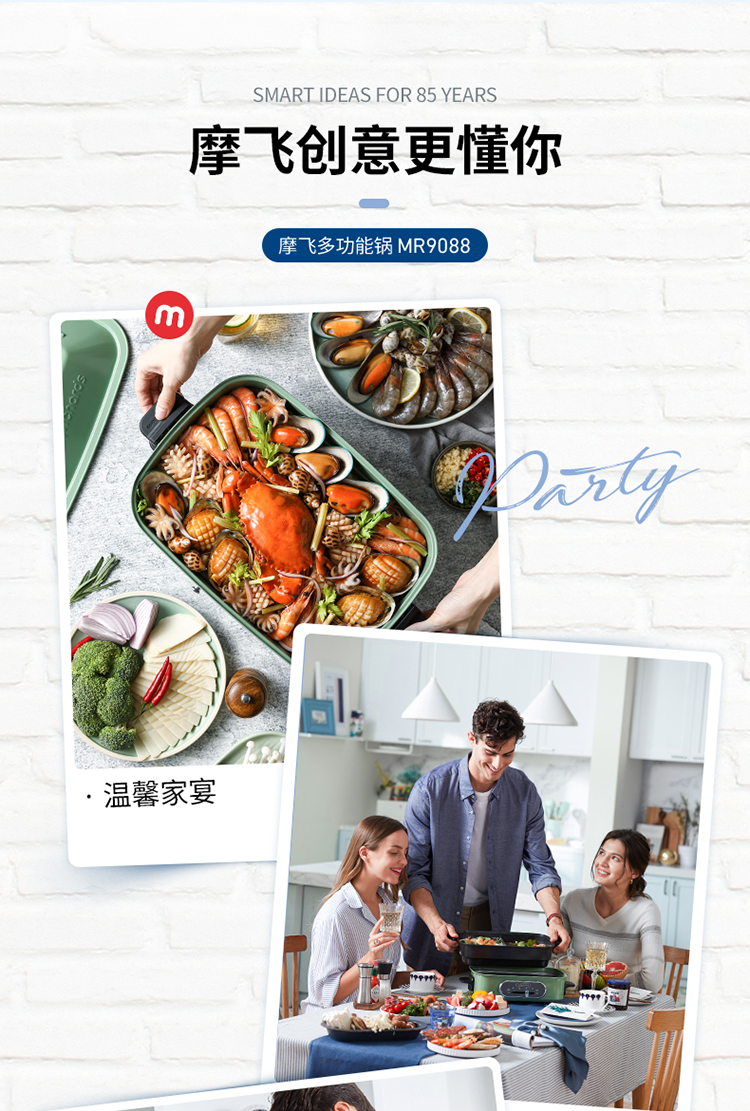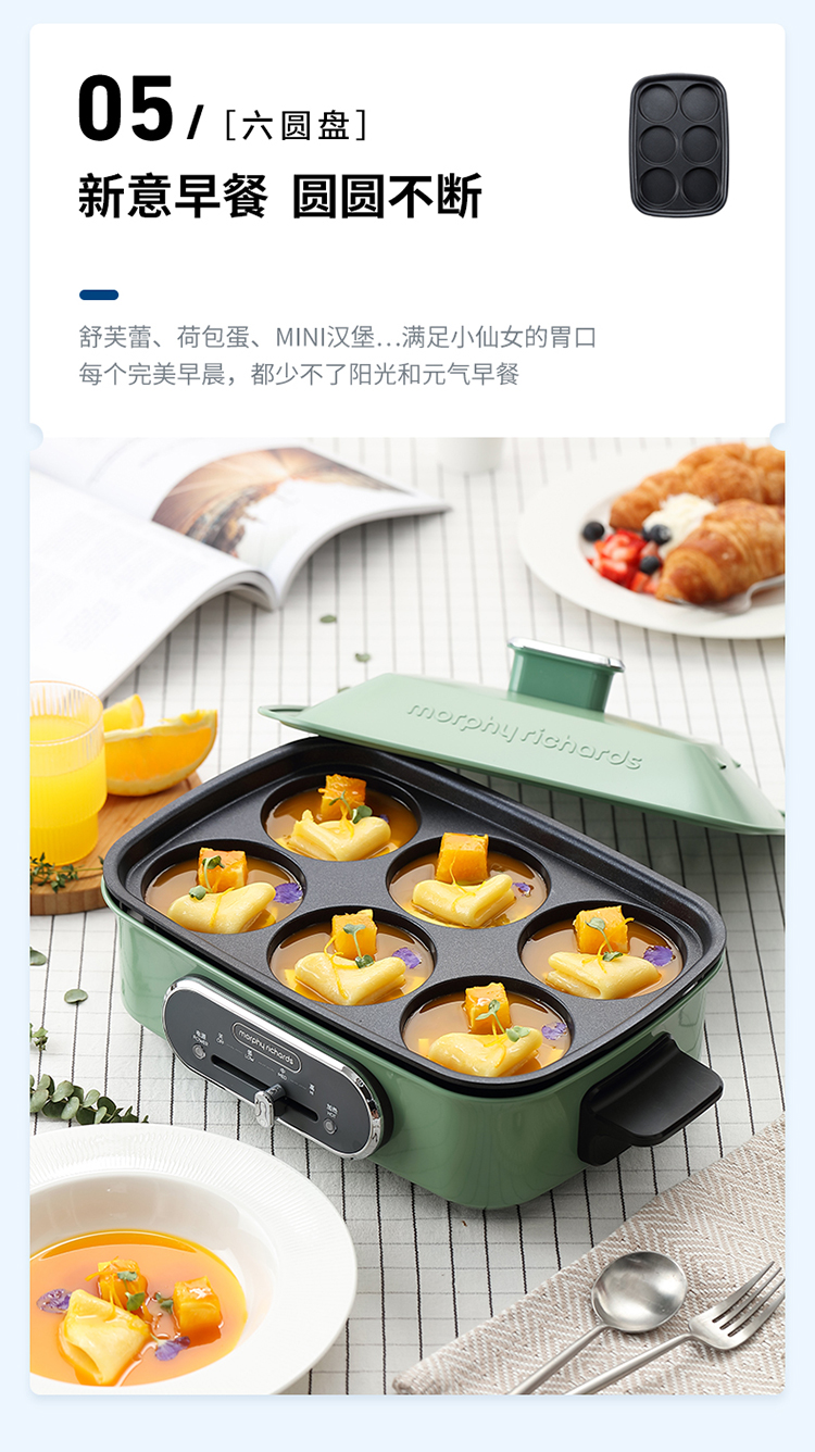摩飞(morphyrichards)优选多功能方锅 多用途料理锅电烧烤锅煎锅电火锅家用电蒸锅 MR9088