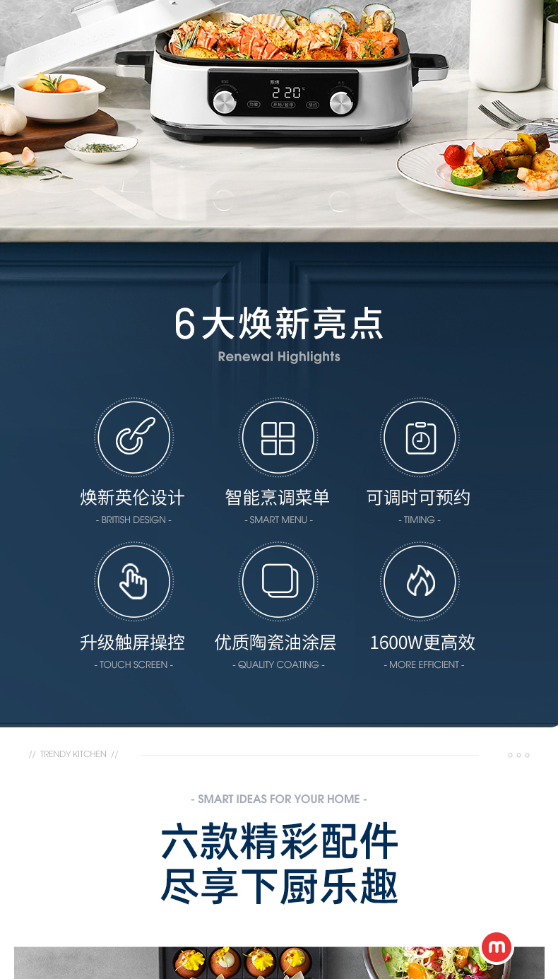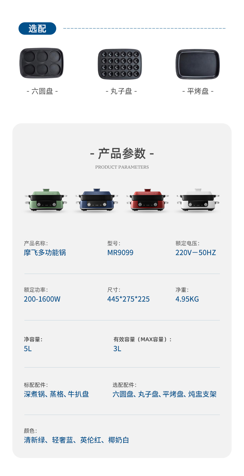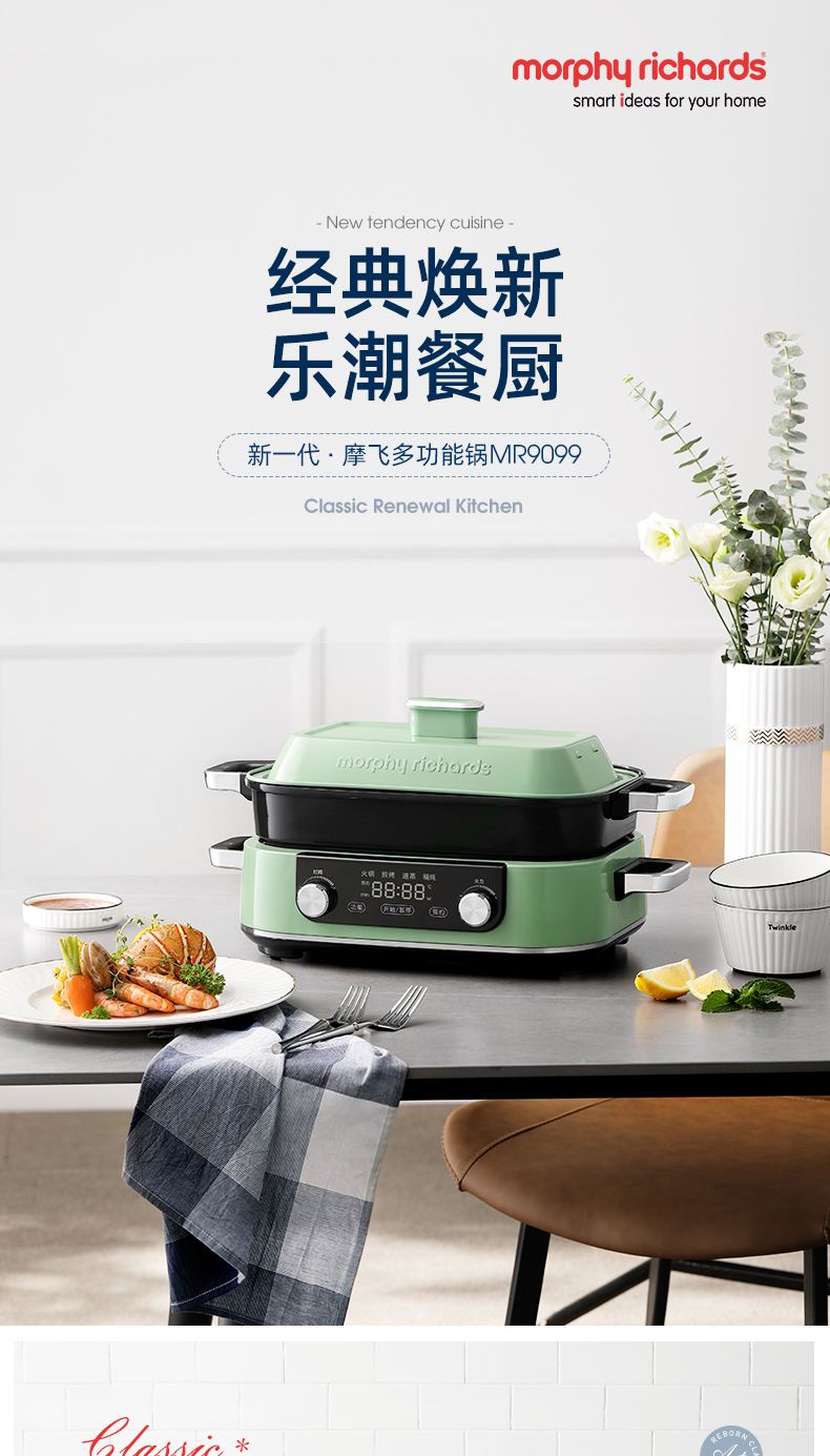 摩飞(Morphyrichards)多功能锅 家用多用途锅 电火锅电煮锅电热锅电蒸锅 5升可预约 MR9099