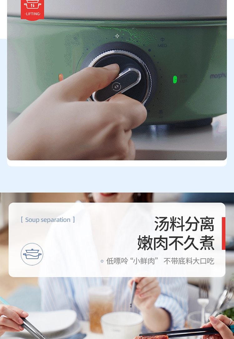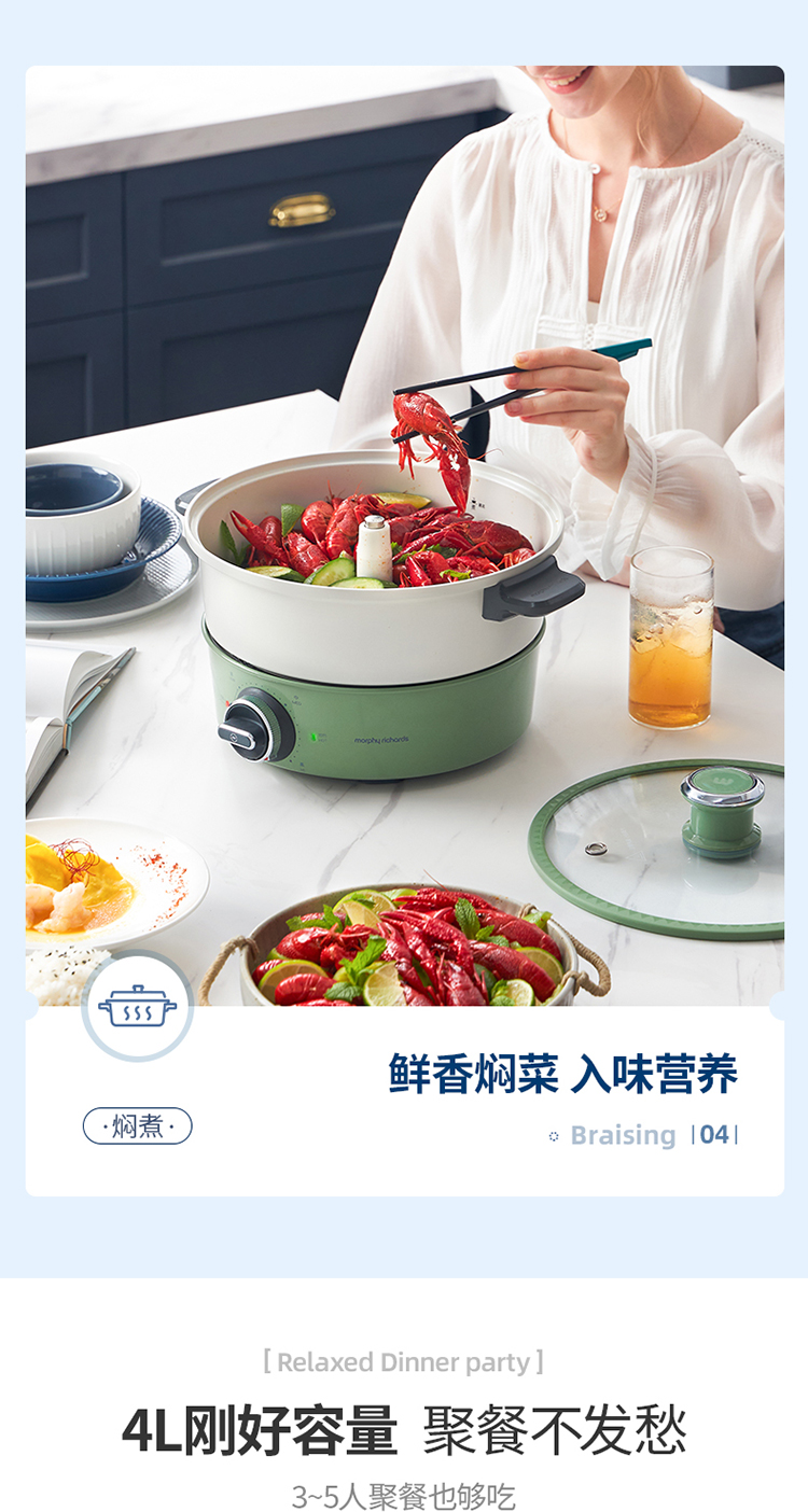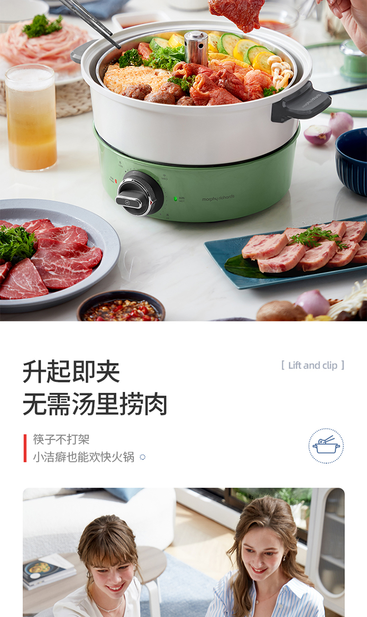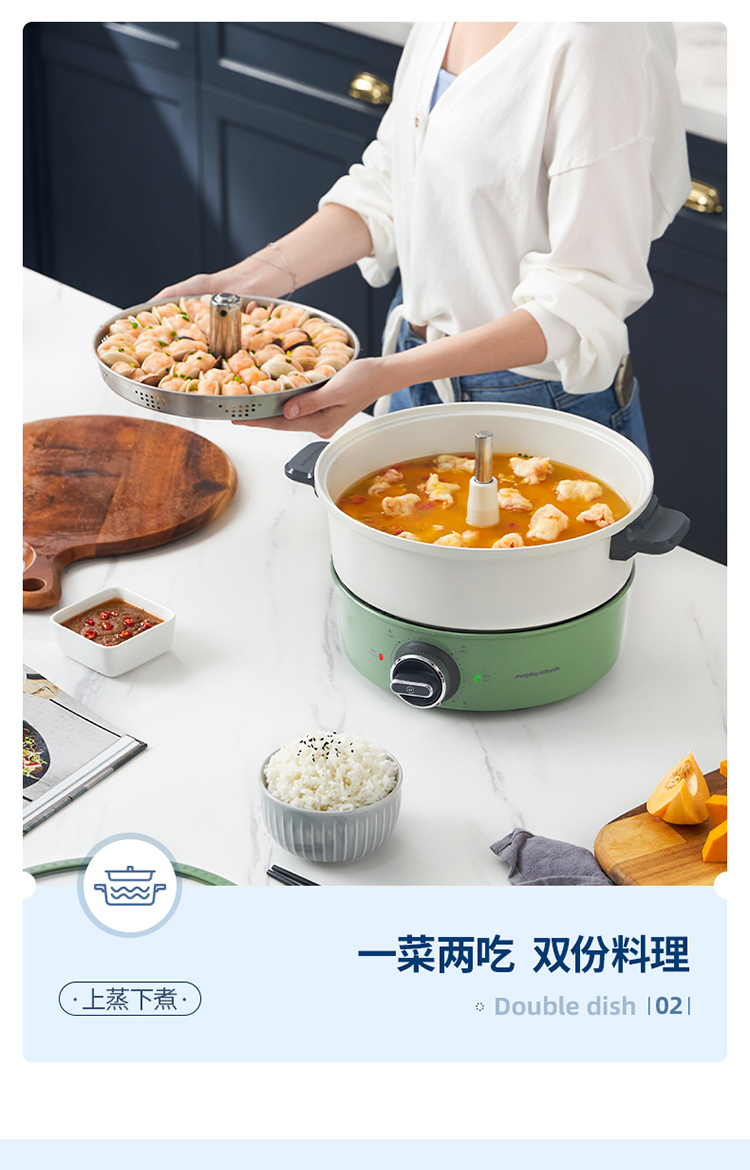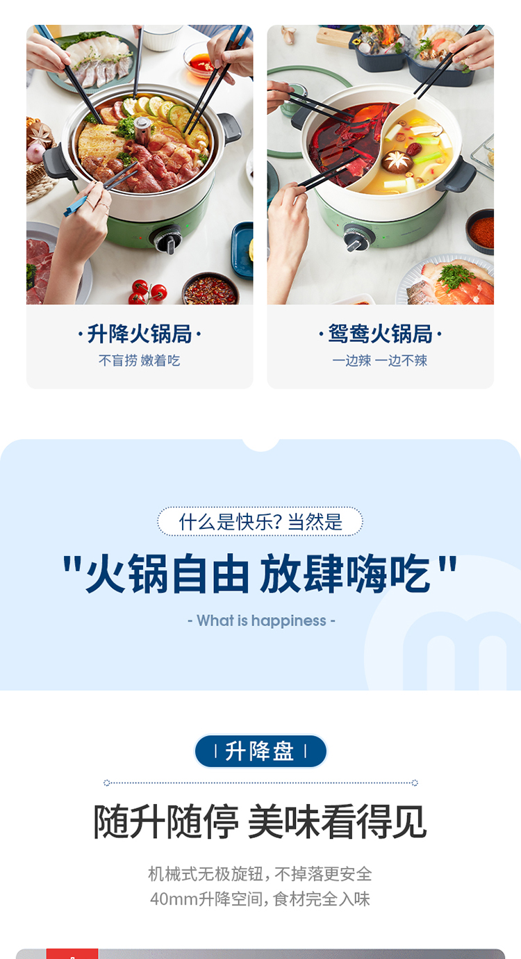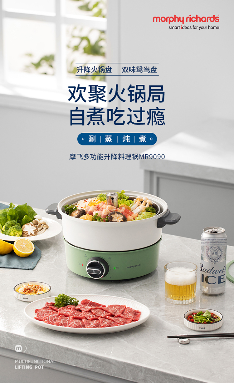 摩飞(Morphyrichards)多功能锅 家用电火锅料理锅鸳鸯锅电煮锅热锅机械升降 4升容量 MR9090