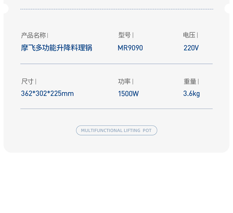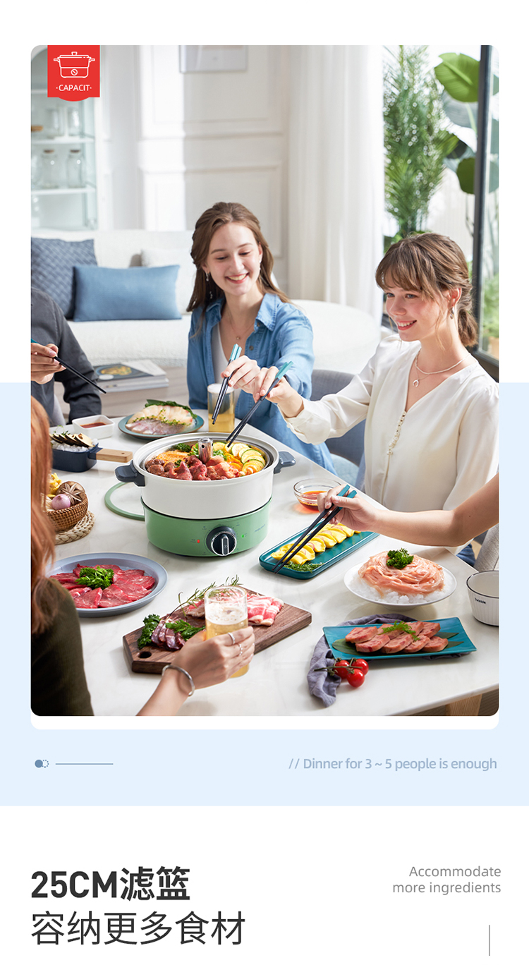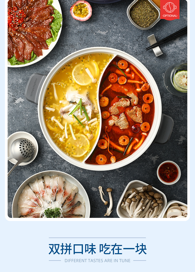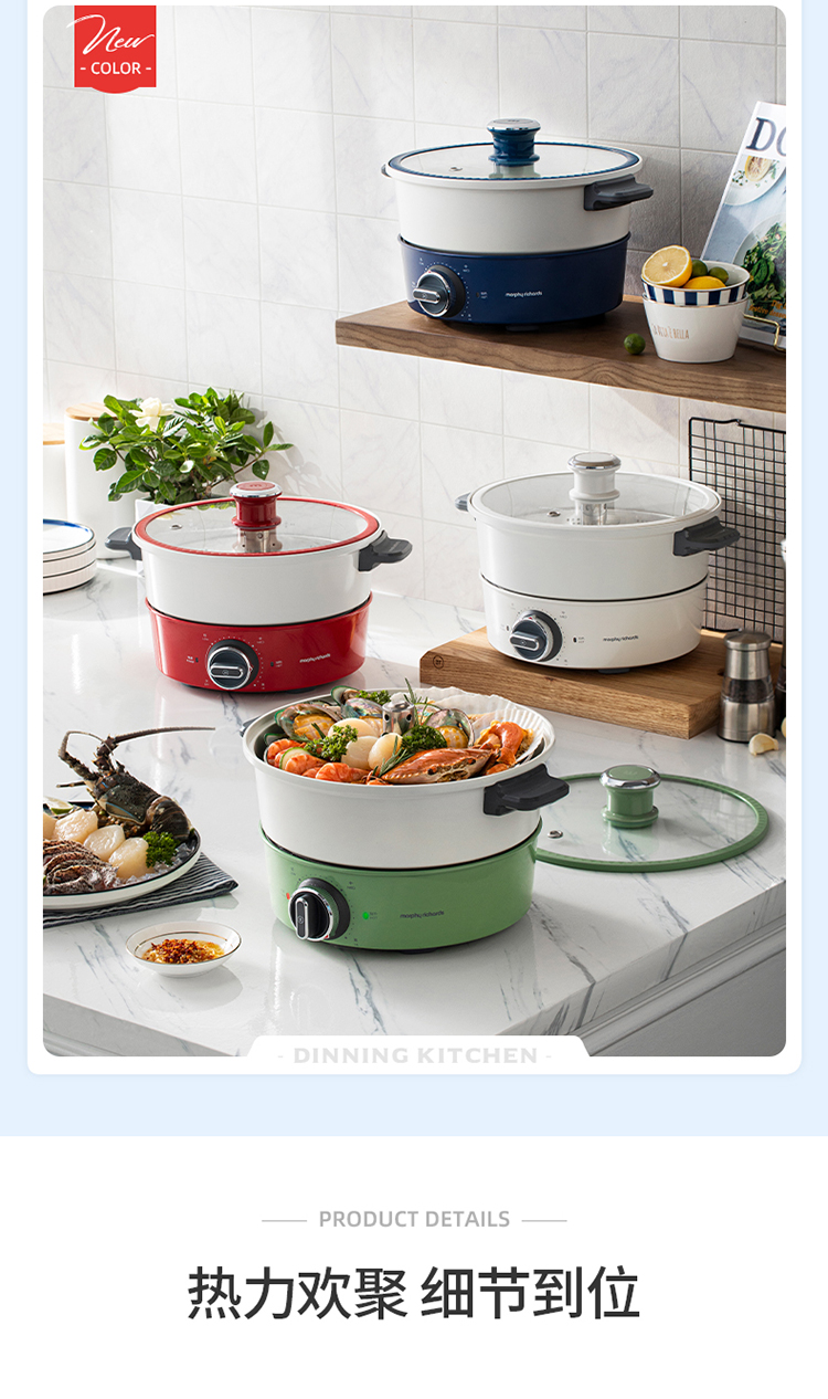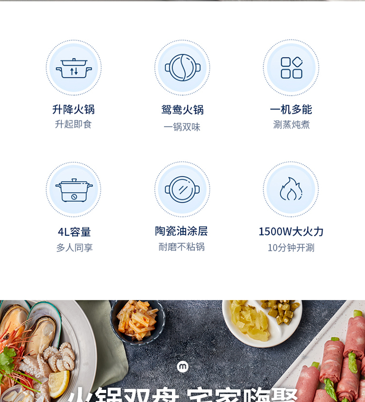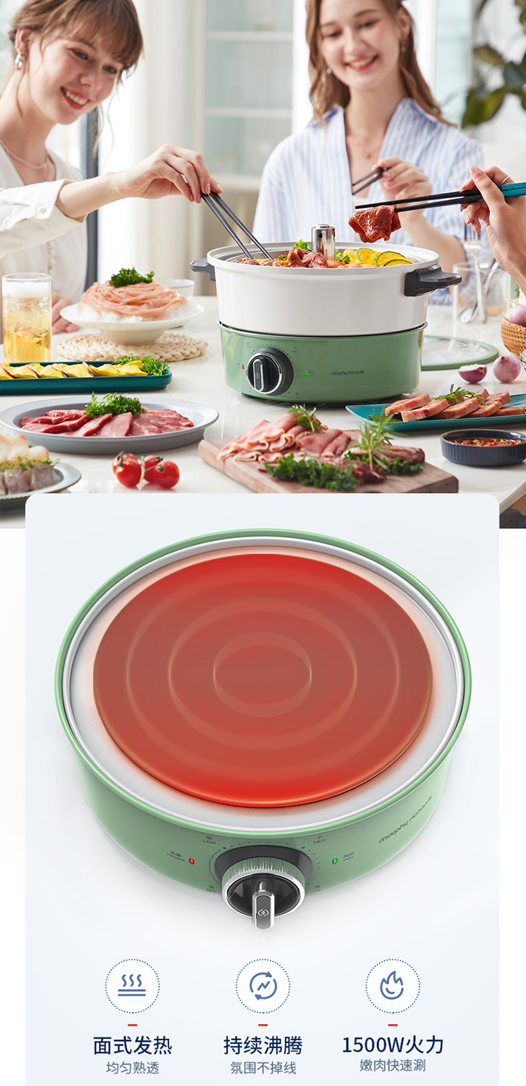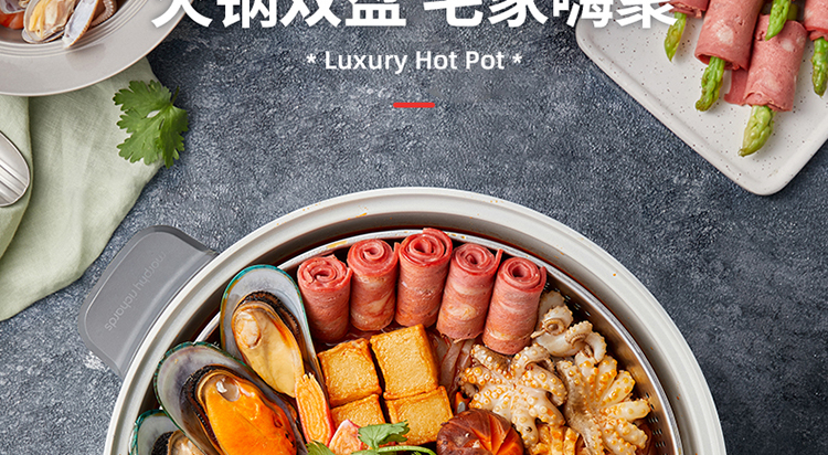 摩飞(Morphyrichards)多功能锅 家用电火锅料理锅鸳鸯锅电煮锅热锅机械升降 4升容量 MR9090