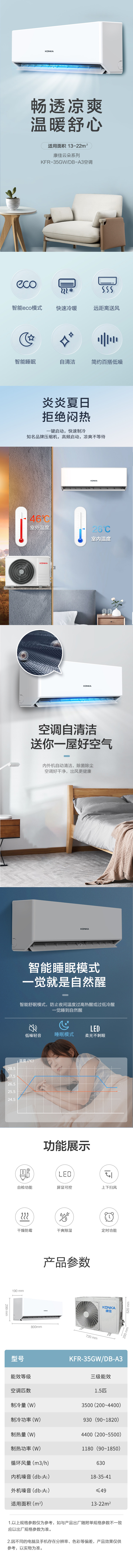 康佳1.5匹 新能效 快速冷暖壁挂式空调挂机KFR-35GW/DB-A3