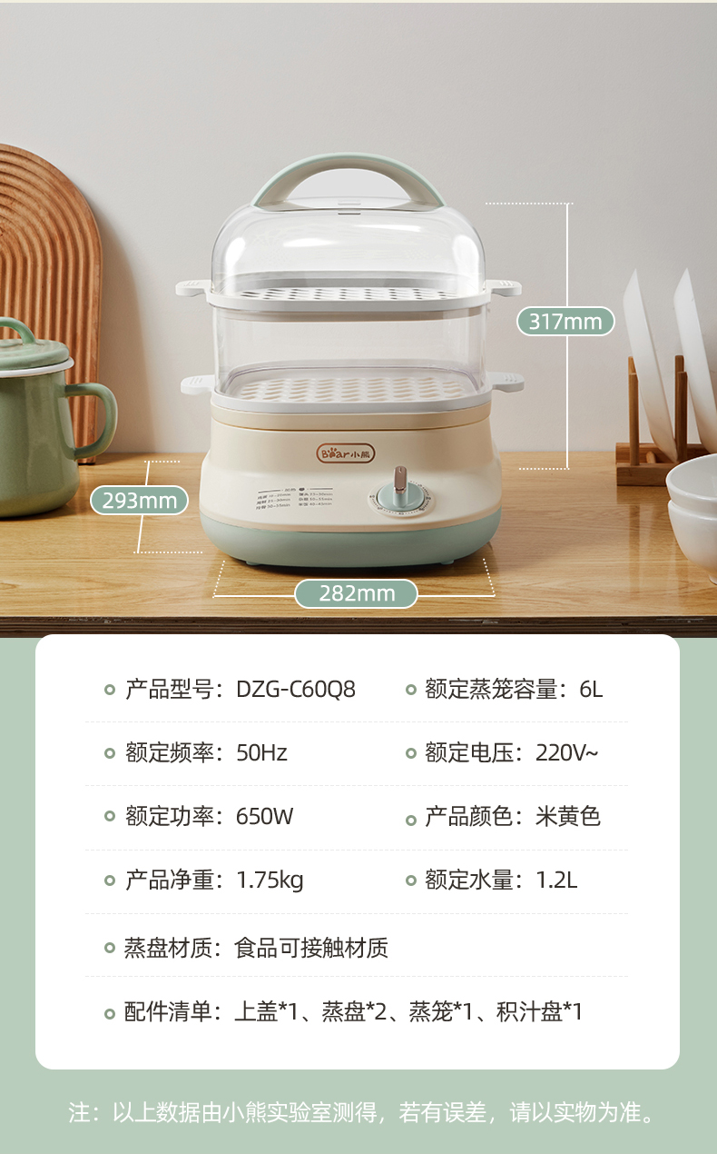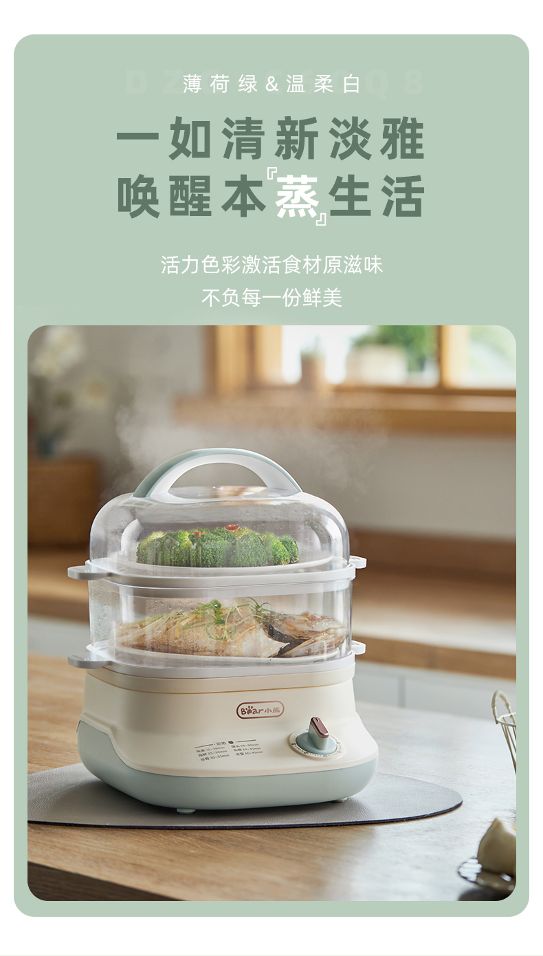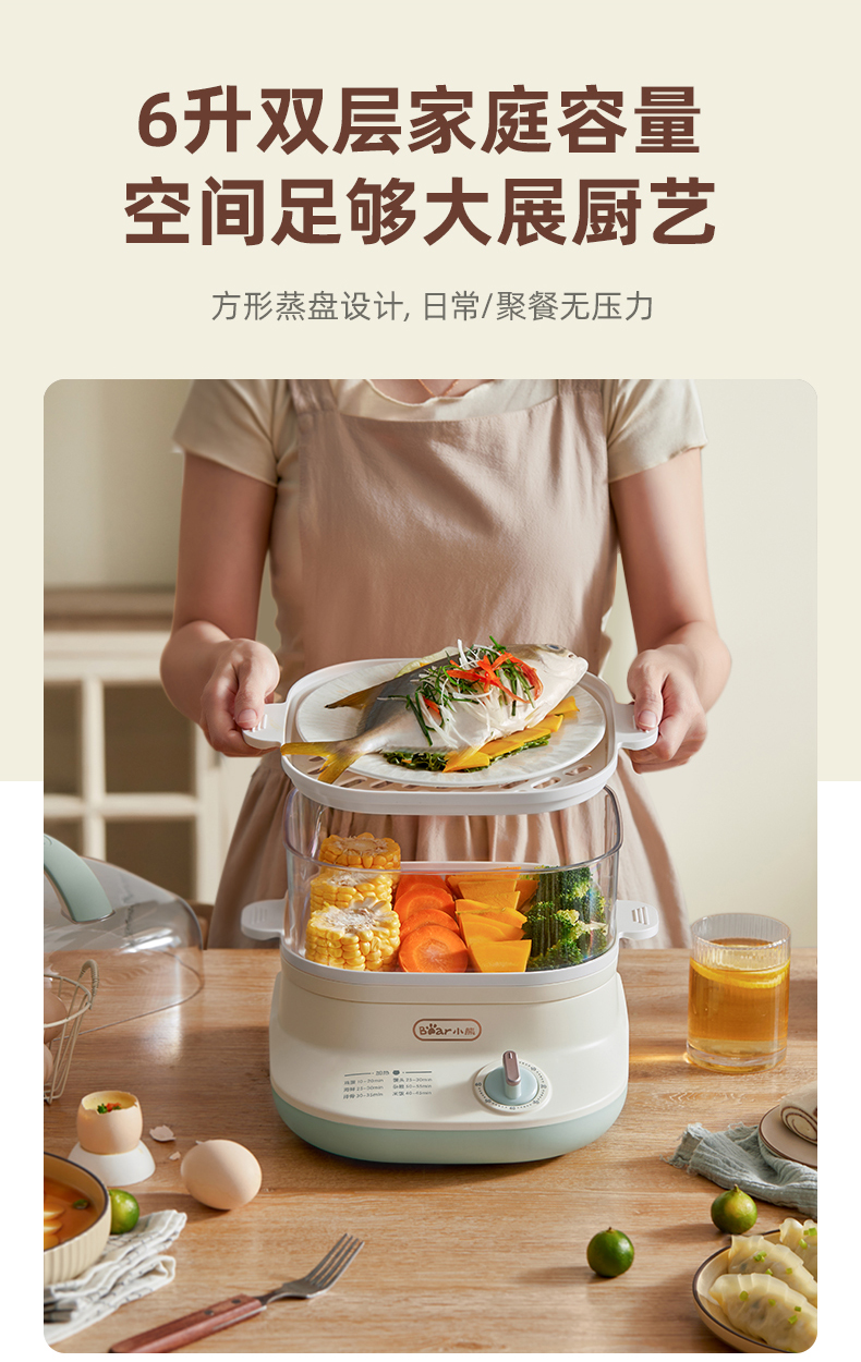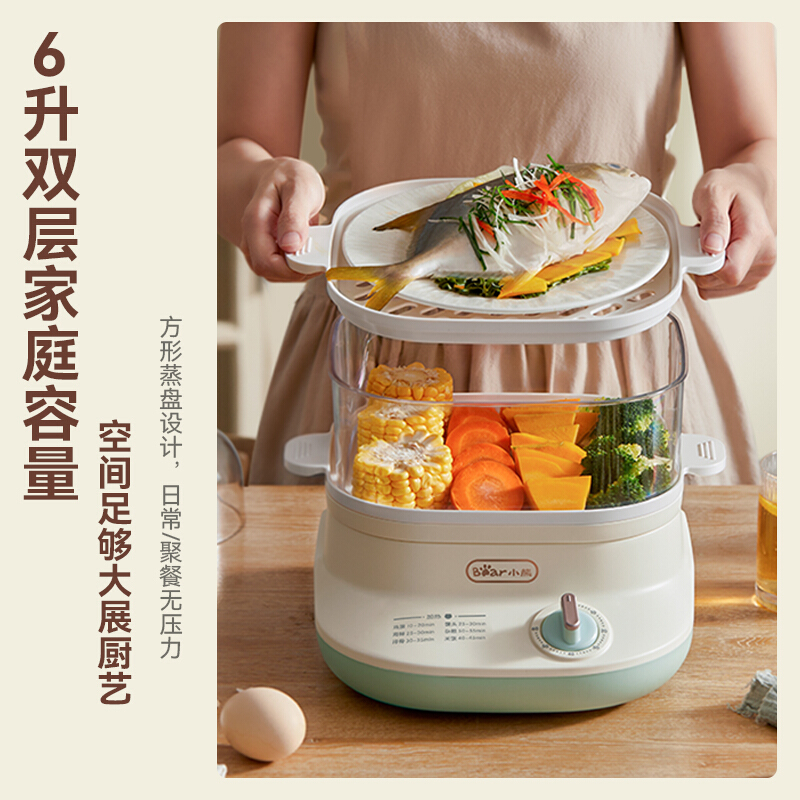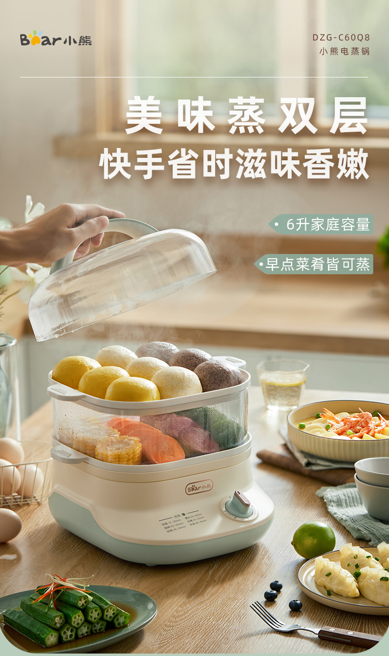 (特)小熊(Bear)电蒸锅 蒸蛋器 蒸锅家用 电蒸笼迷你多功能早餐包子分体式电热煮锅可定时带积汁盘 DZG-C60Q8