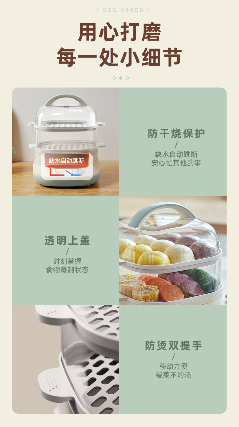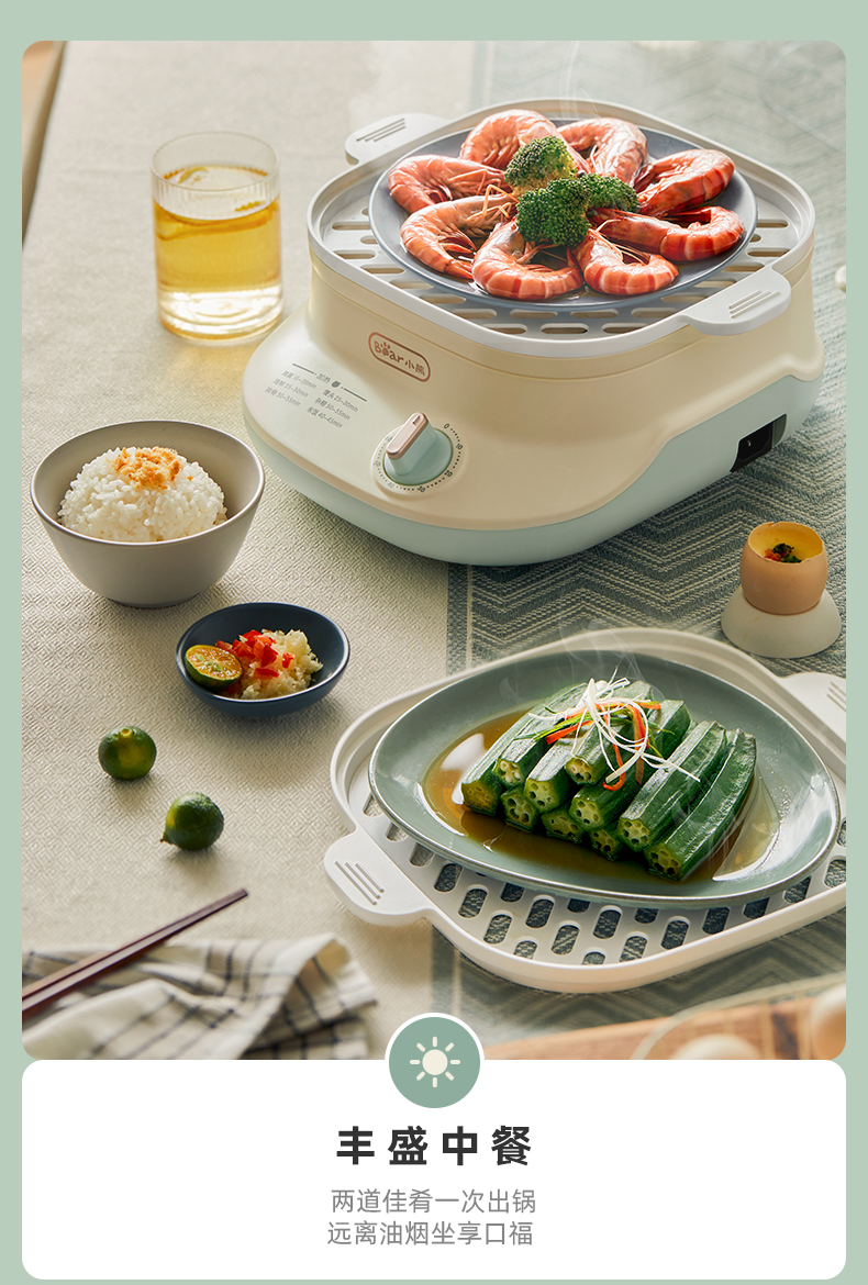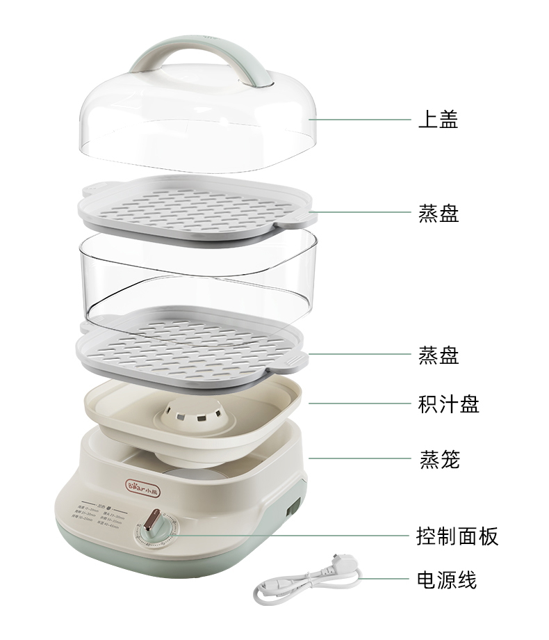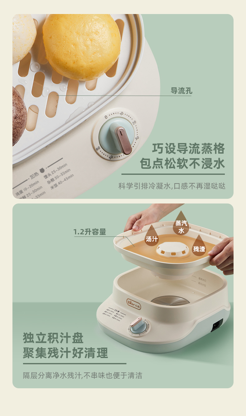 (特)小熊(Bear)电蒸锅 蒸蛋器 蒸锅家用 电蒸笼迷你多功能早餐包子分体式电热煮锅可定时带积汁盘 DZG-C60Q8