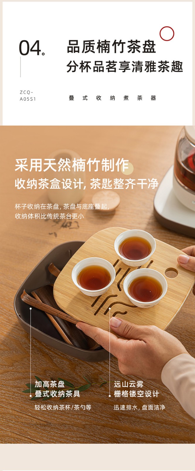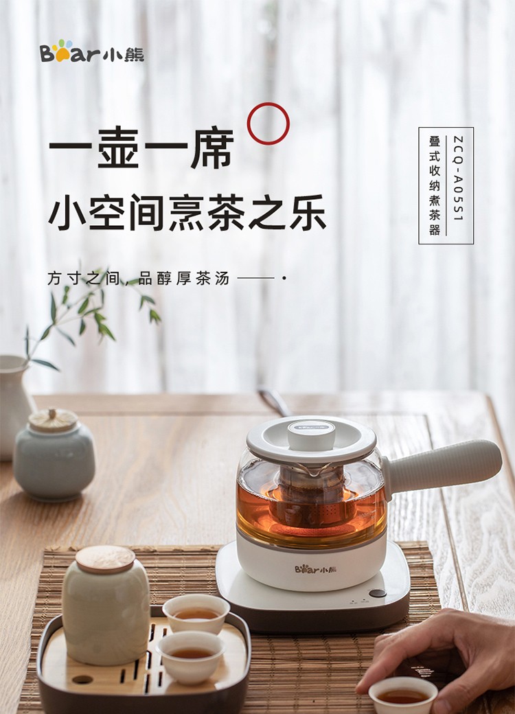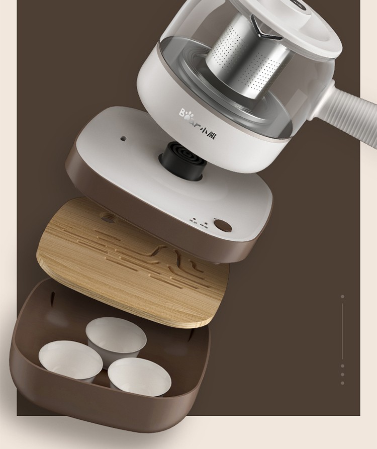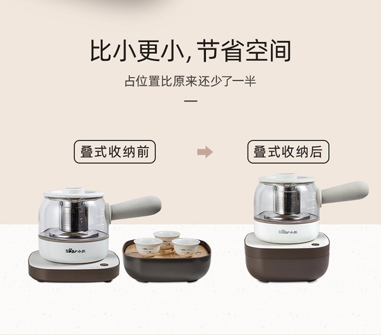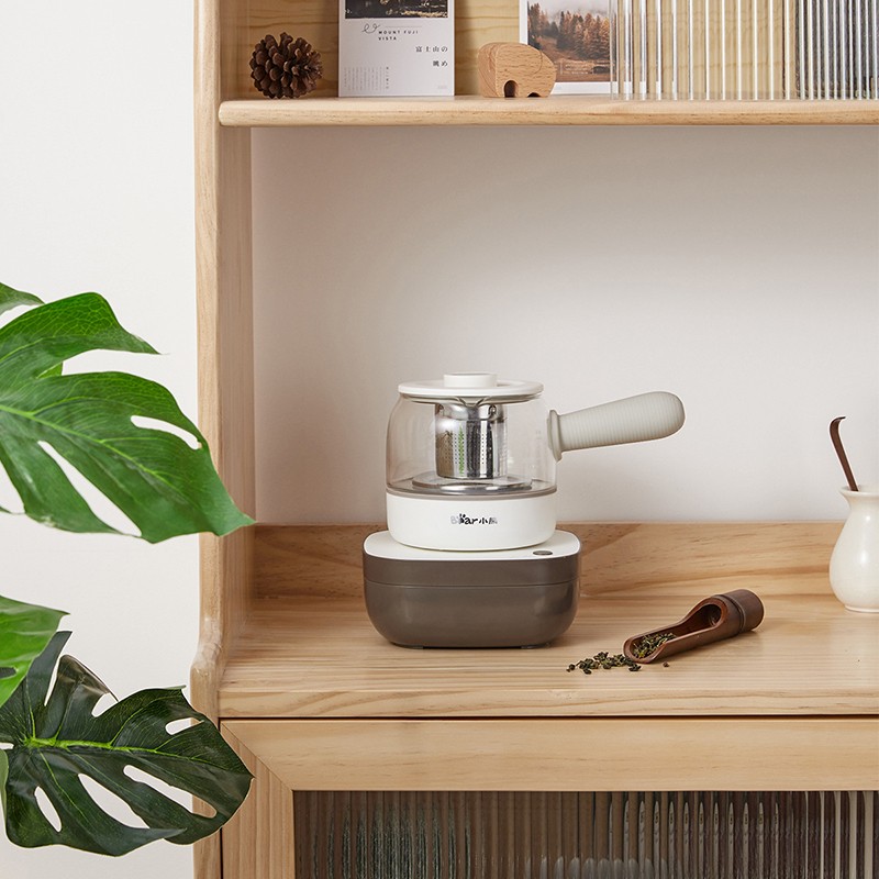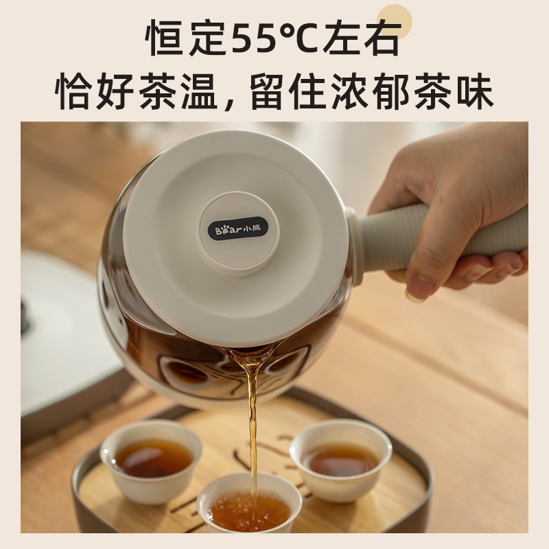 (特)小熊(Bear)煮茶器煮茶壶0.5L蒸汽喷淋式养生壶电水壶热水壶304不锈钢烧水壶花茶壶带茶杯+茶盘 ZCQ-A05S1